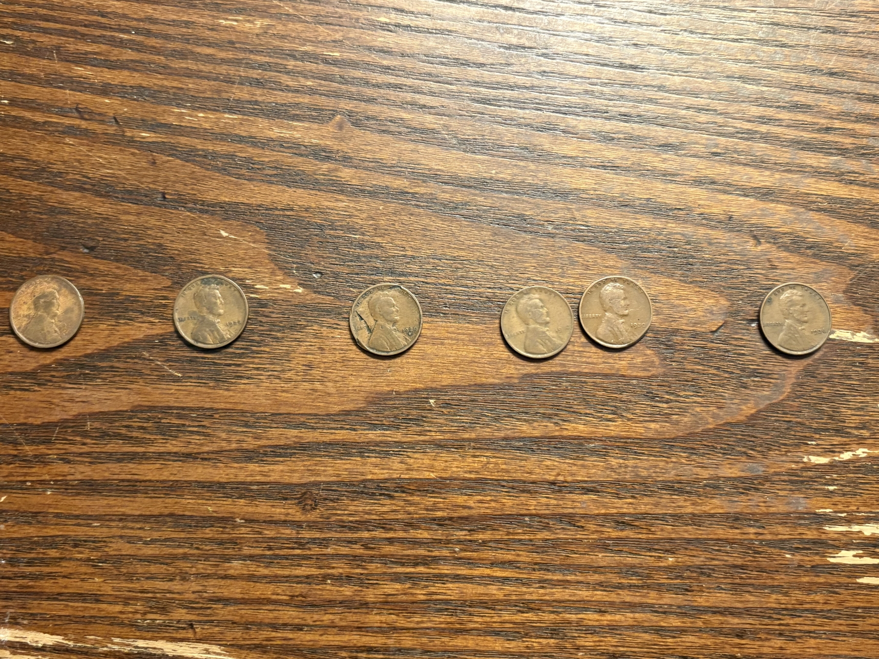 Assorted Wheat Pennies - FV $0.06 - 1920 - 1923 -1929-D - 1930 - 1936
