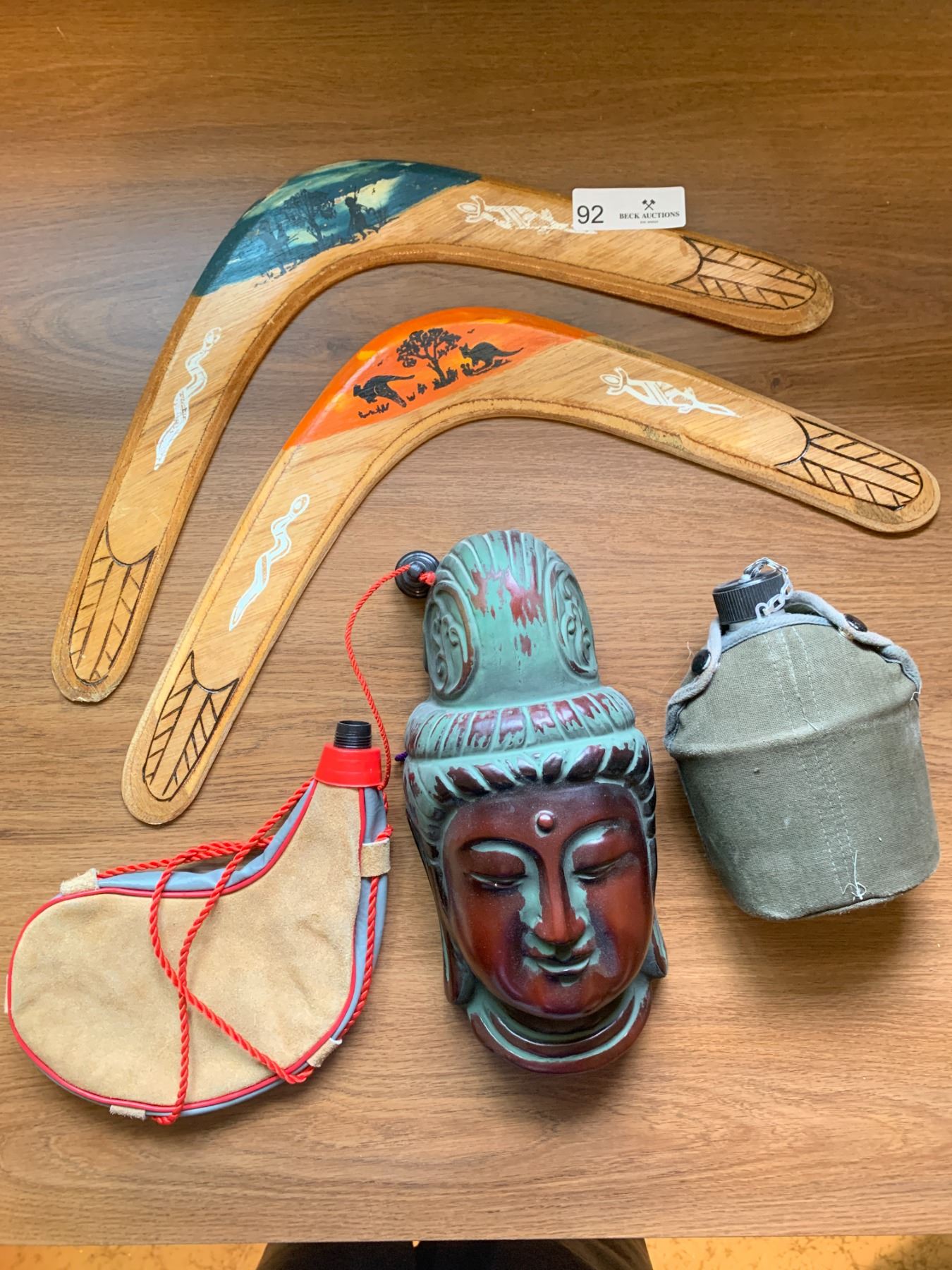 Assorted World Traveler Lot Boomerangs Pigskin Canteen and More