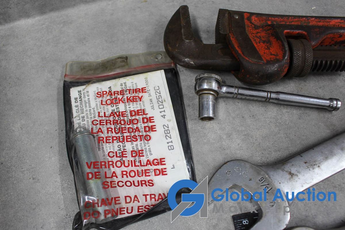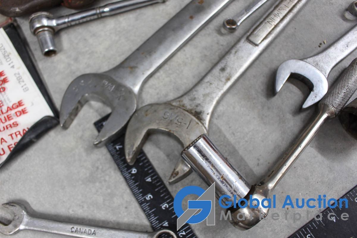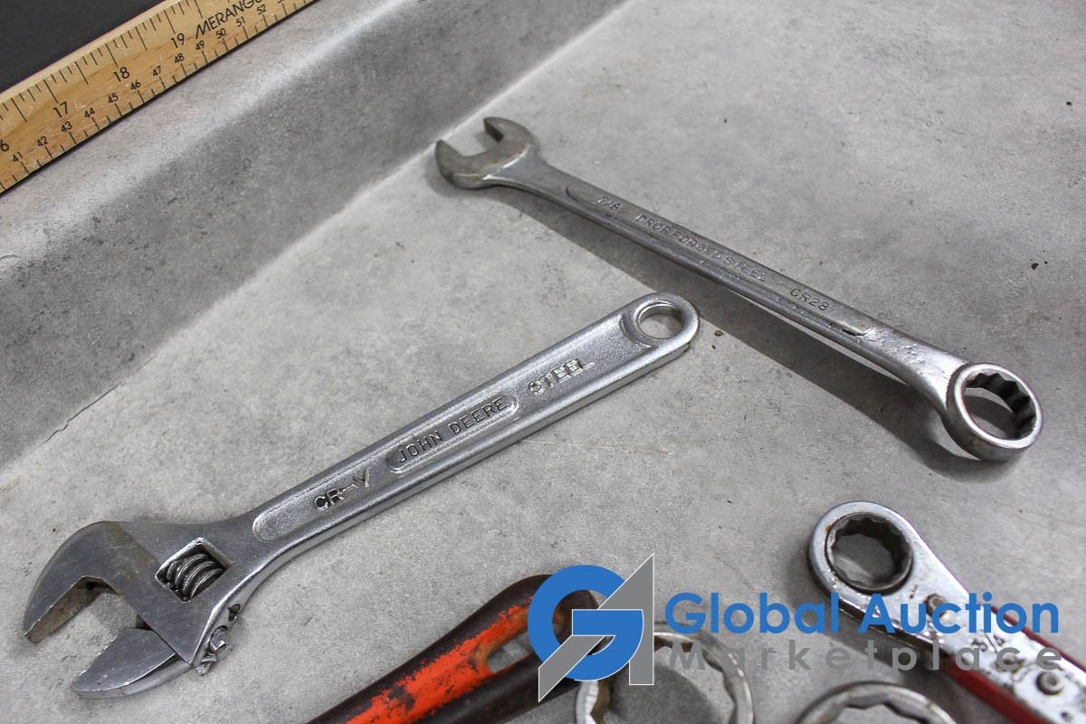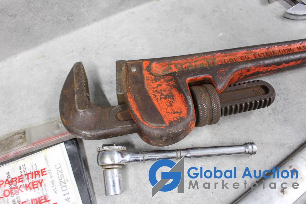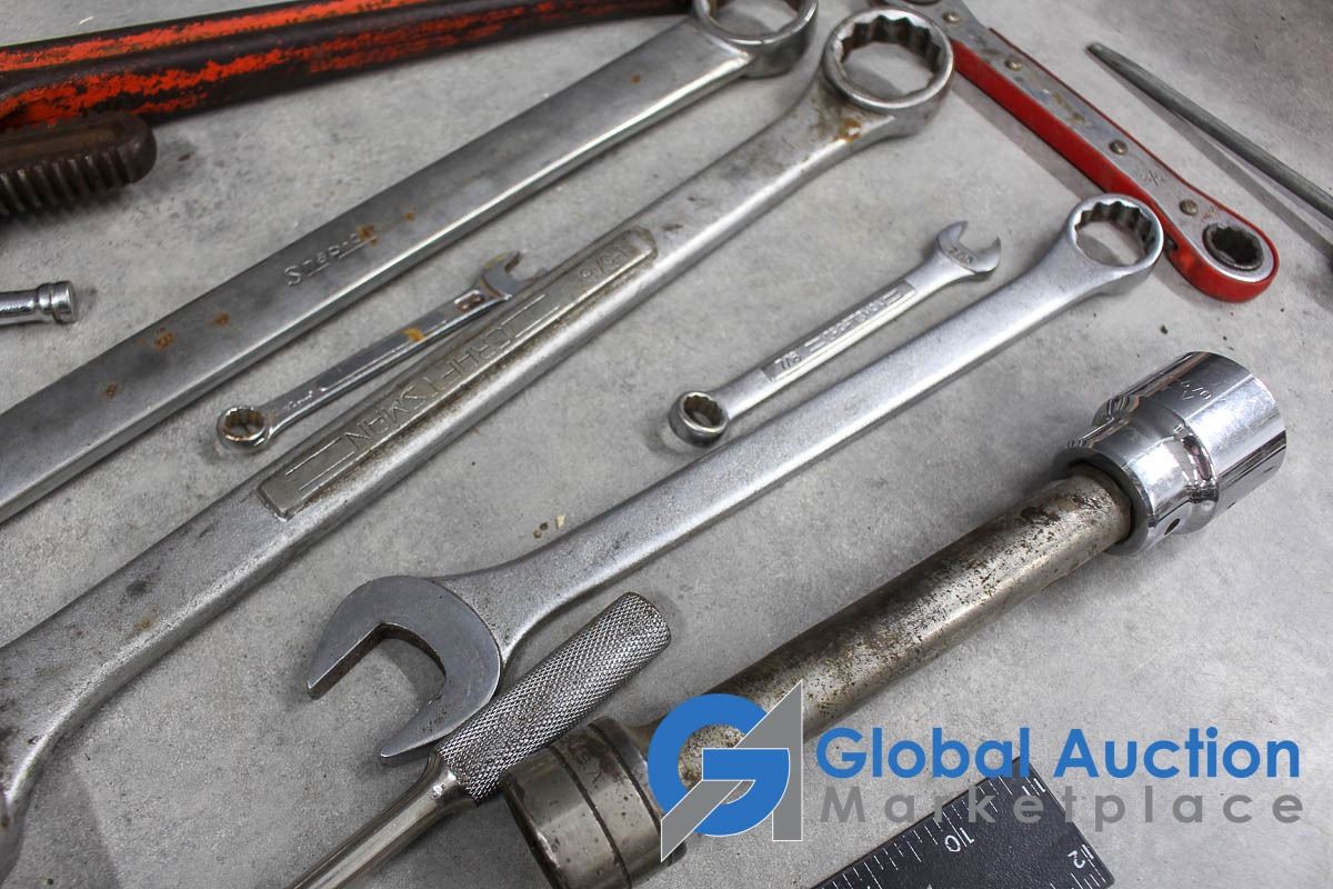 Assorted Wrenches, Sockets, Ratchets, Pipe Wrench