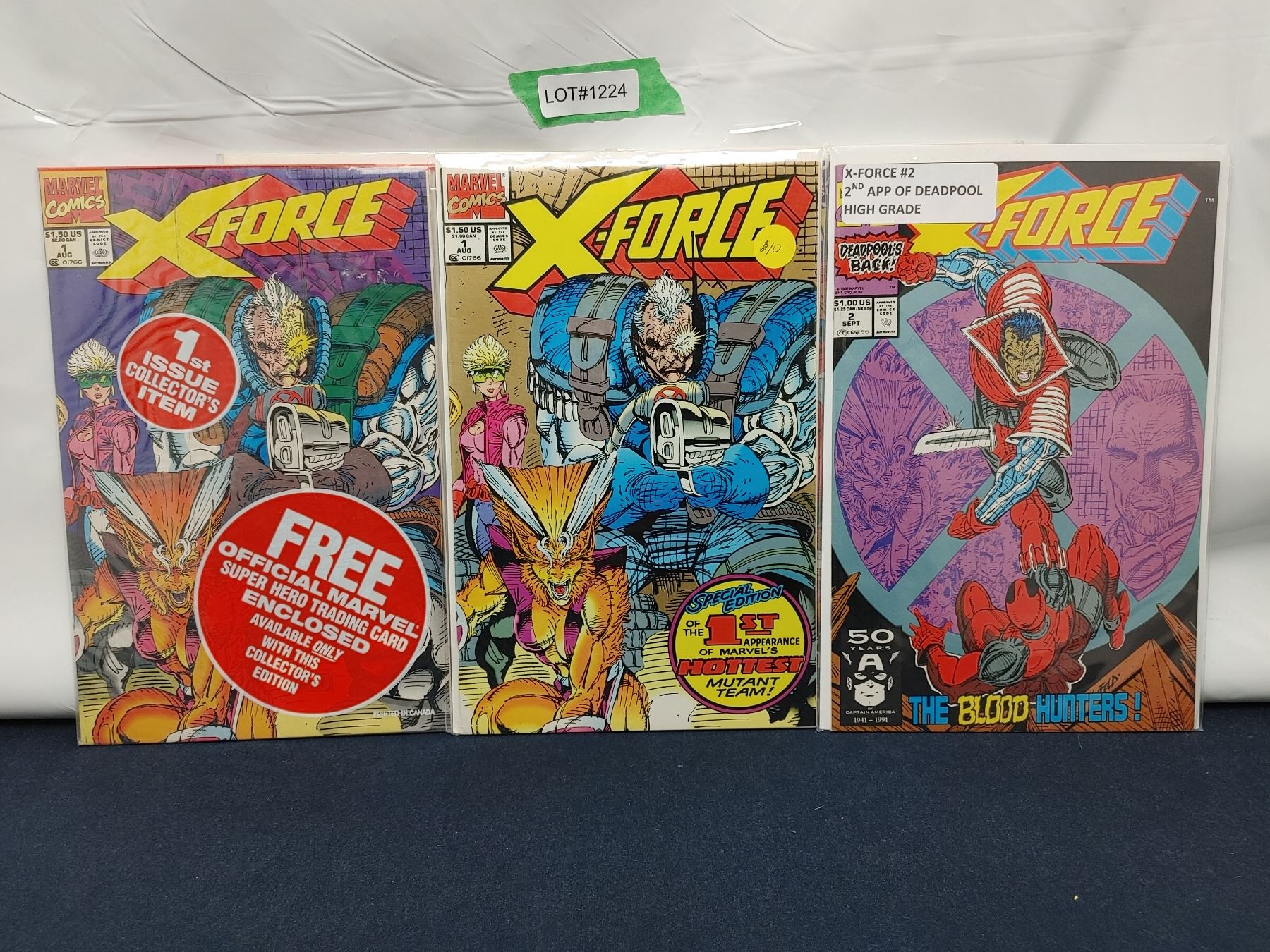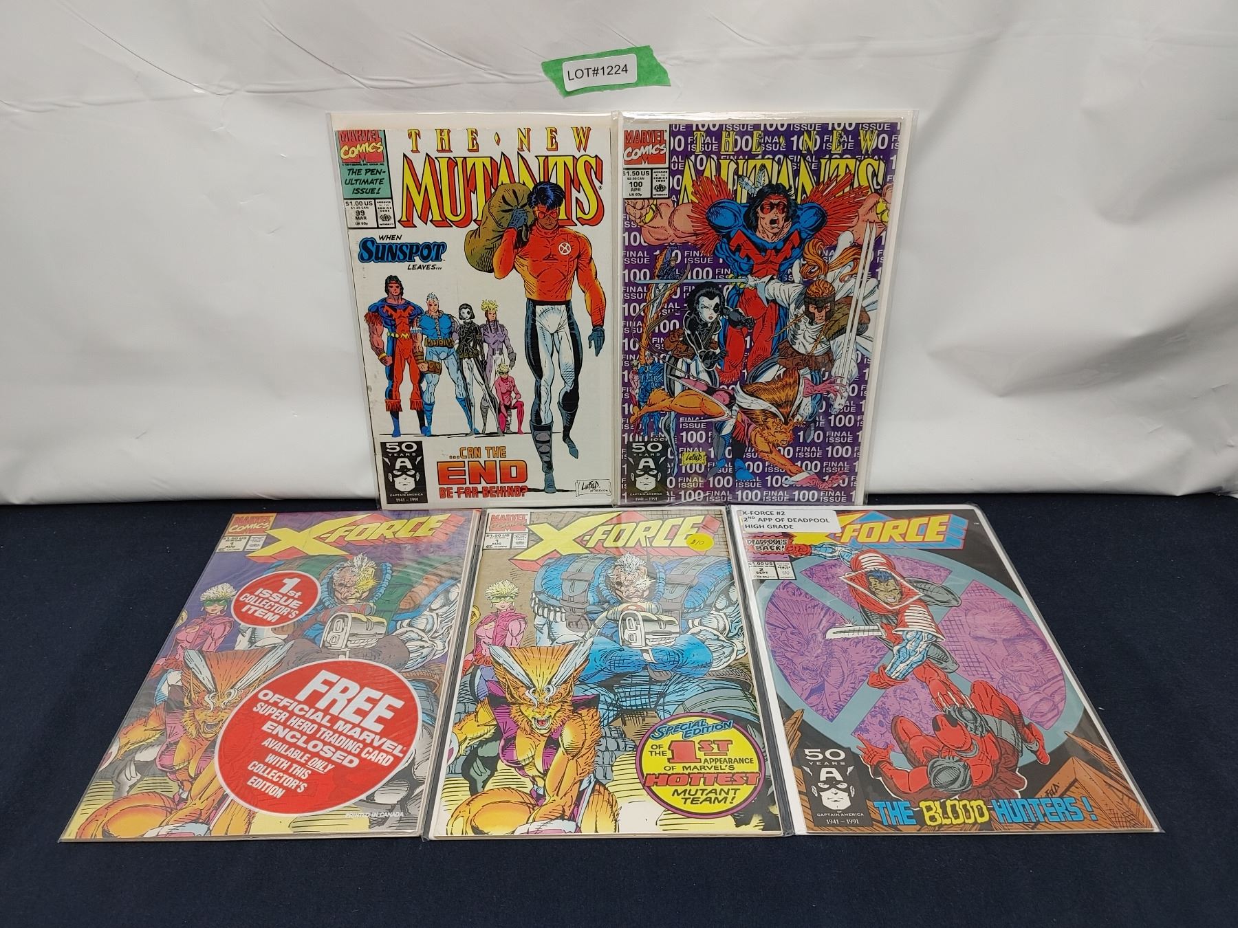 New Mutants #99 (KEY) 1st Appearance Shatterstar and Feral, #100 (KEY) 1st Appearance X-Force: X-Force #1(KEY) 1st polybagged with card comic (Deadpool Trading Card), #1 2nd Print, #2 (KEY) 2nd Appearance Deadpool, Rob Liefield