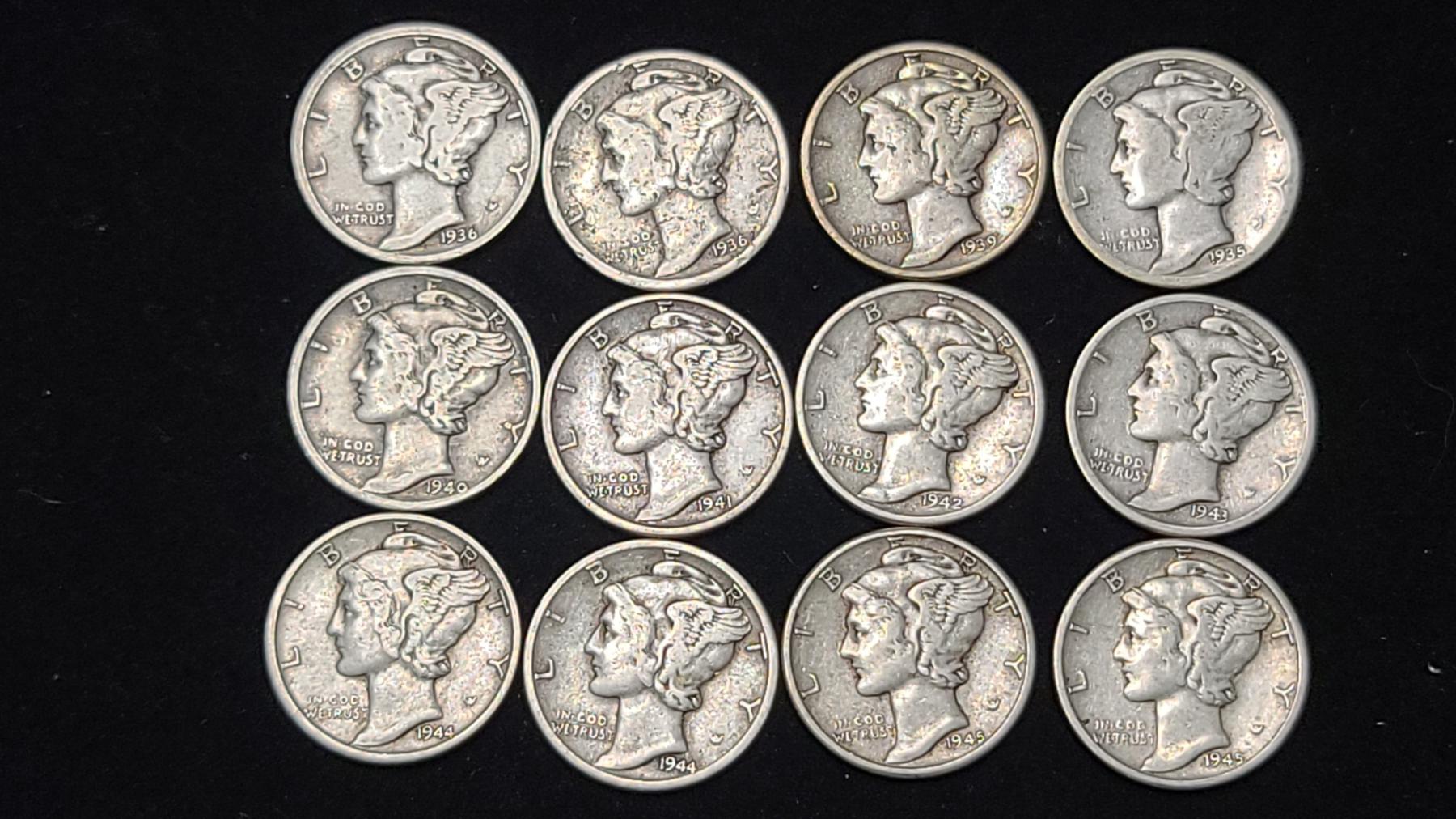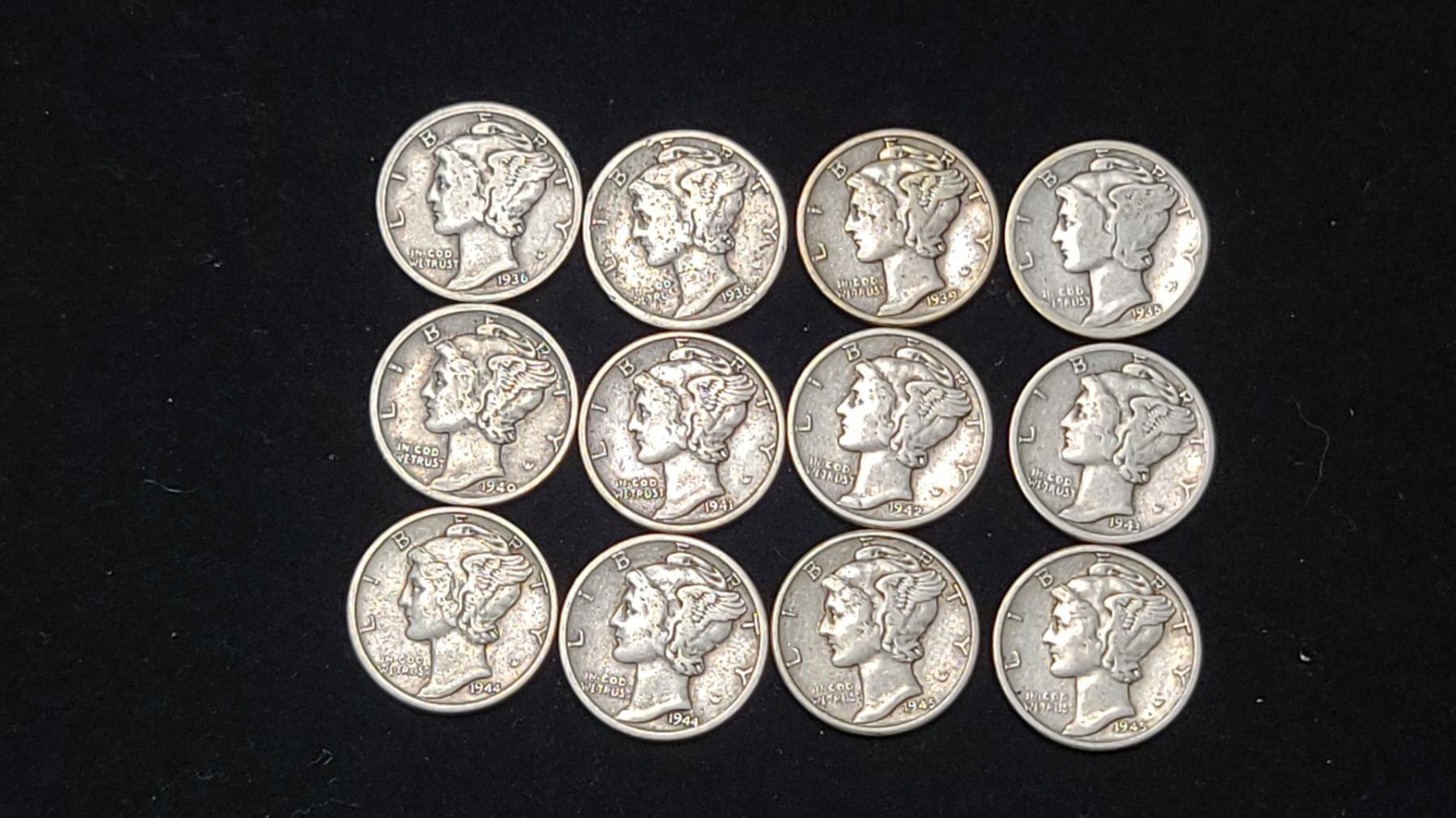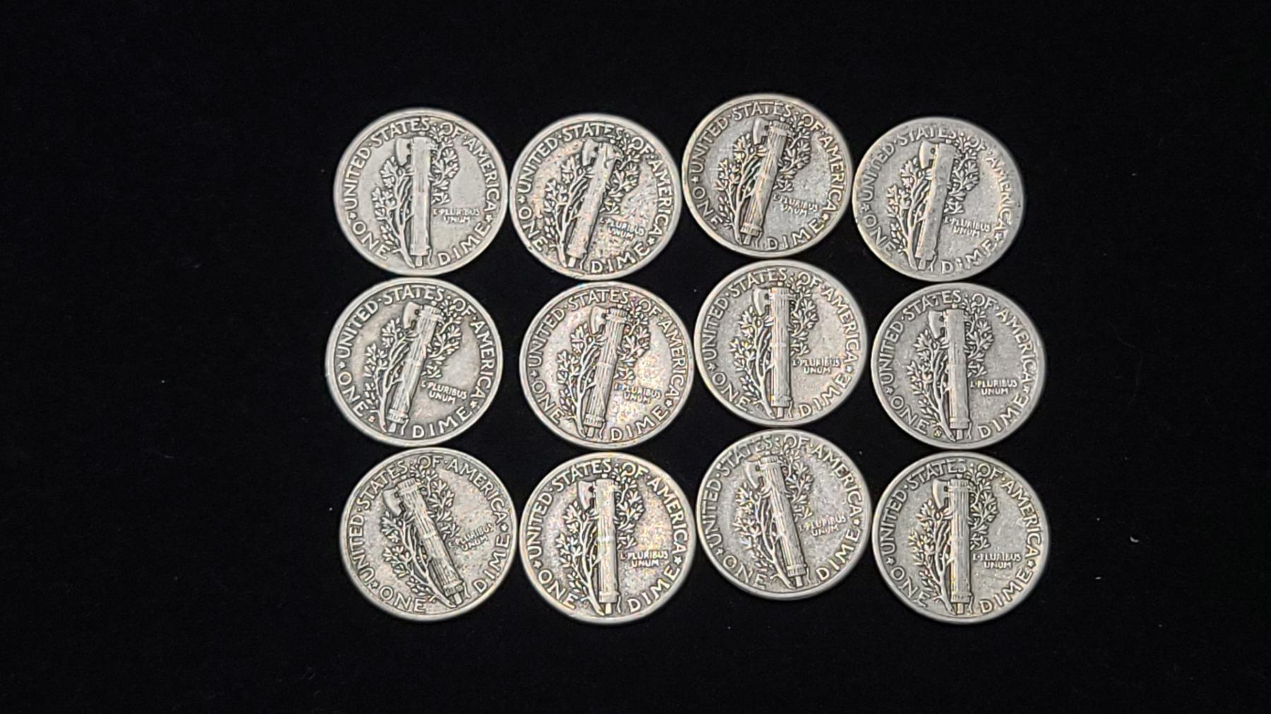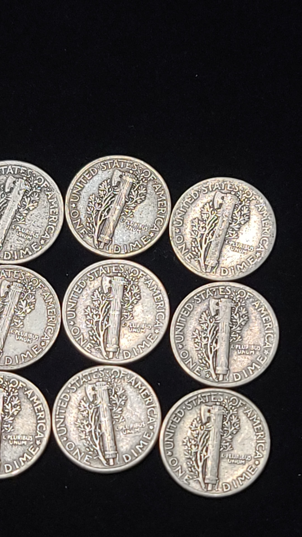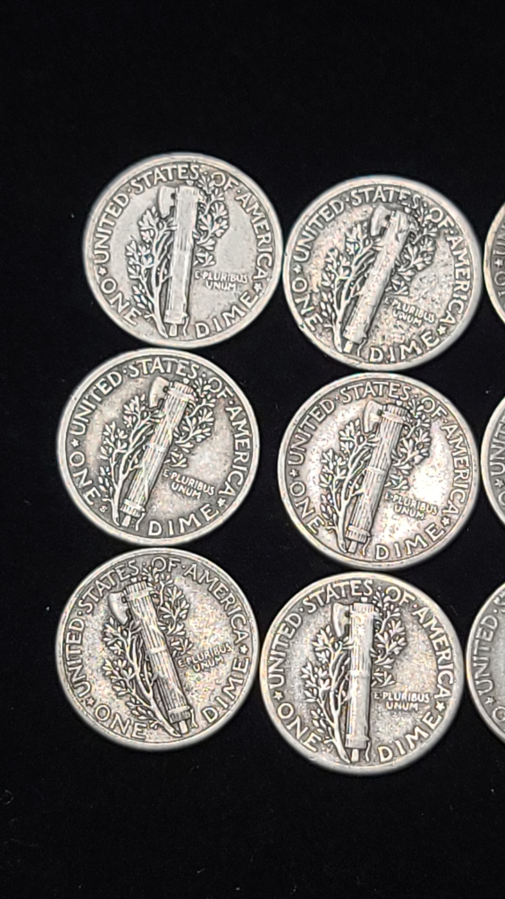 Assorted Years 90% Silver Mercury Dimes - Face Value: $1.20