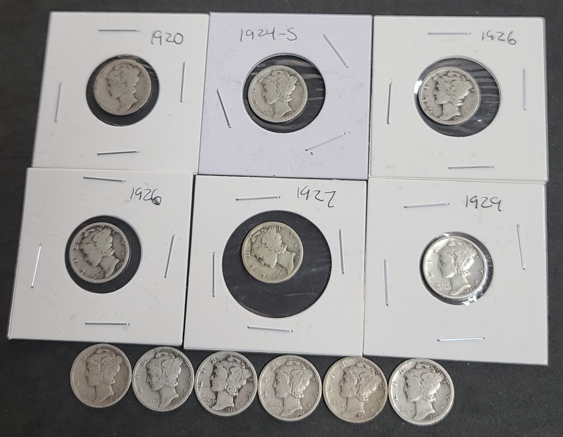 Assorted Years 90% Silver Mercury Dimes - Face Value: $1.20
