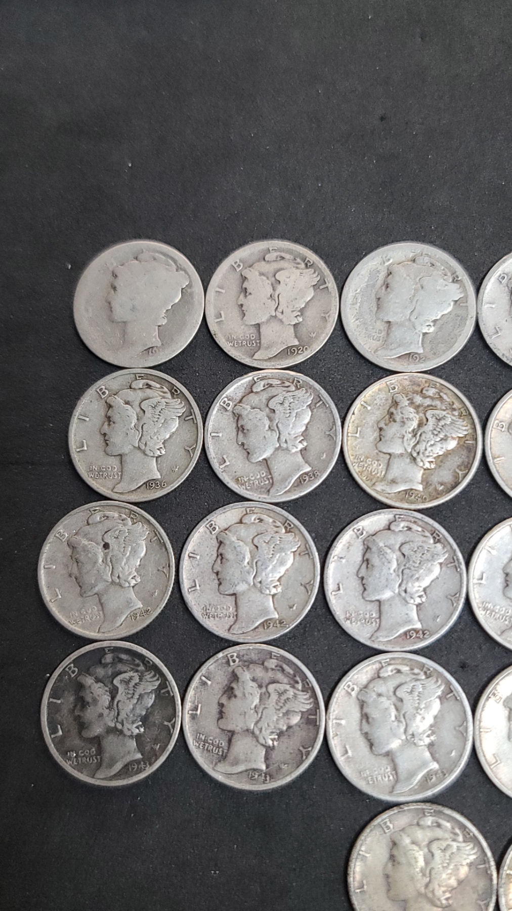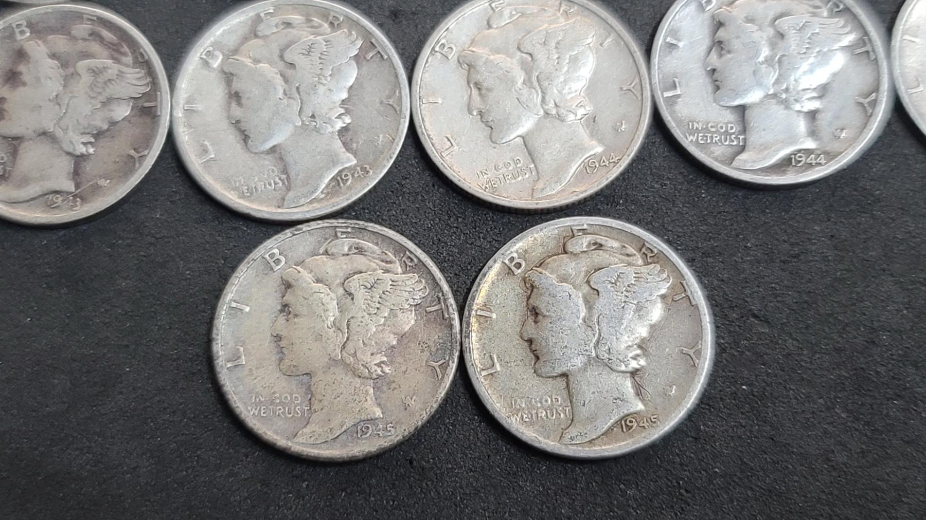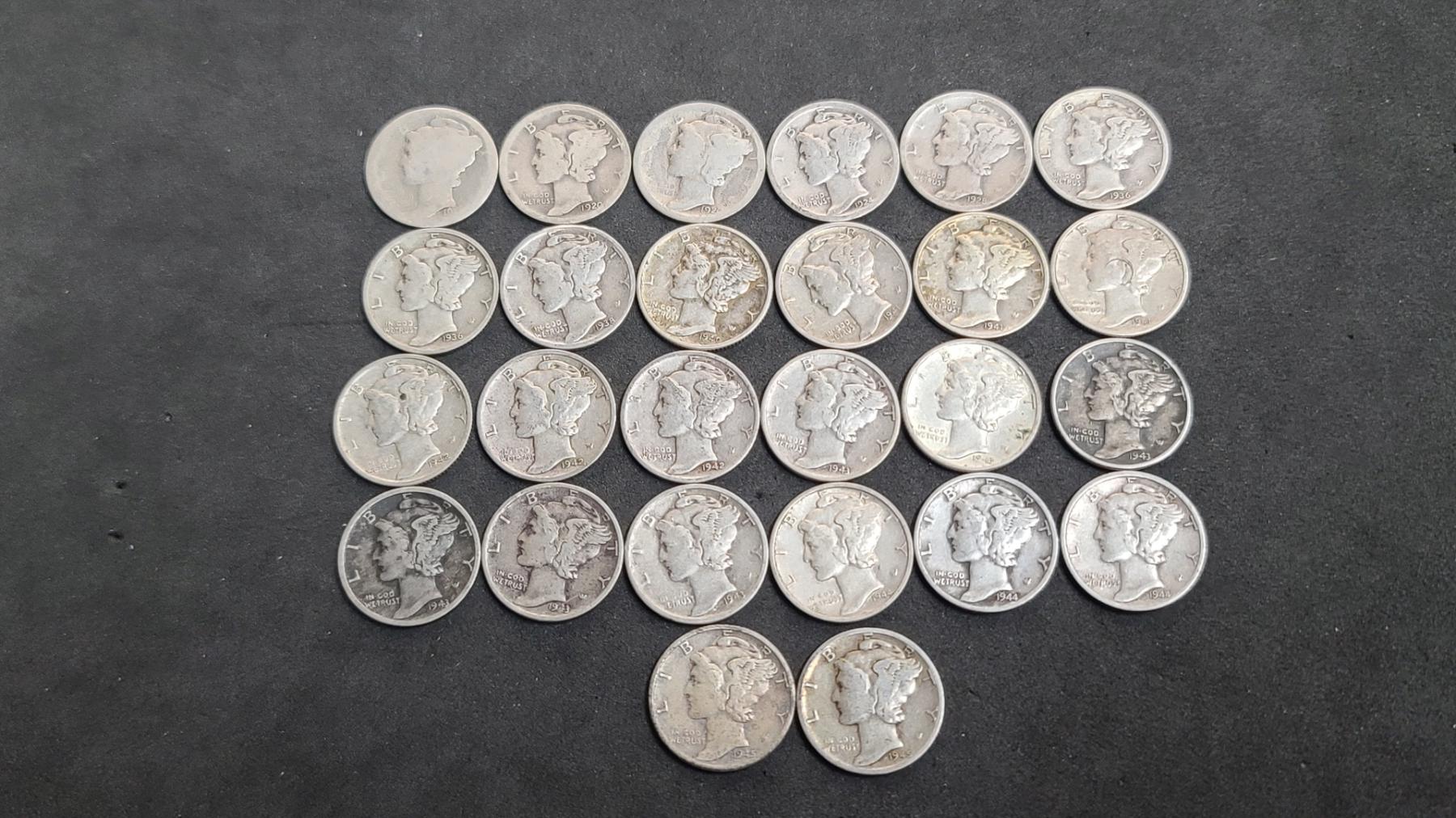 Assorted Years 90% Silver Mercury Dimes - Face Value: $2.70