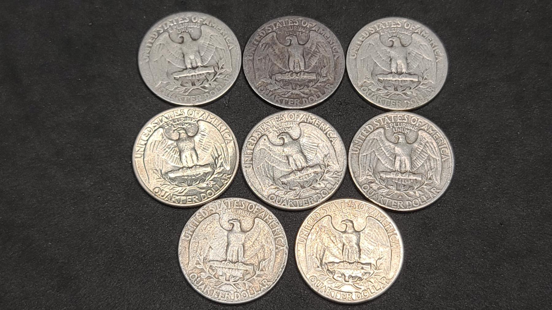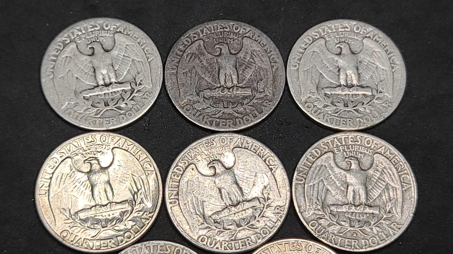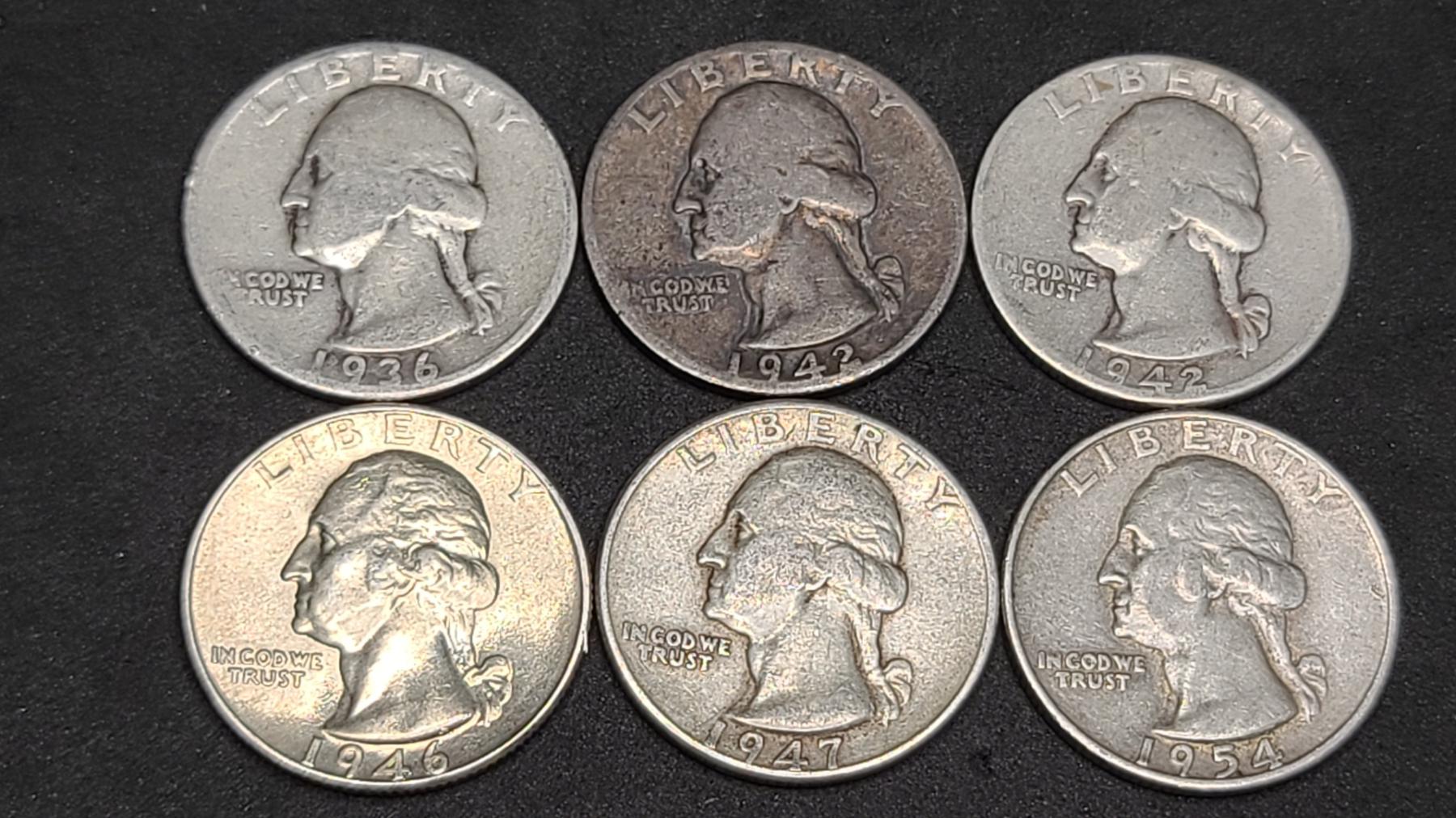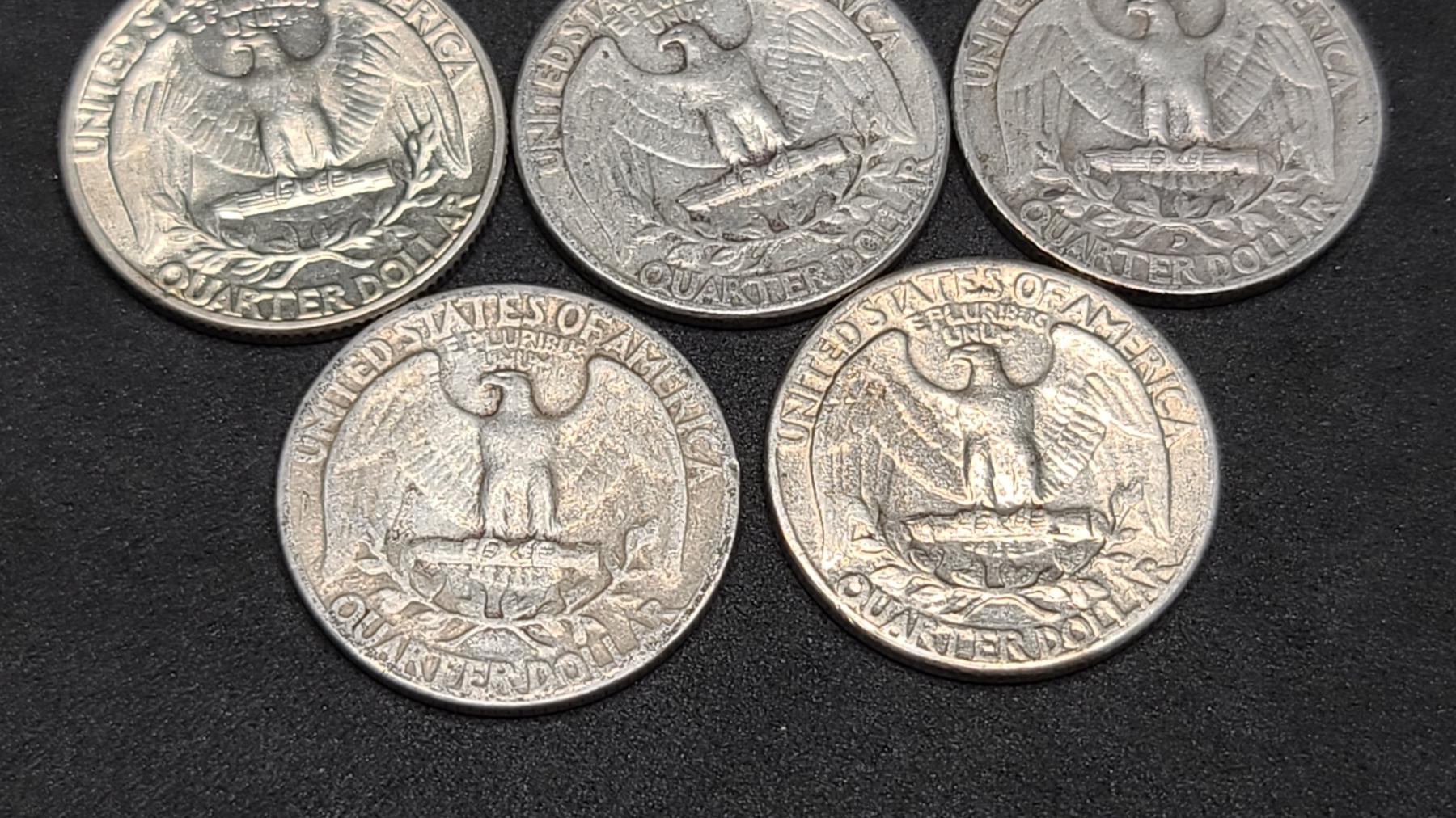 Assorted Years 90% Silver Washington Head Quarters- Face Value: $2.00