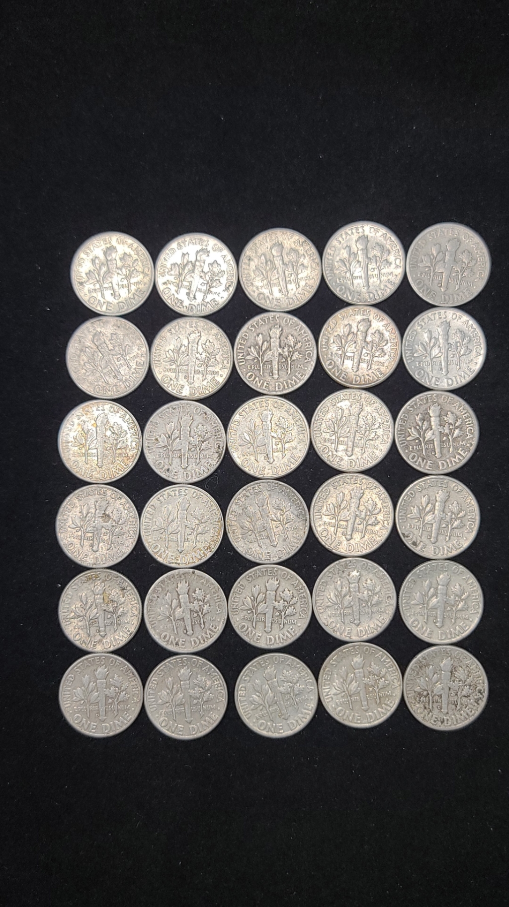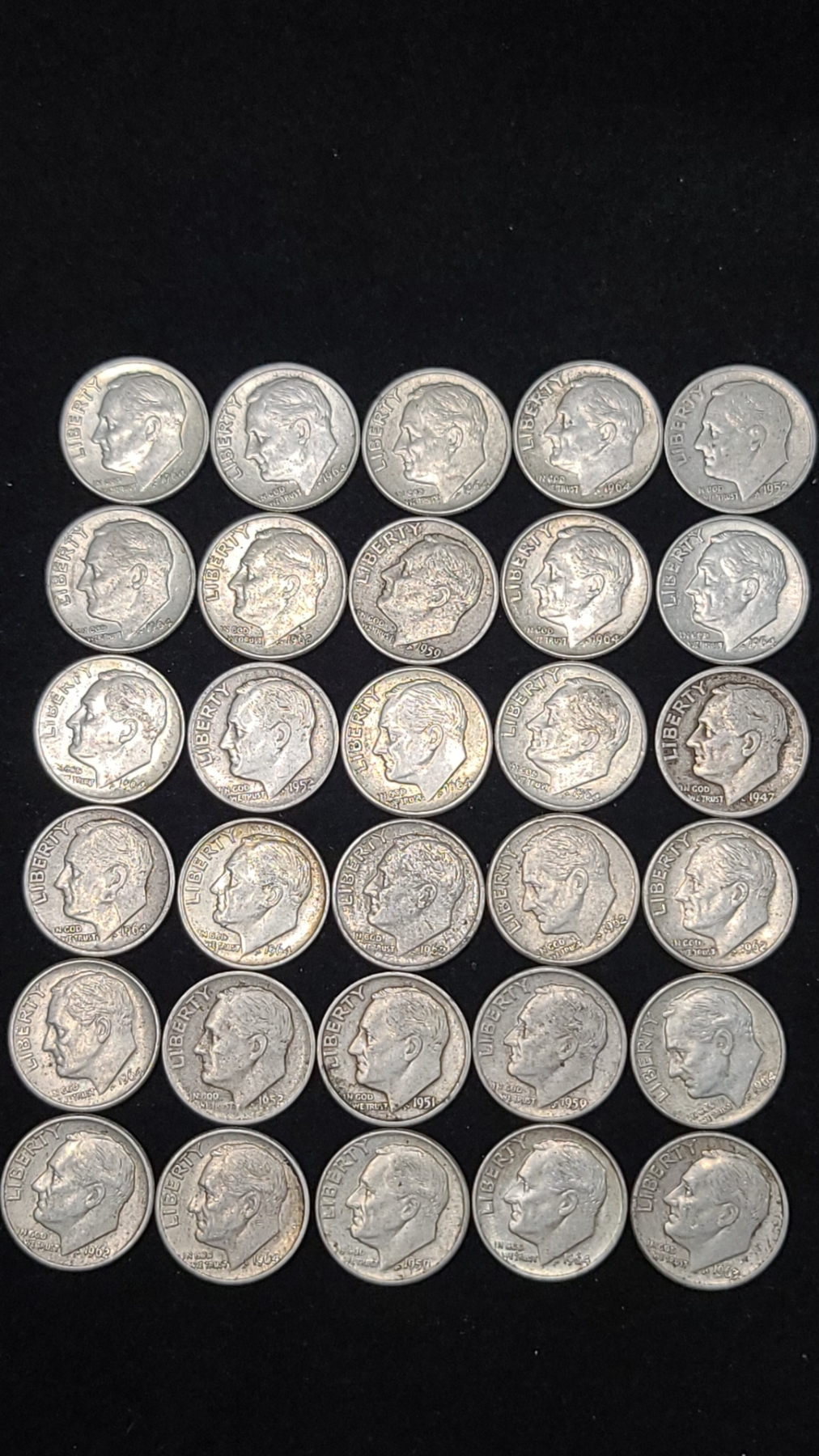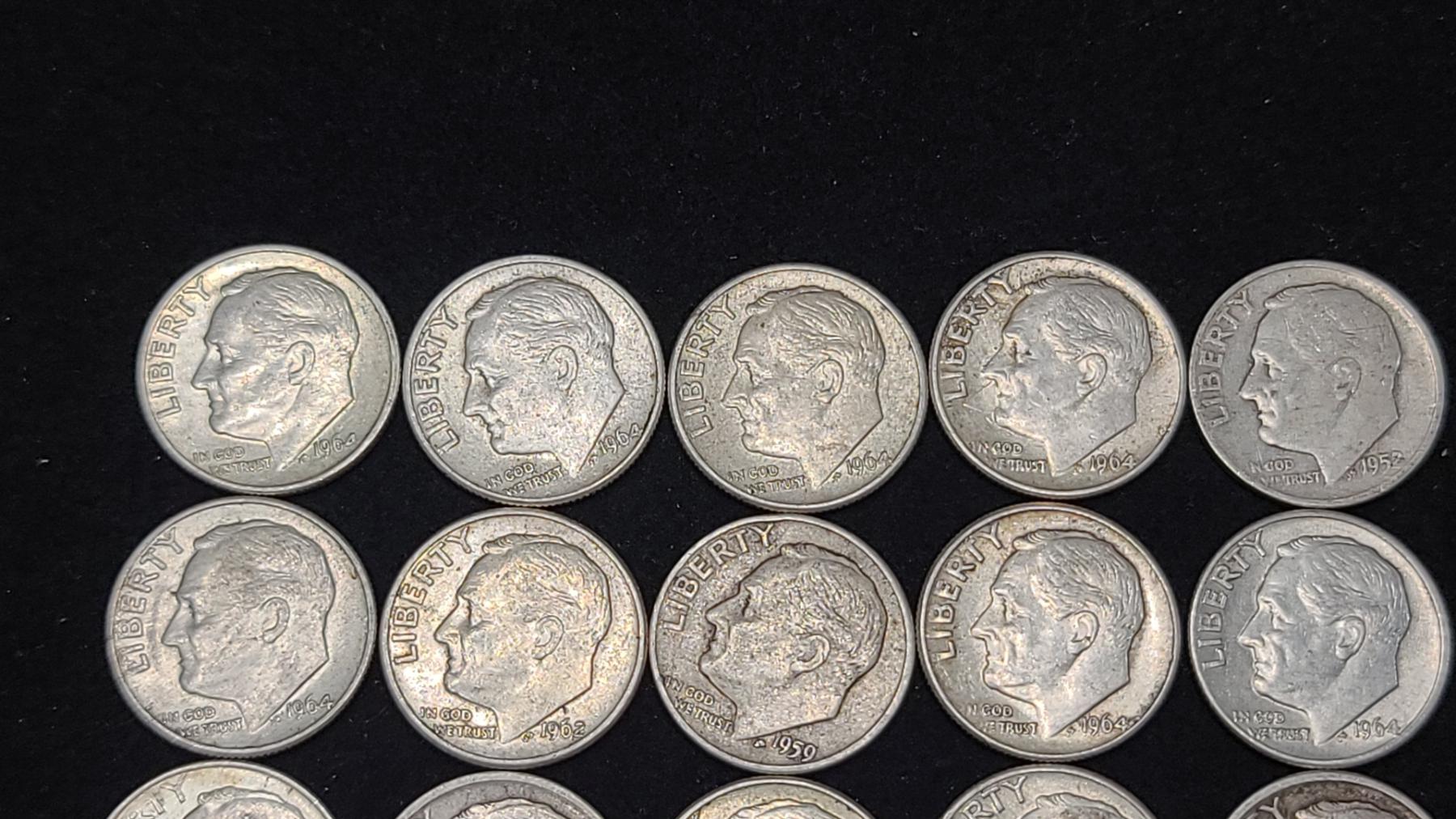 Assorted Years & Mint Marks 90% Silver Roosevelt Dimes - Face Value: $3.00