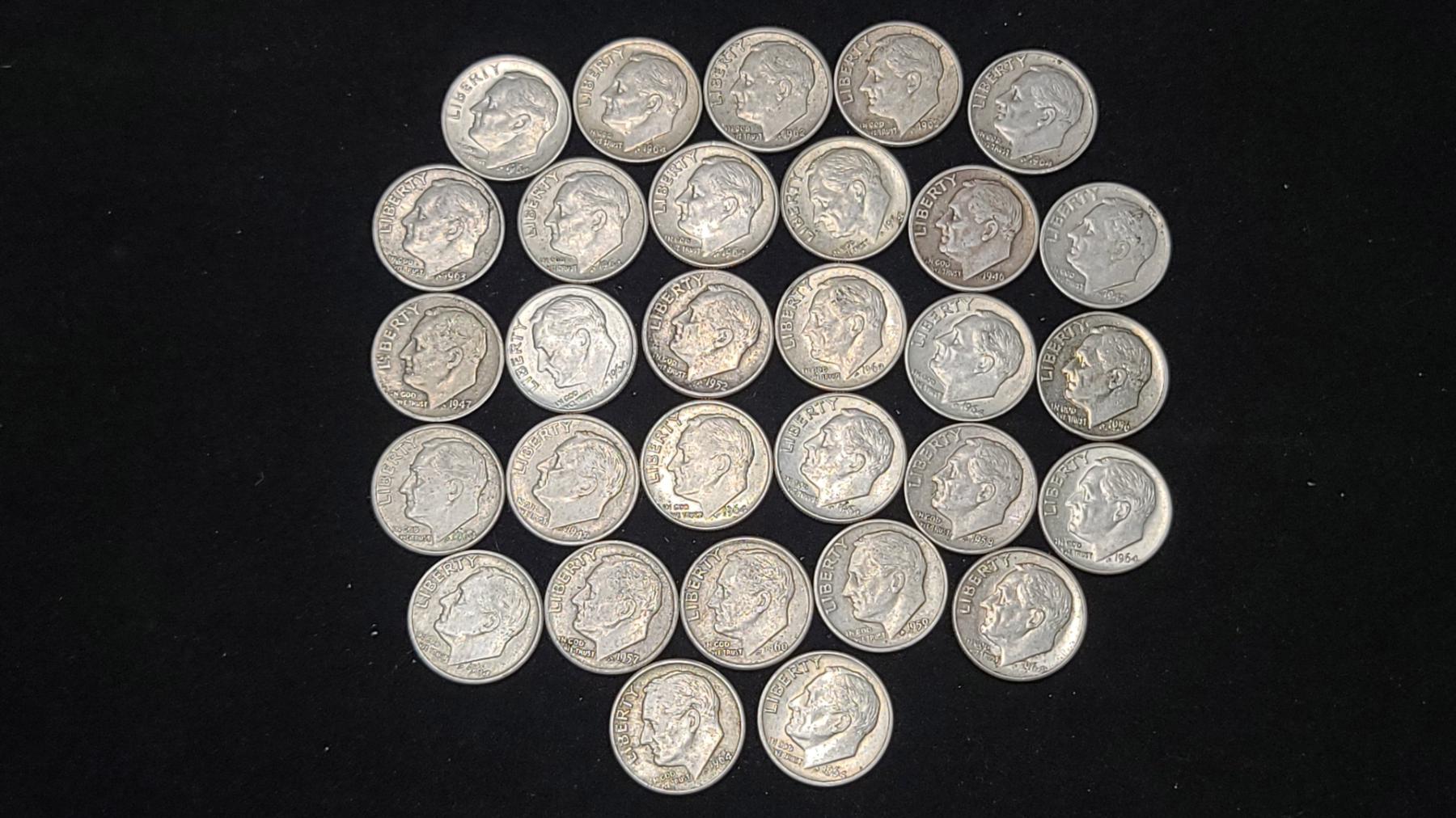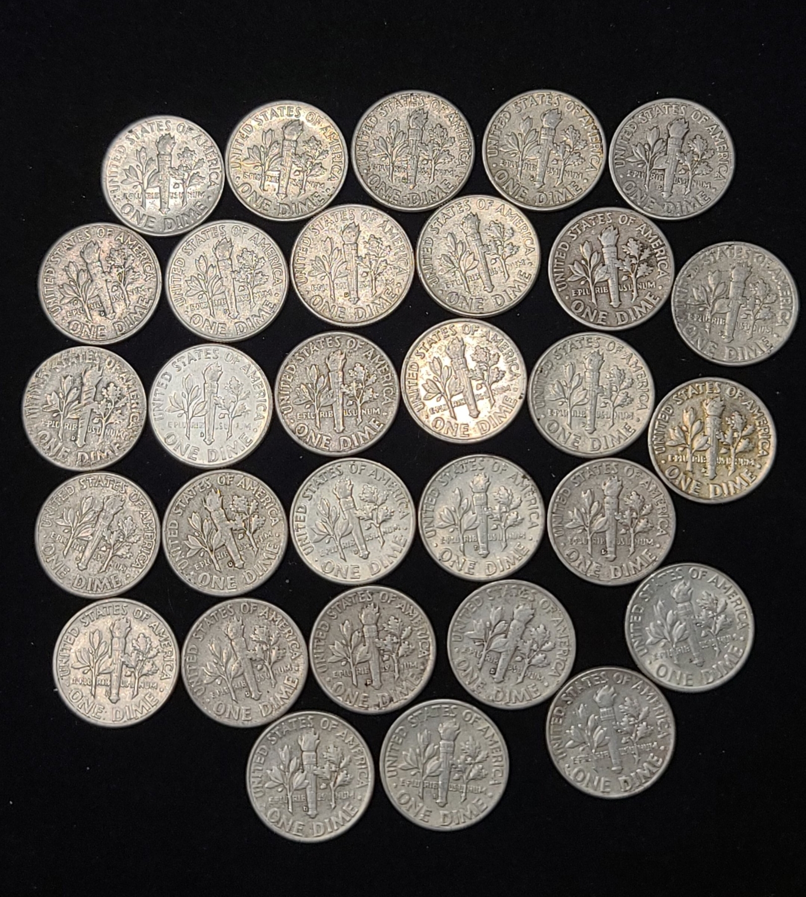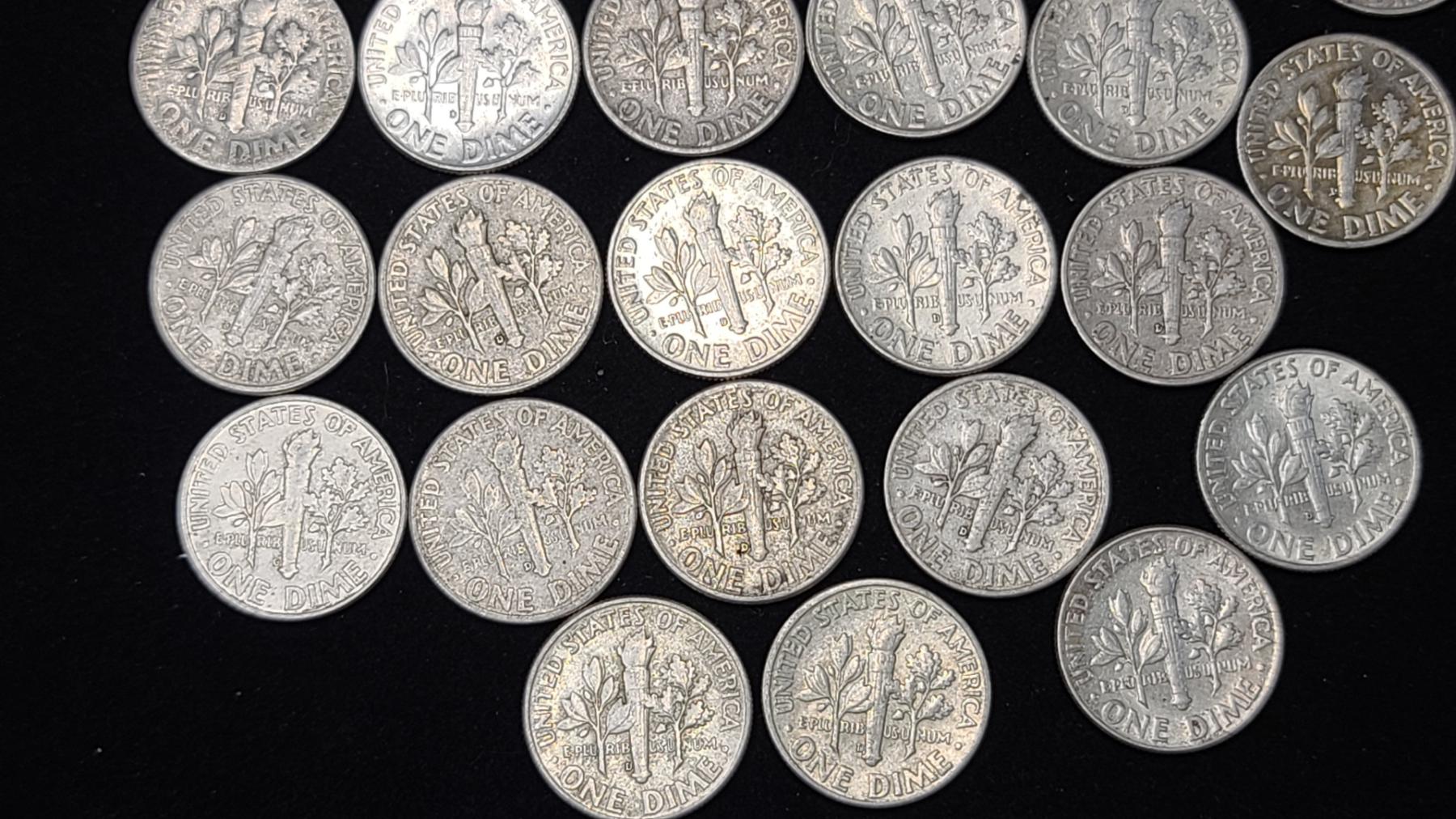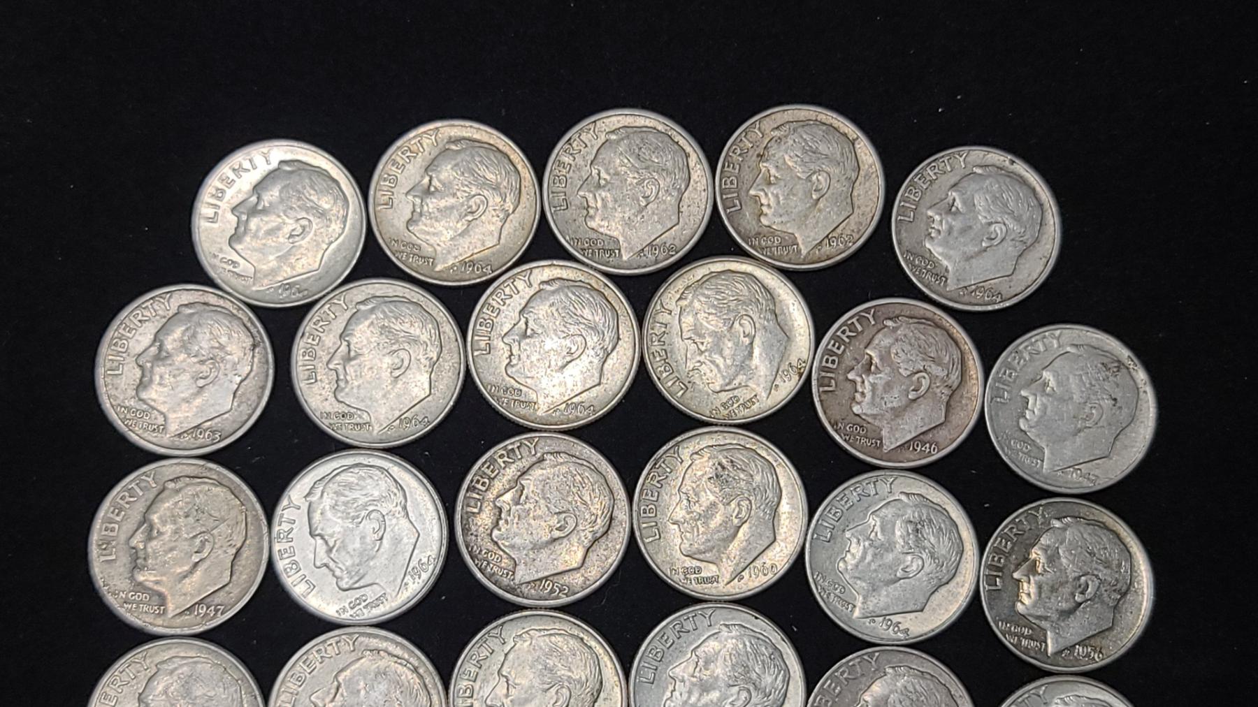 Assorted Years & Mint Marks 90% Silver Roosevelt Dimes - Face Value: $3.00