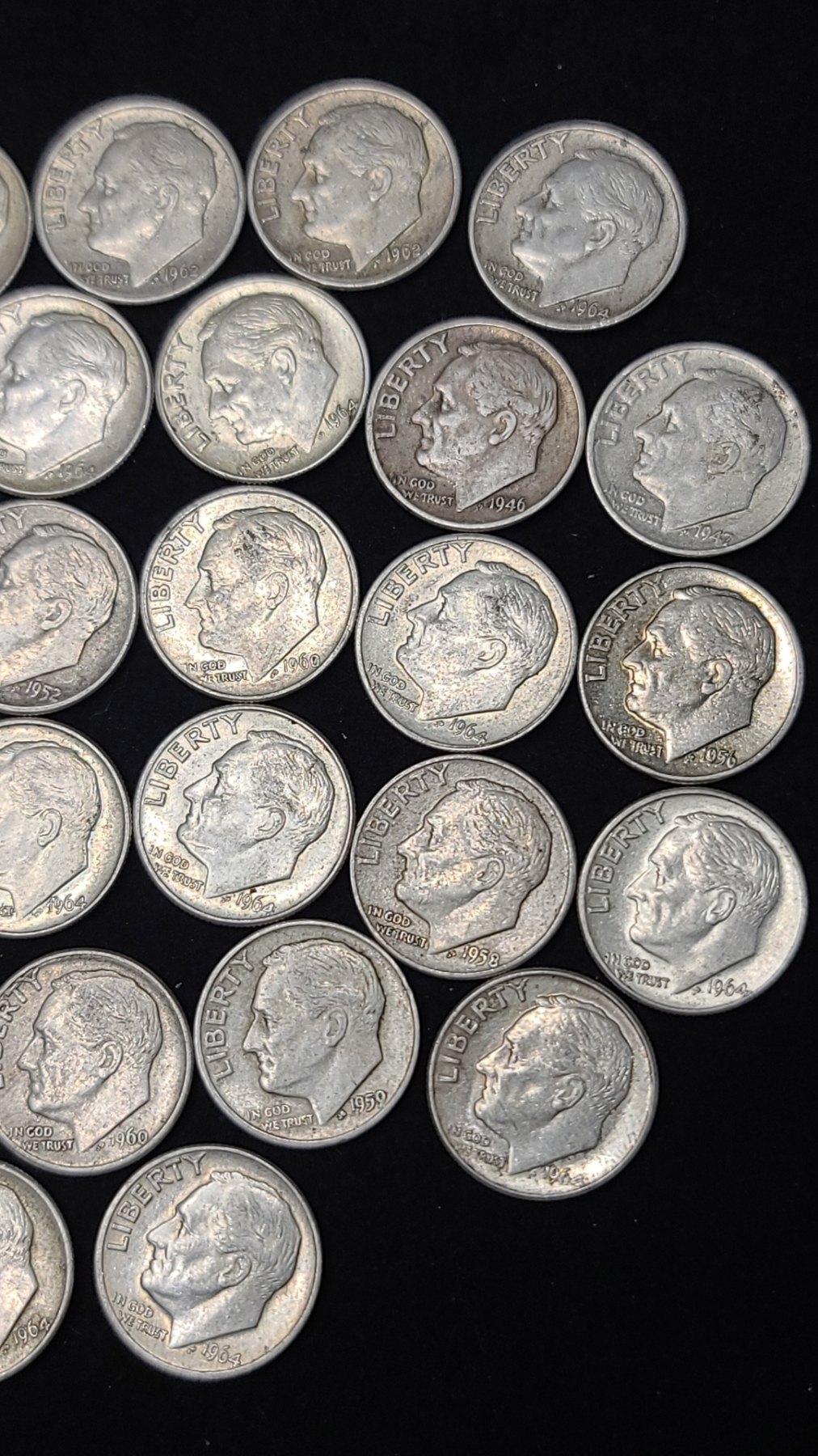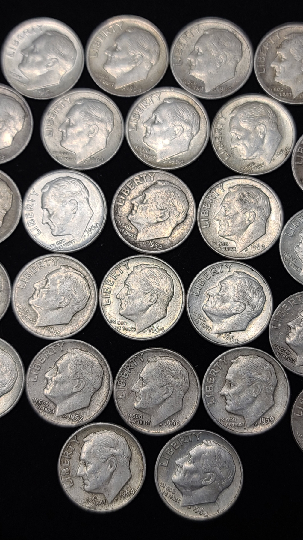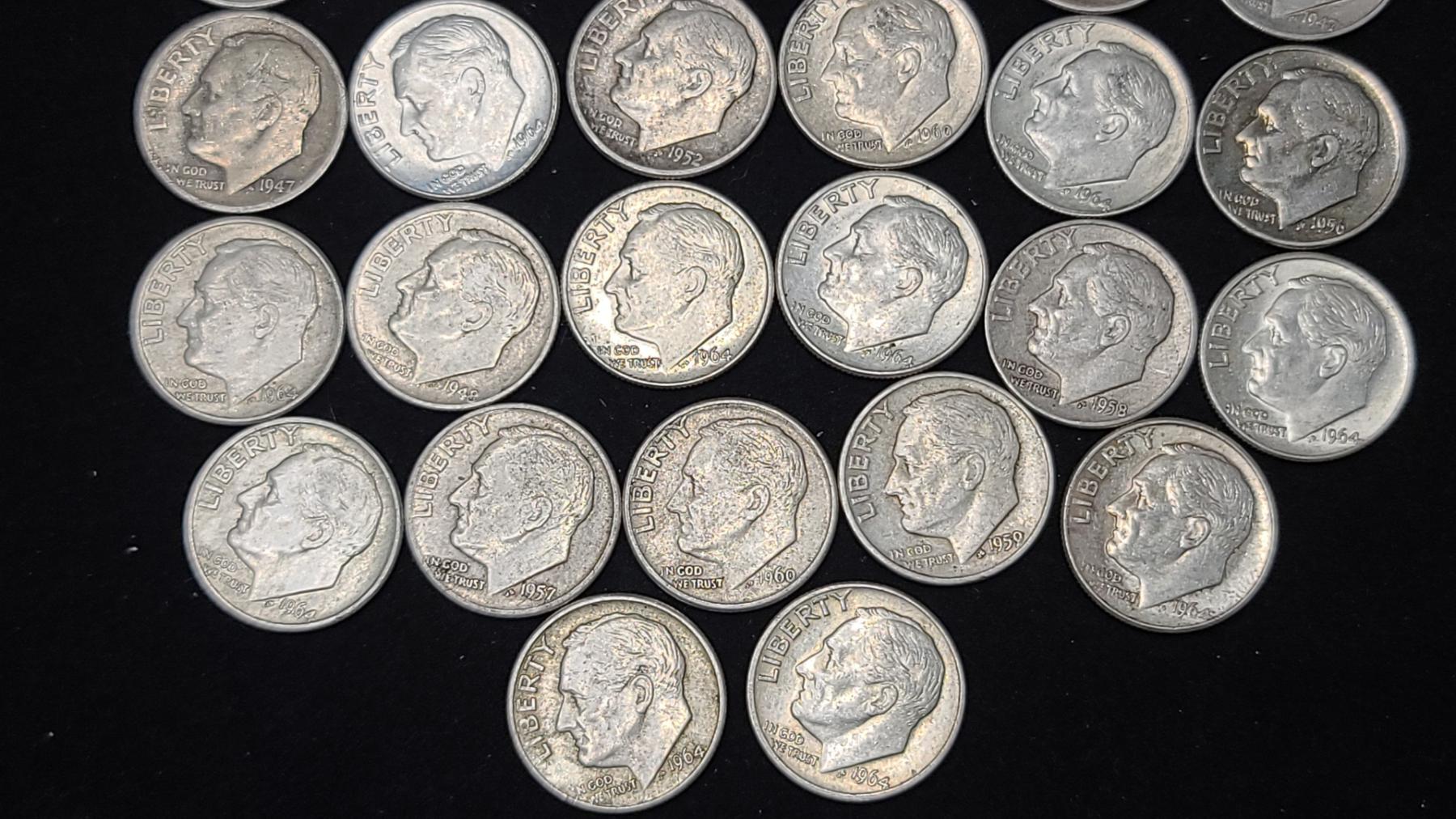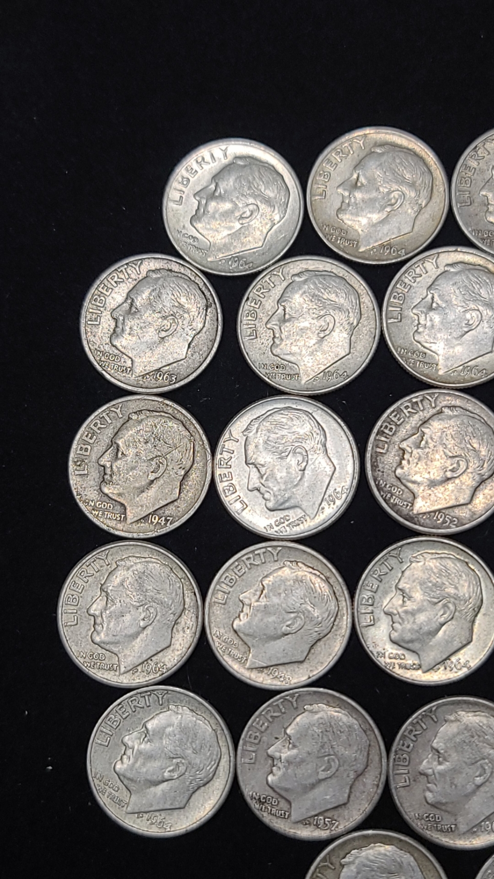 Assorted Years & Mint Marks 90% Silver Roosevelt Dimes - Face Value: $3.00