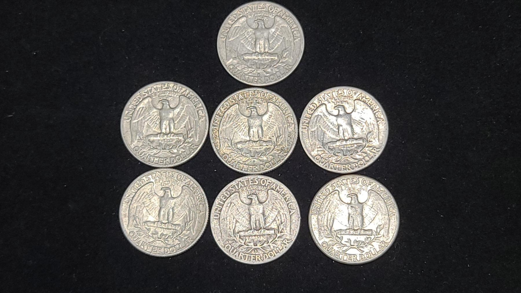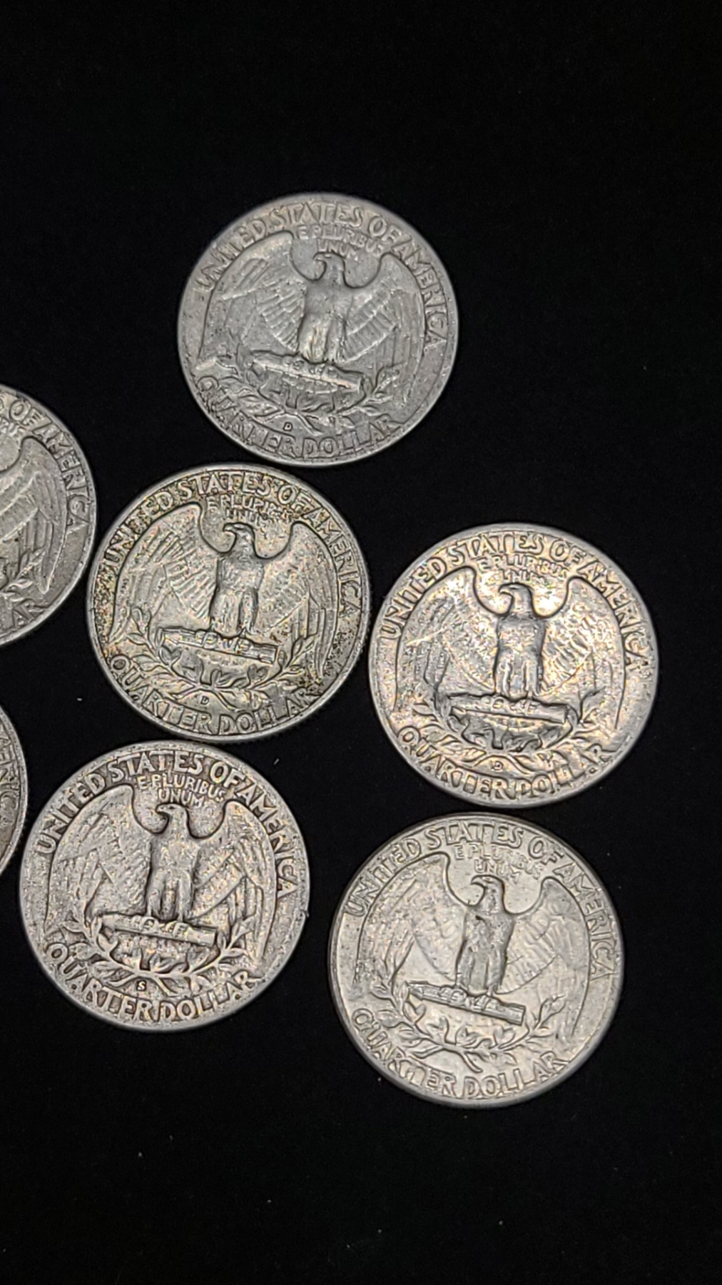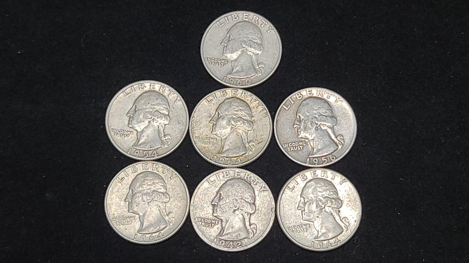 Assorted Years & Mint Marks 90% Silver Washington Quarters - Face Value: $1.75