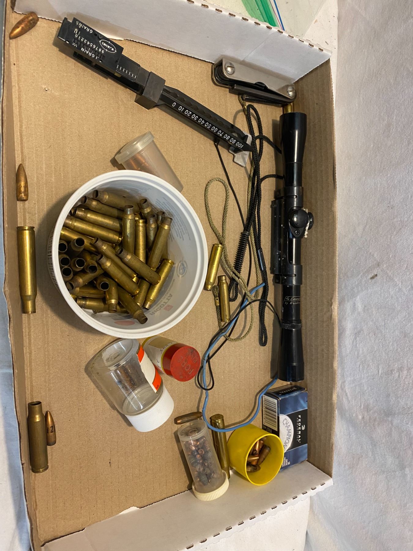 Assorted ammo related and bushnell scope