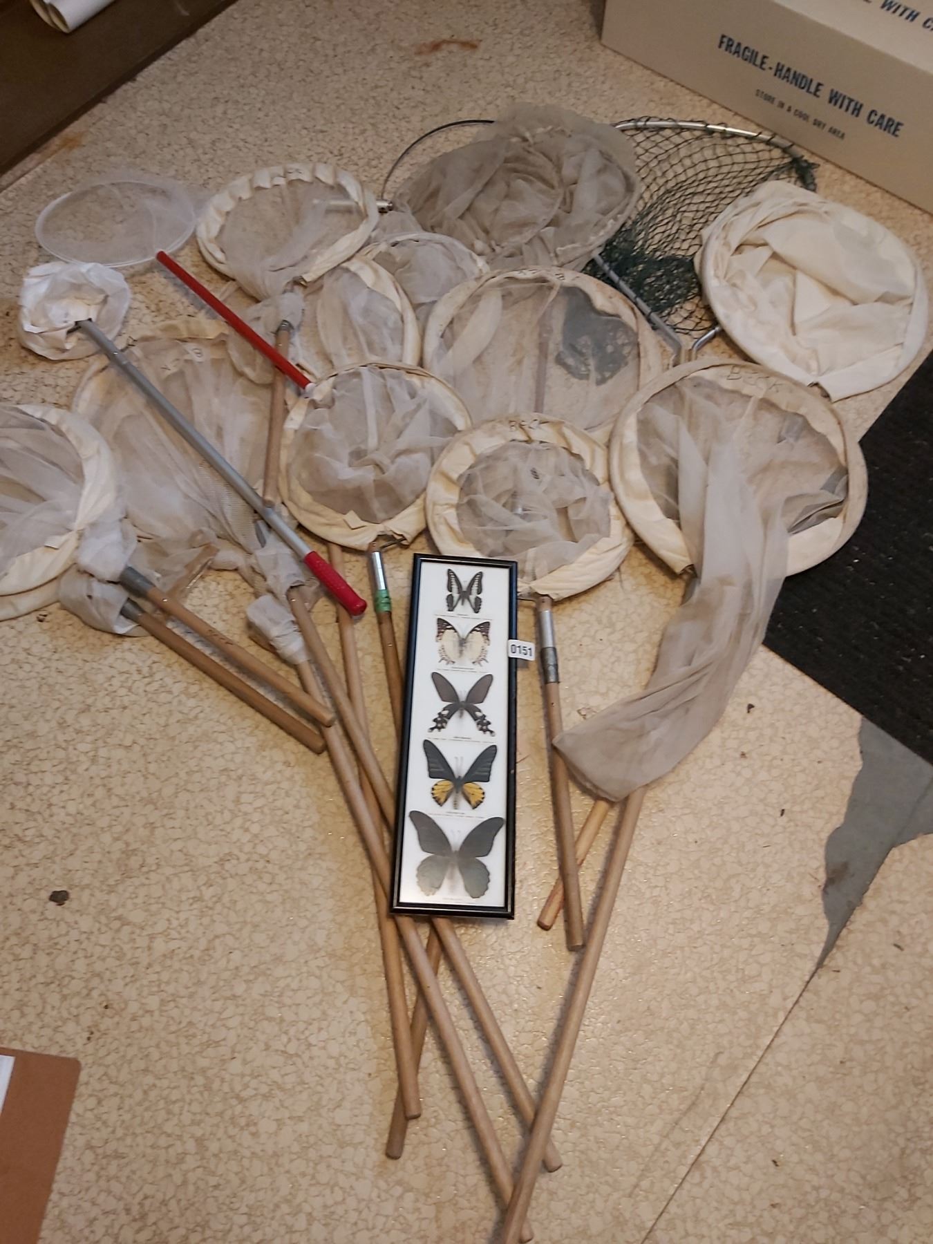 Assorted butterfly nets, display butterflies