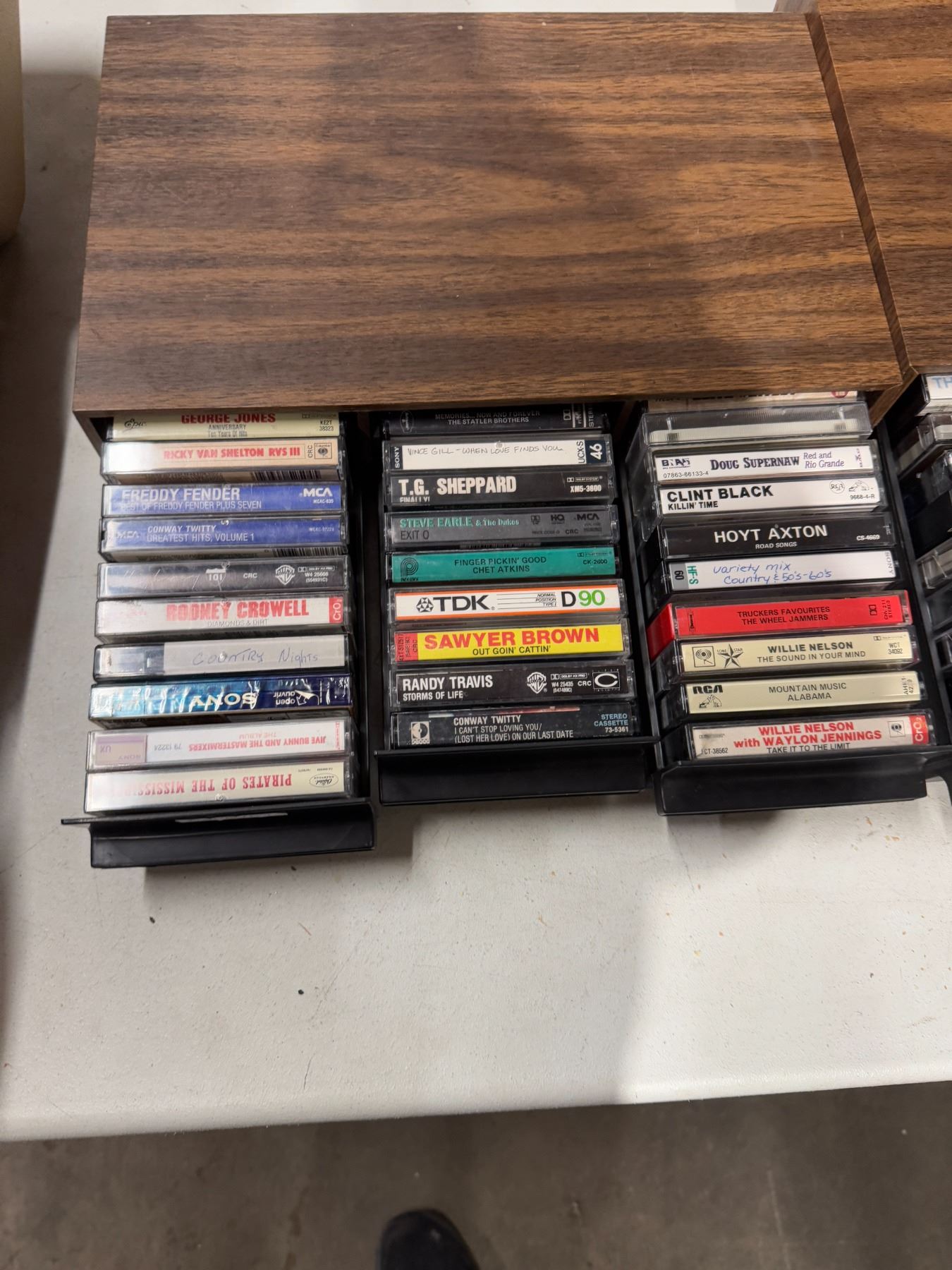 Assorted cassettes, Freddy Fender, Sawyer Brown, Floyd Cramer, and more