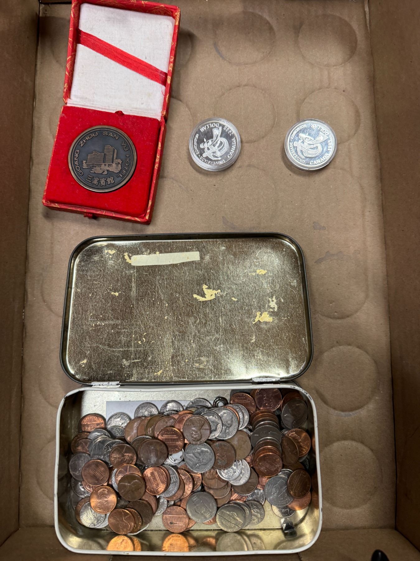 Assorted currency and tokens