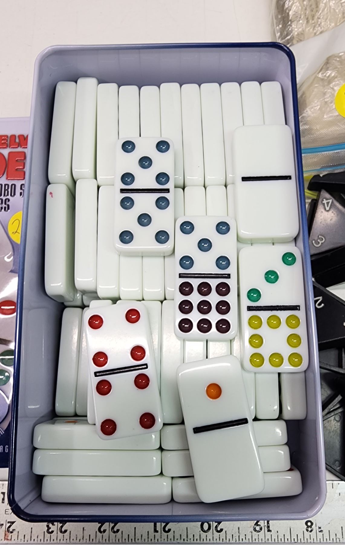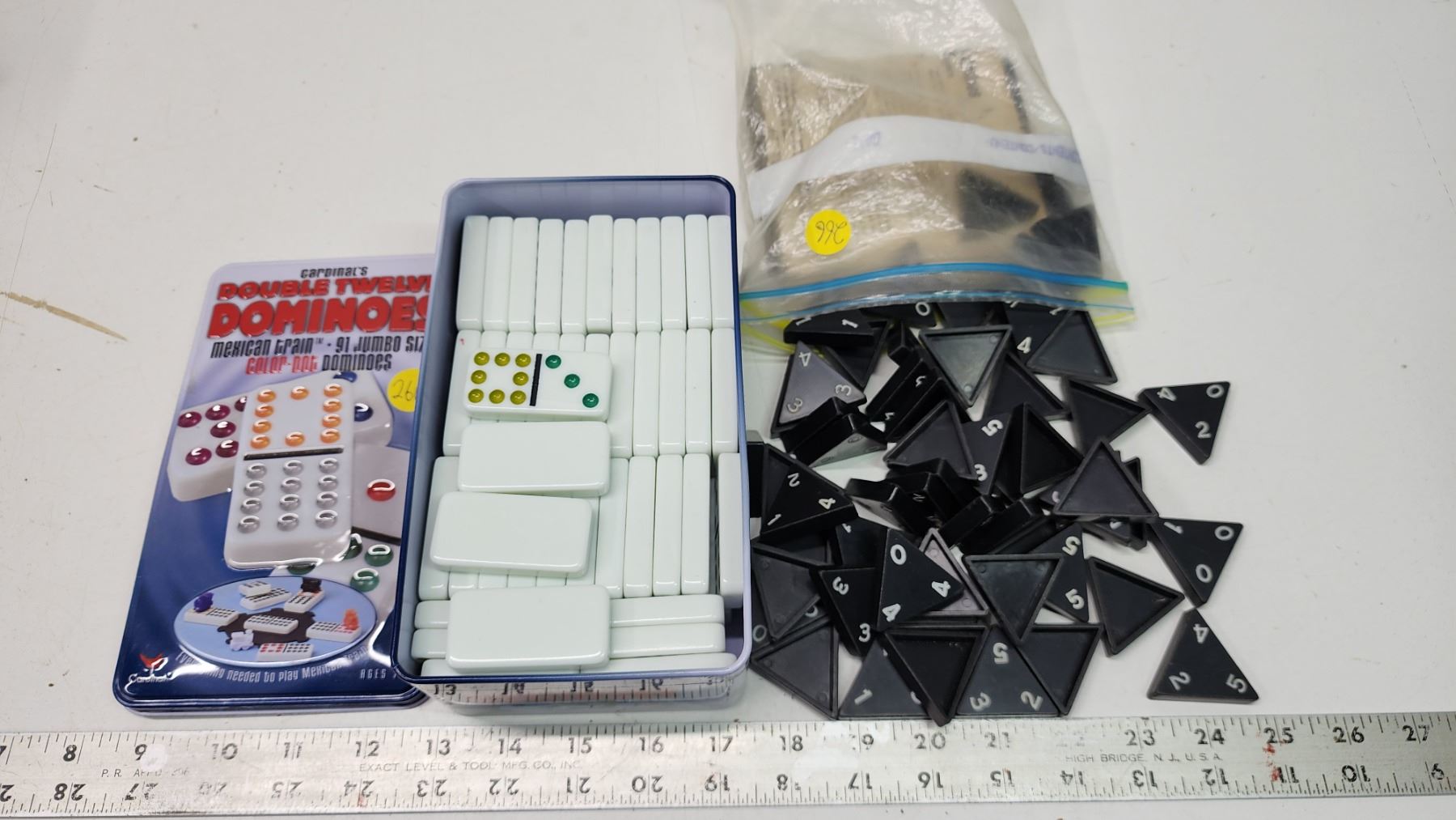 Assorted dominoes games - tin of dominoes & Tri-ominoes