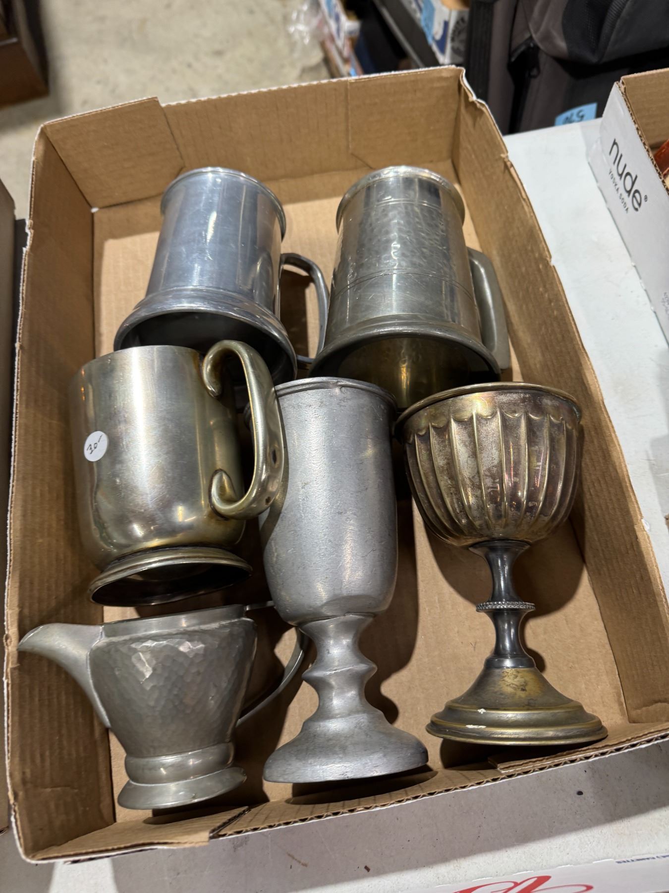 Assorted drinking items, mugs and goblet?