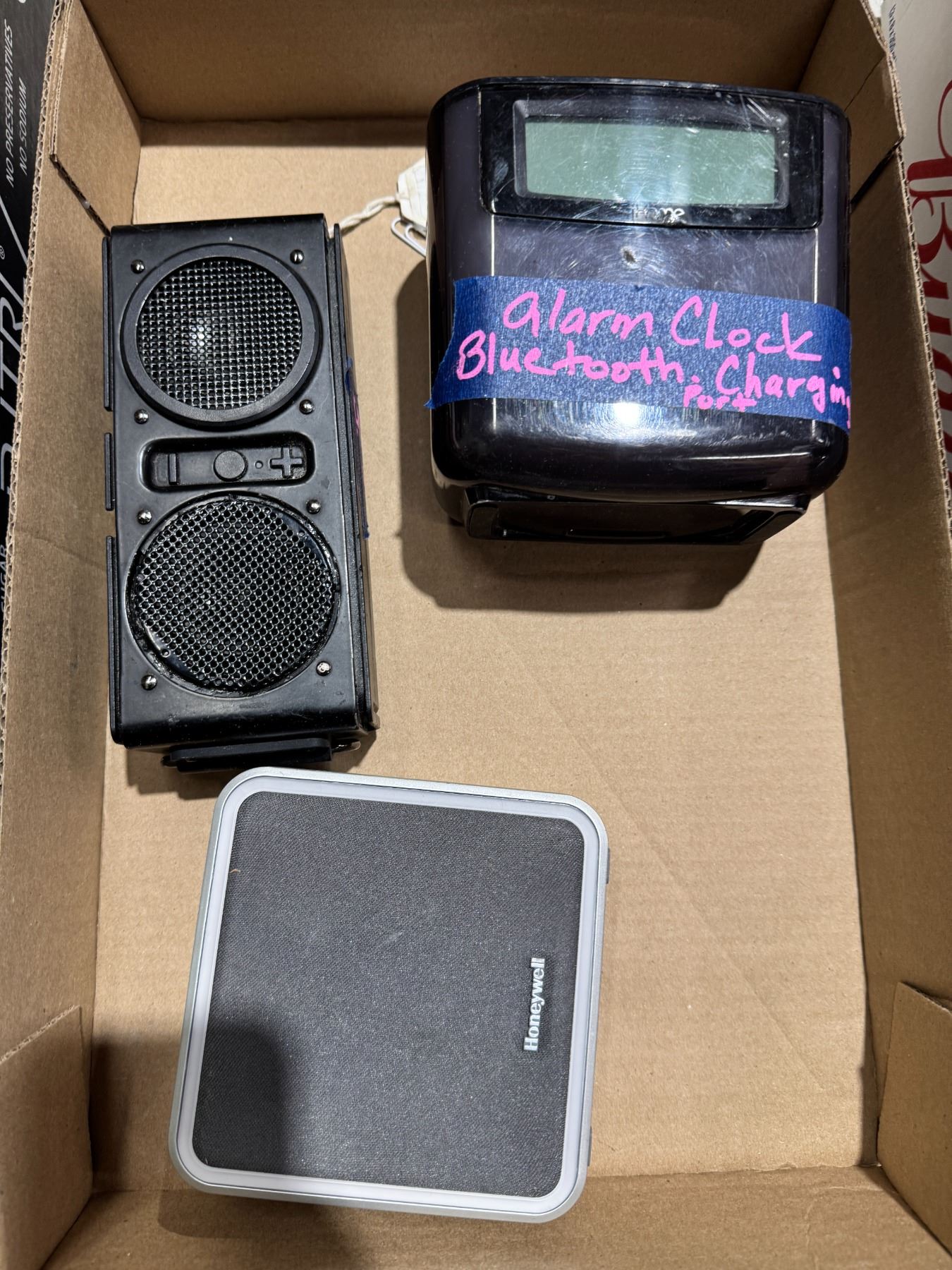 Assorted electronics speakers and alarm clock