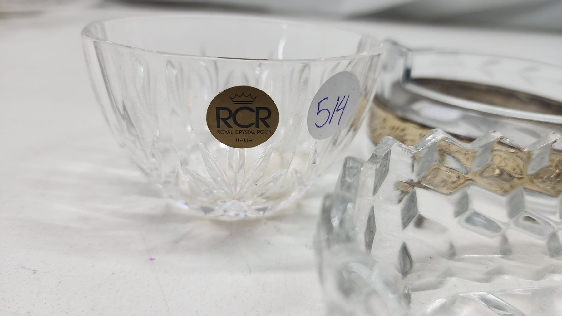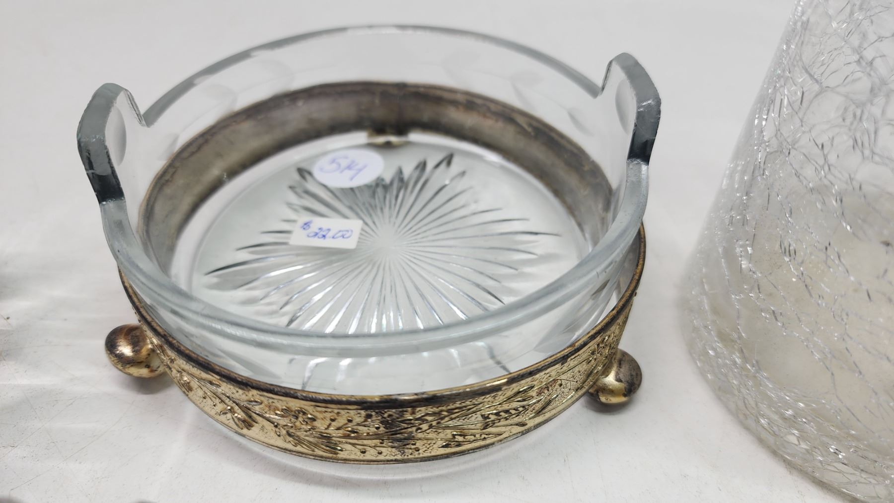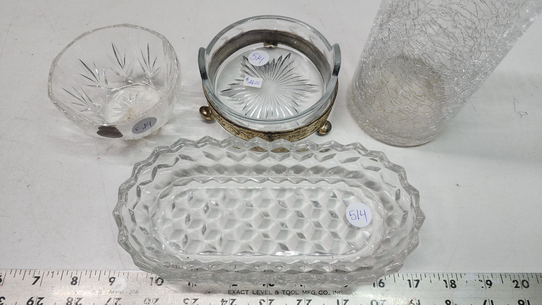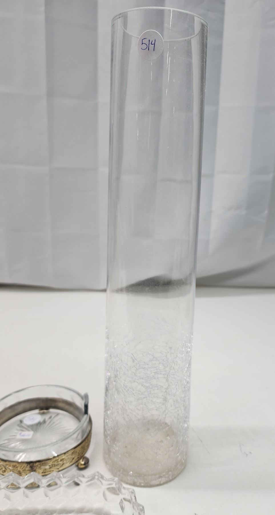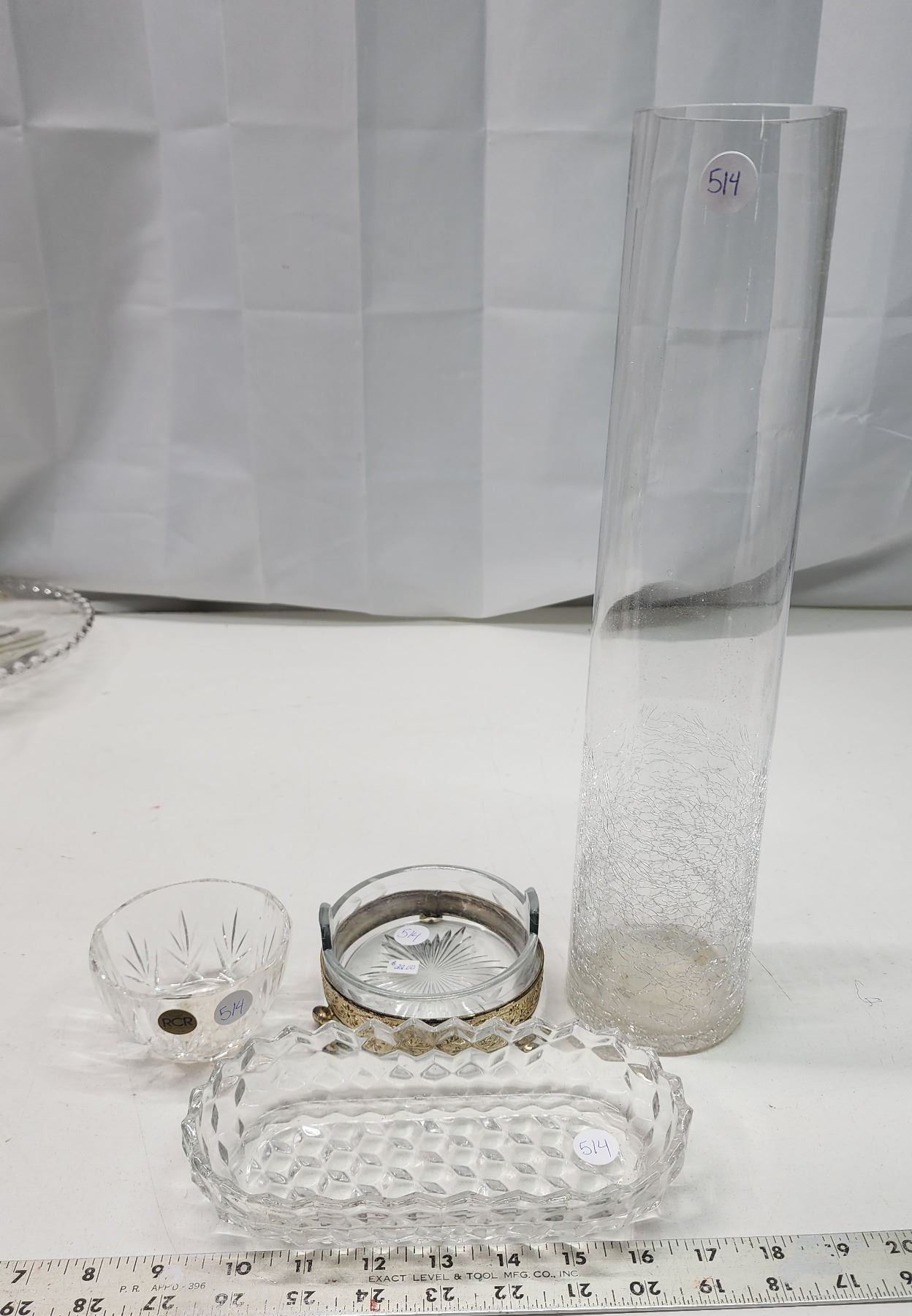 Assorted glassware - ashtray, platter, cup and tall vase - 16"H