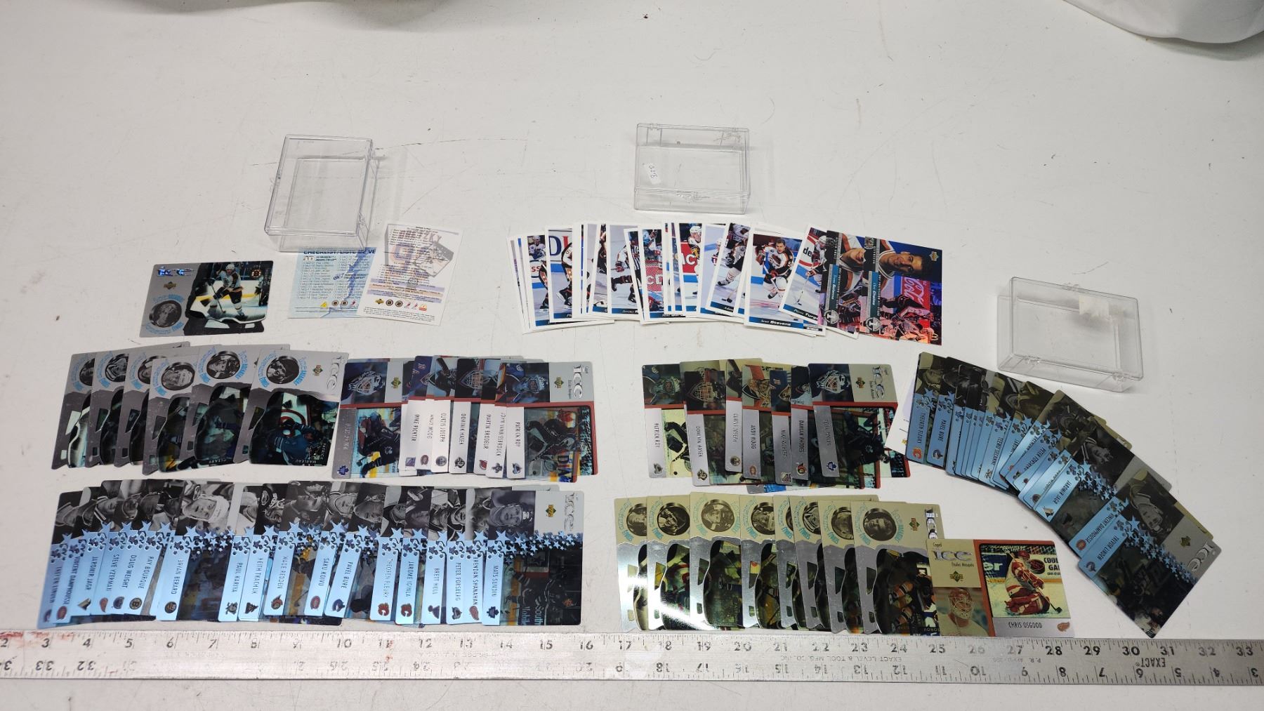 Assorted hockey cards in plastic cases