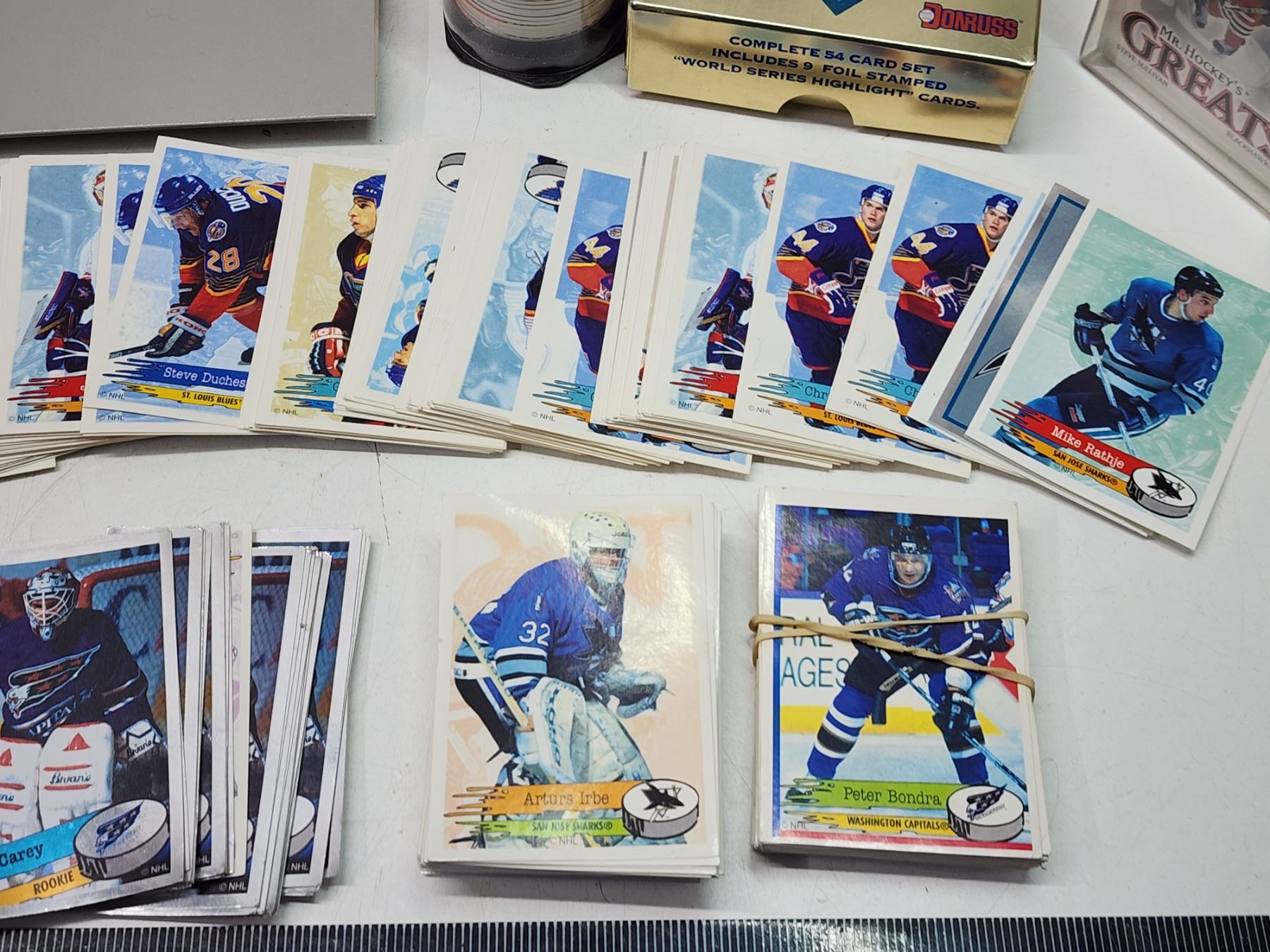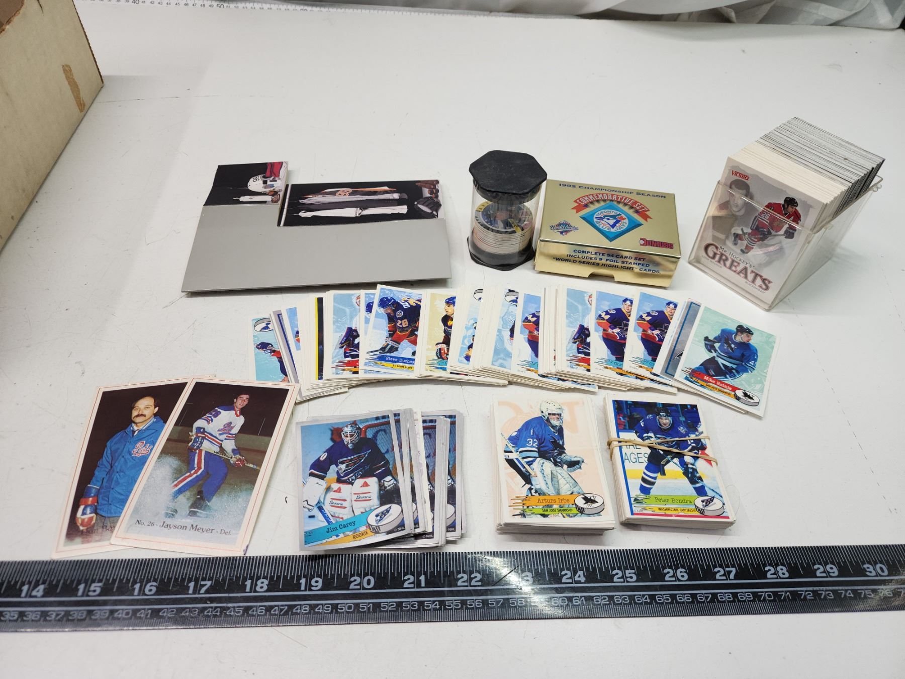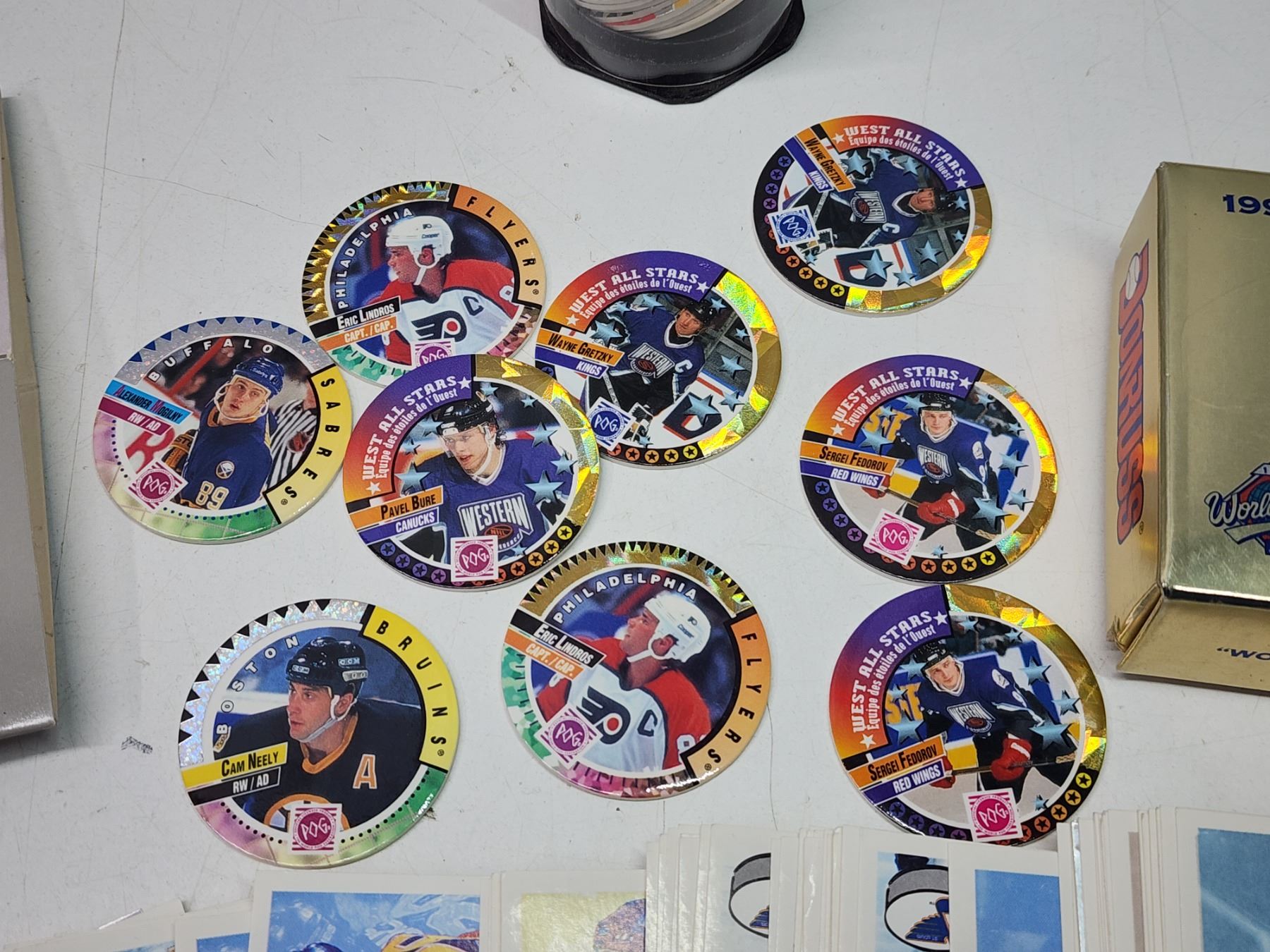 Assorted hockey cards, stickers and round cards, etc.