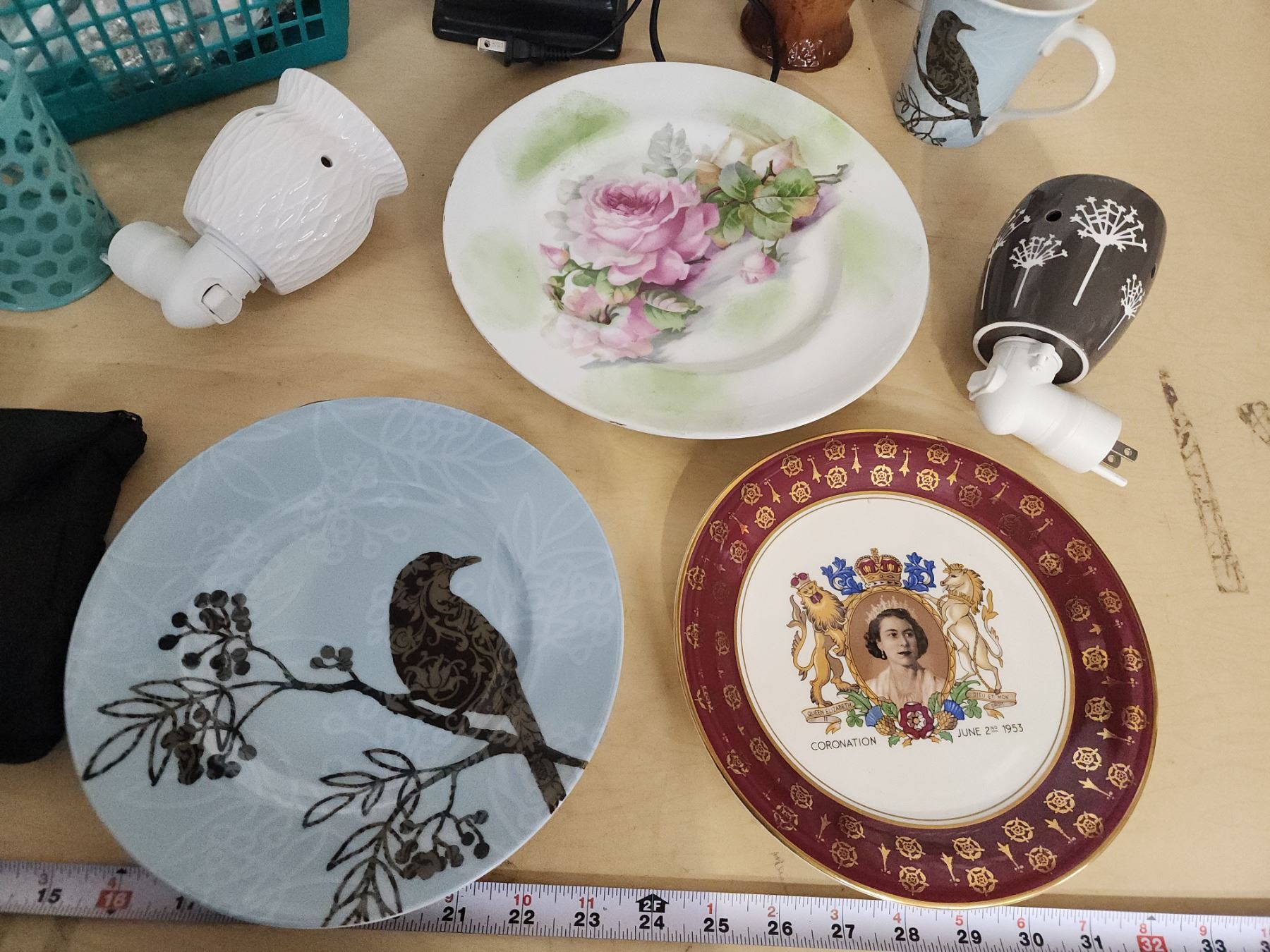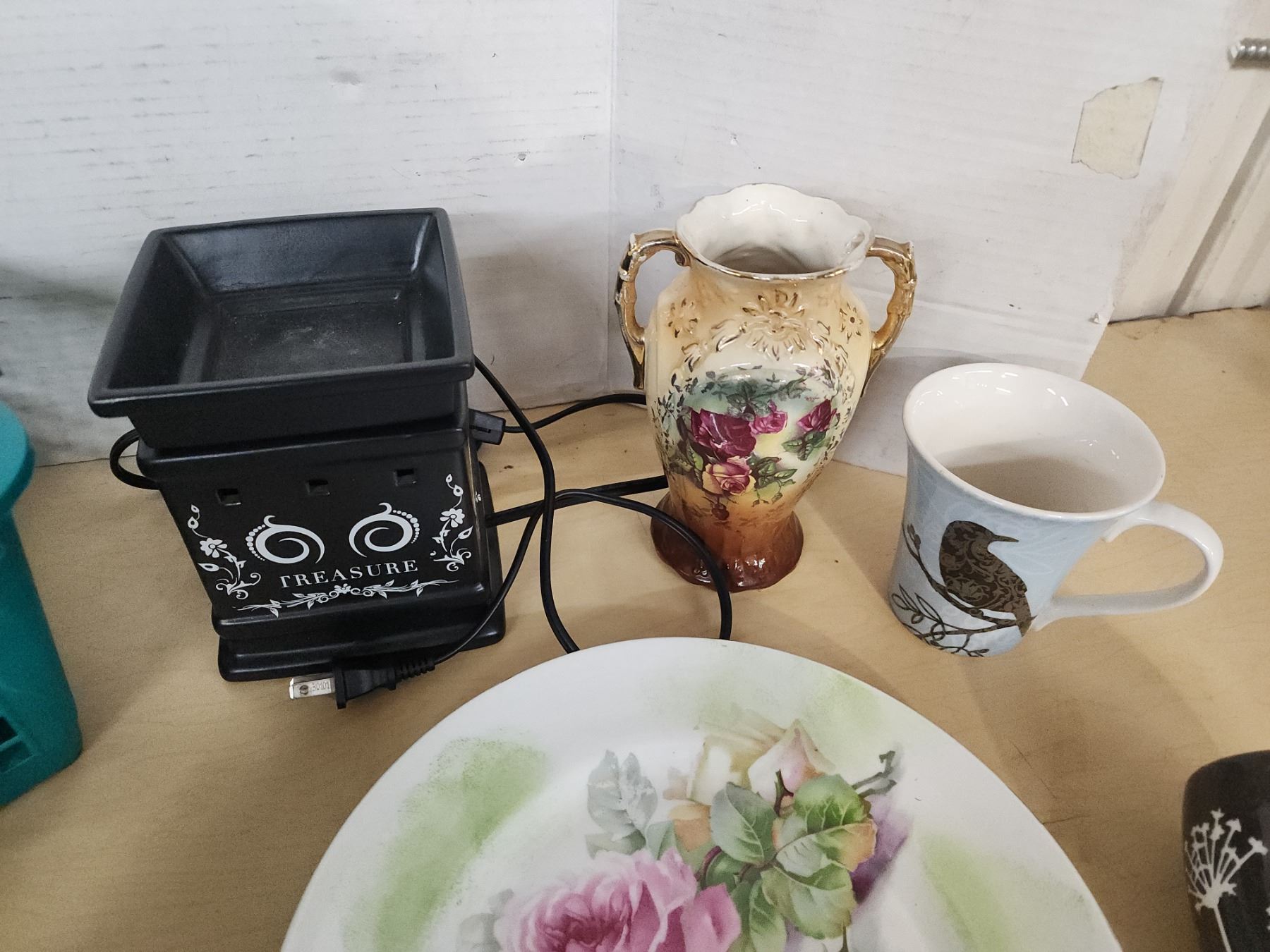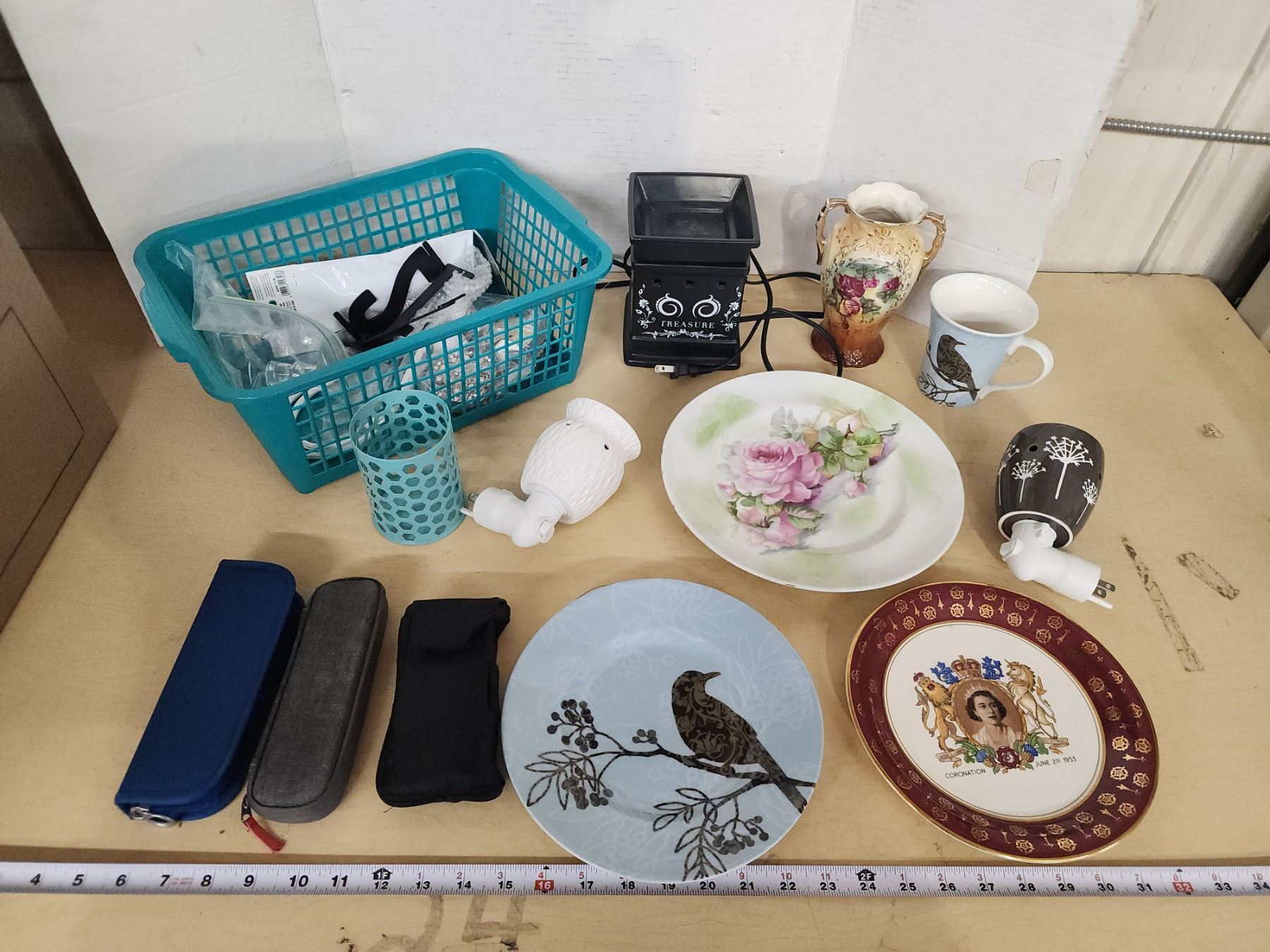 Assorted household items - Diabetic tester/equipment, Scentsy items, decorative plates, etc.