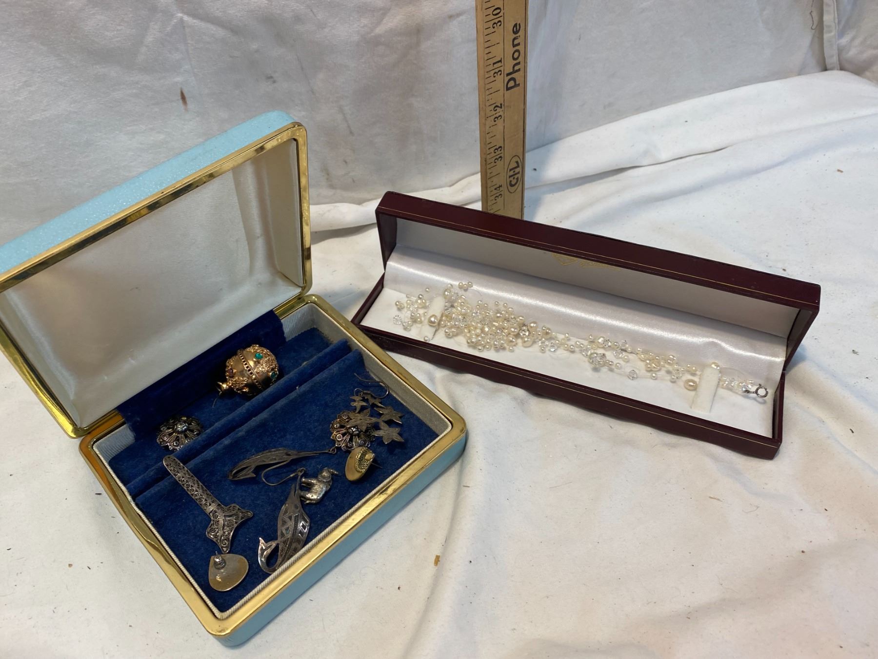 Assorted jewelry box and contents