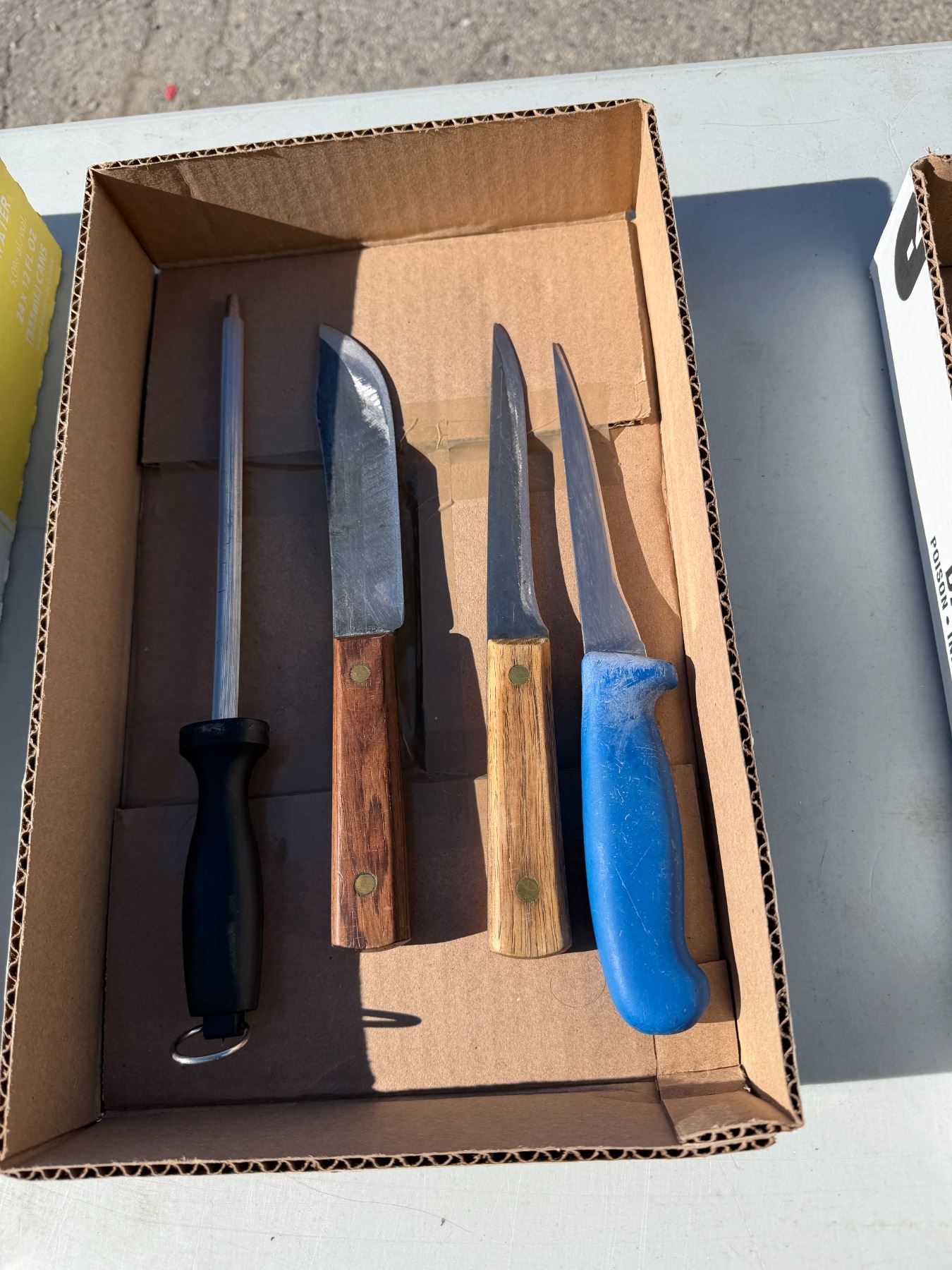 Assorted knives and sharpener