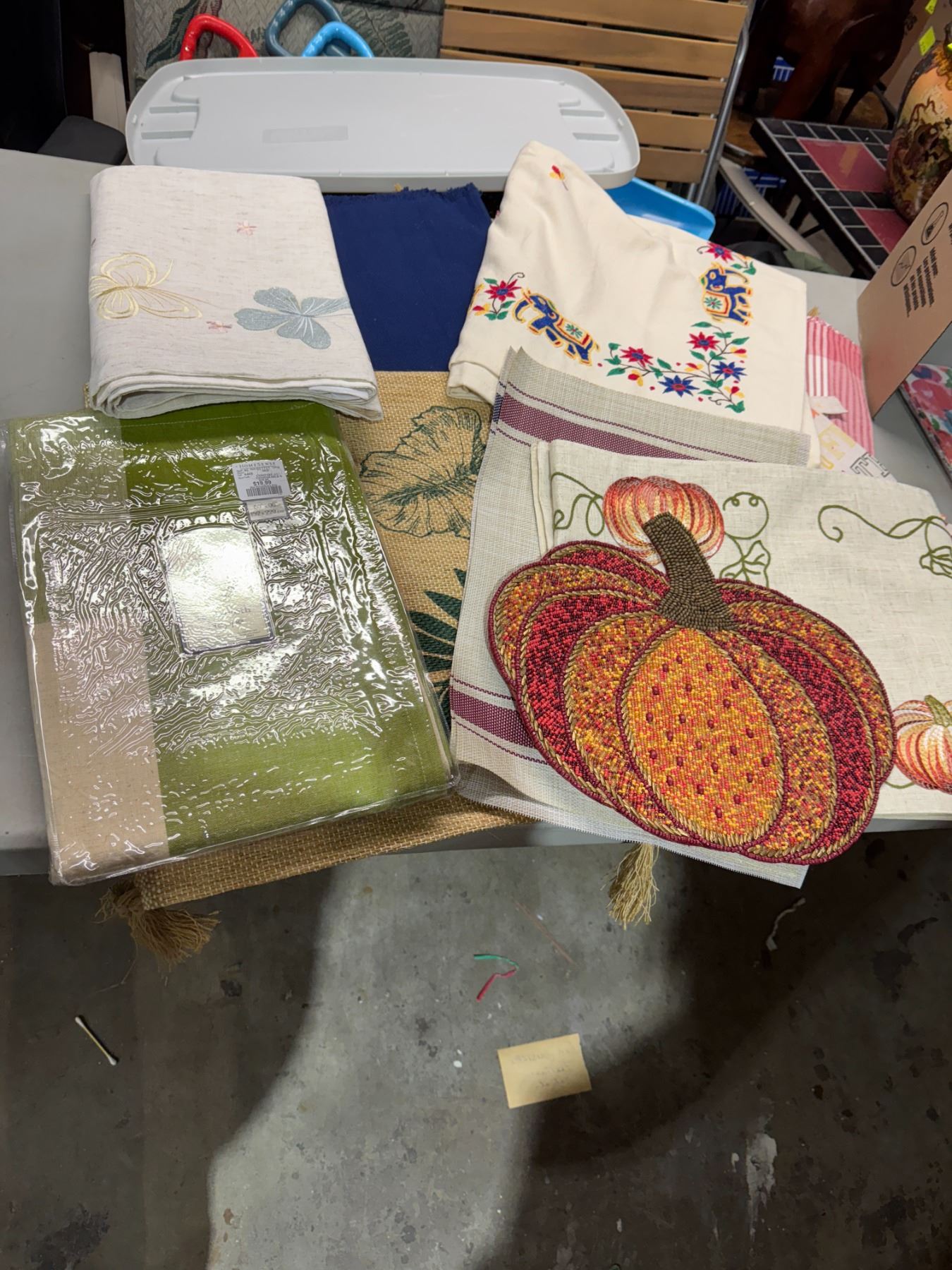 Assorted linens, butterfly elephant pumpkins