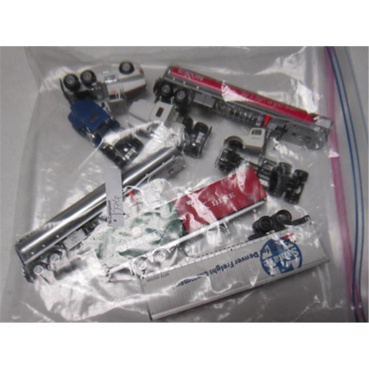 Assorted lot tractor trailers and tanker trucks- Santa Fe-K-Line Evergreen- Exxon-for train village scene