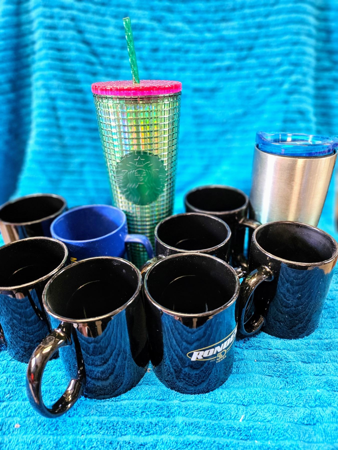 New and used mugs. Mostly new, including new starbucks cup.