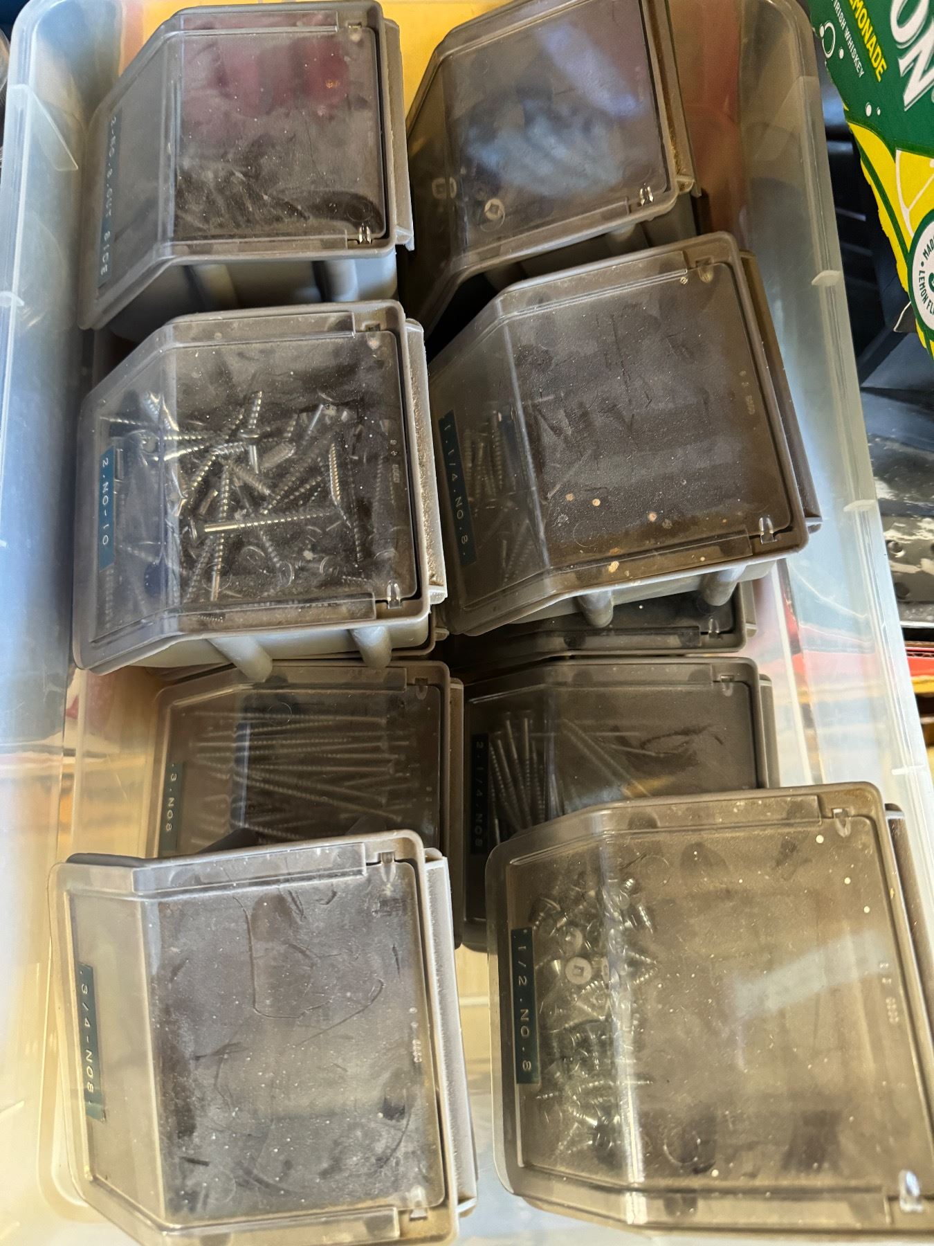 Assorted screws with Containers