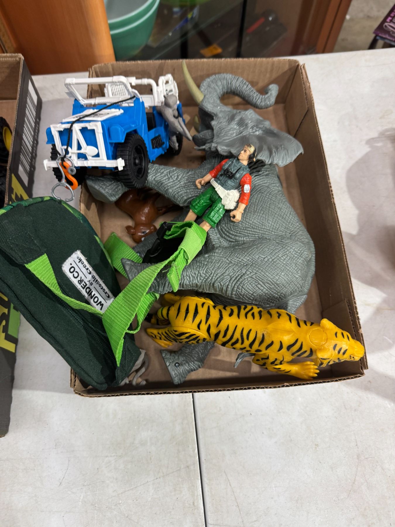 Assorted toys, elephant, etc.