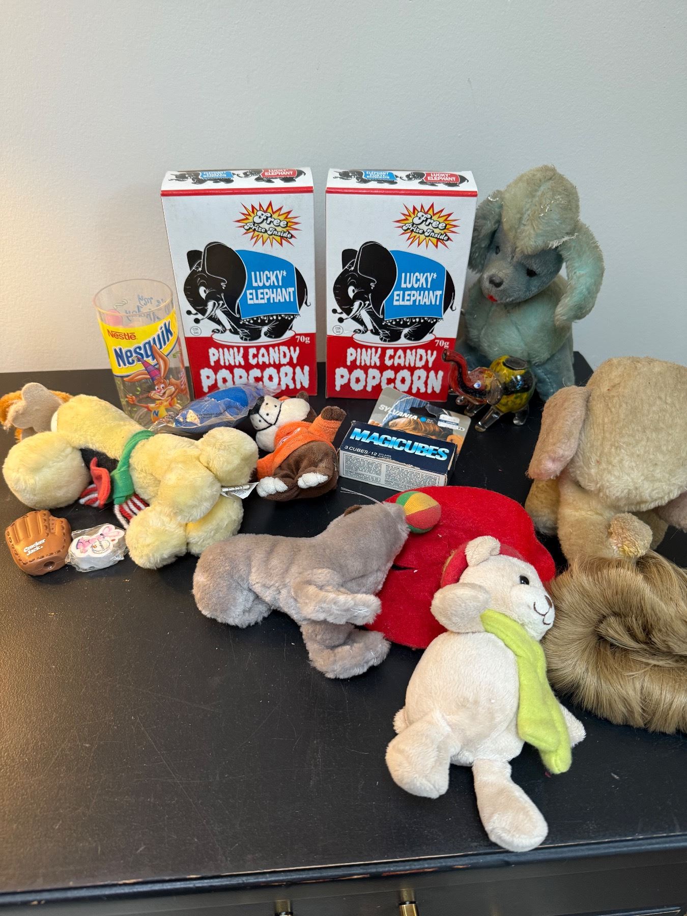 Assorted vintage lot, pink popcorn never opened Nestlé Ness, quick cup stuffy's magic cubes