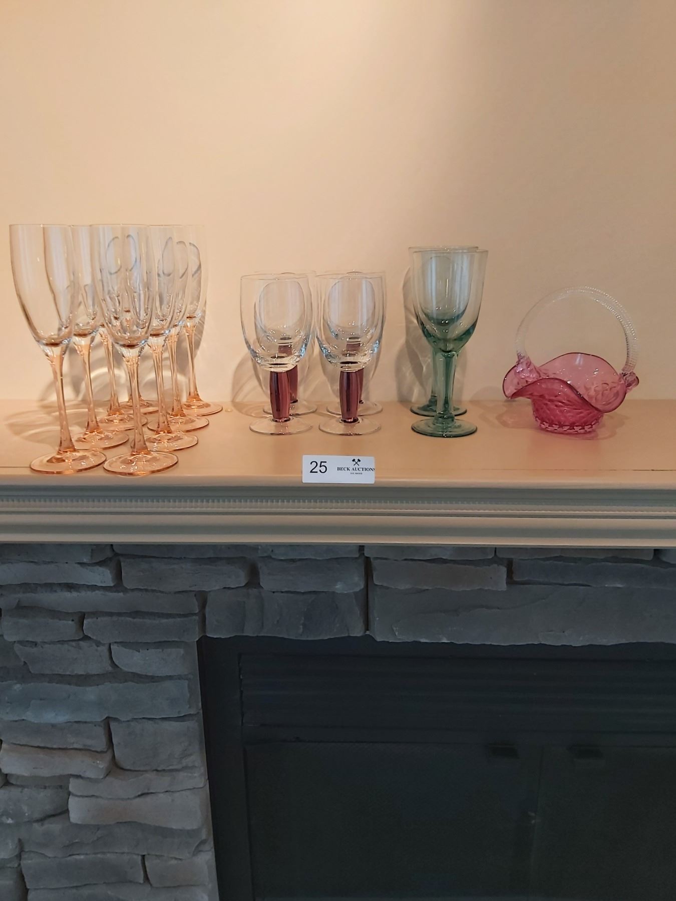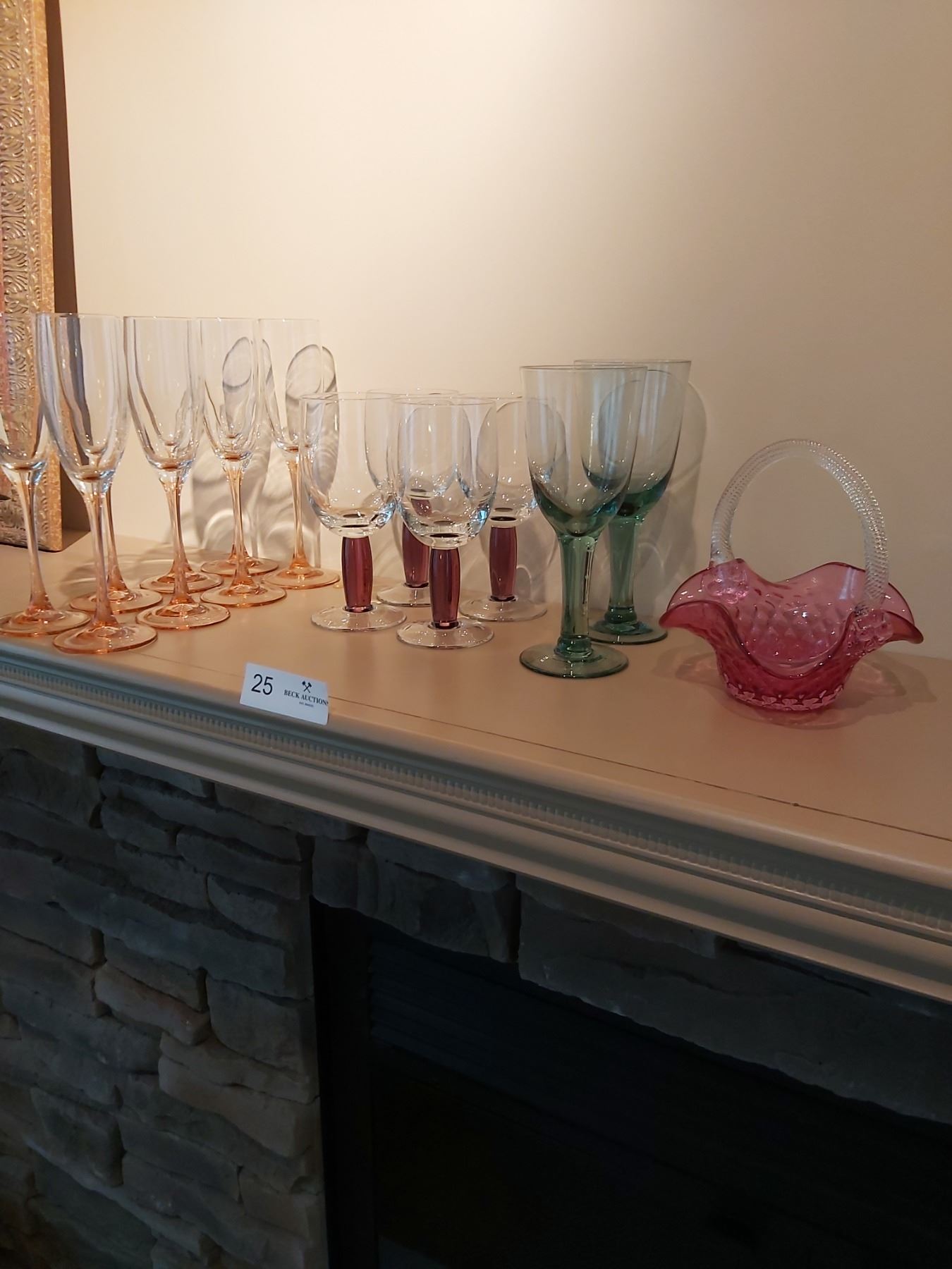 2 green wine glasses