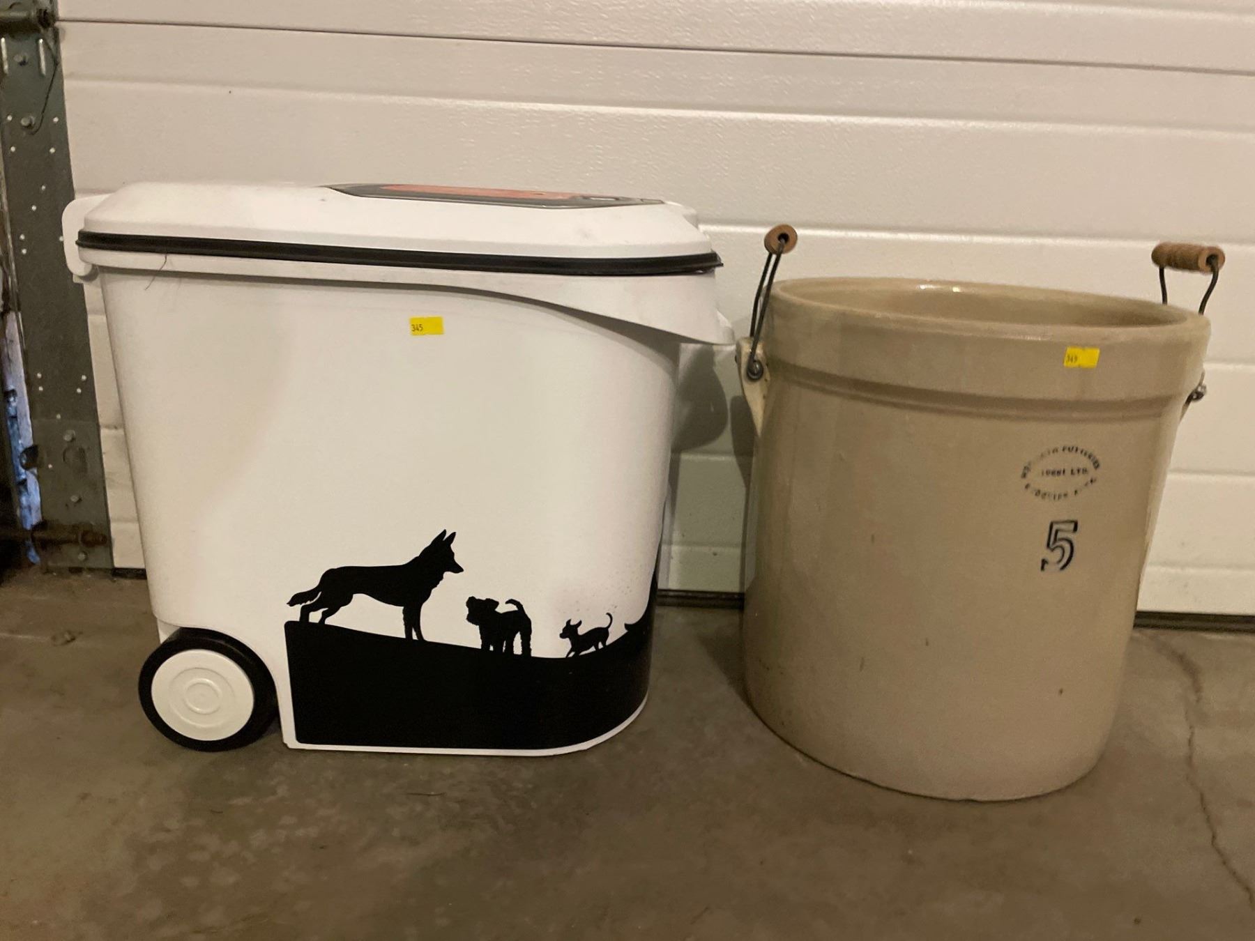 Assortment Of Containers - Animal Food Storage Bin, & Ceramic 5 Gallon Canister With Handles