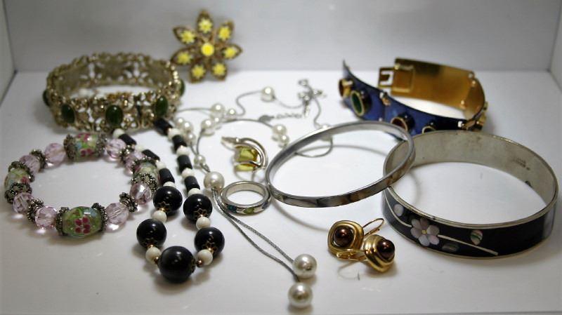 Estate Collection Of Costume Jewellery - Includes Bangles / Bracelets, Necklaces, Brooch, Earring, Ring -- Great assortment for any wardrobe!
