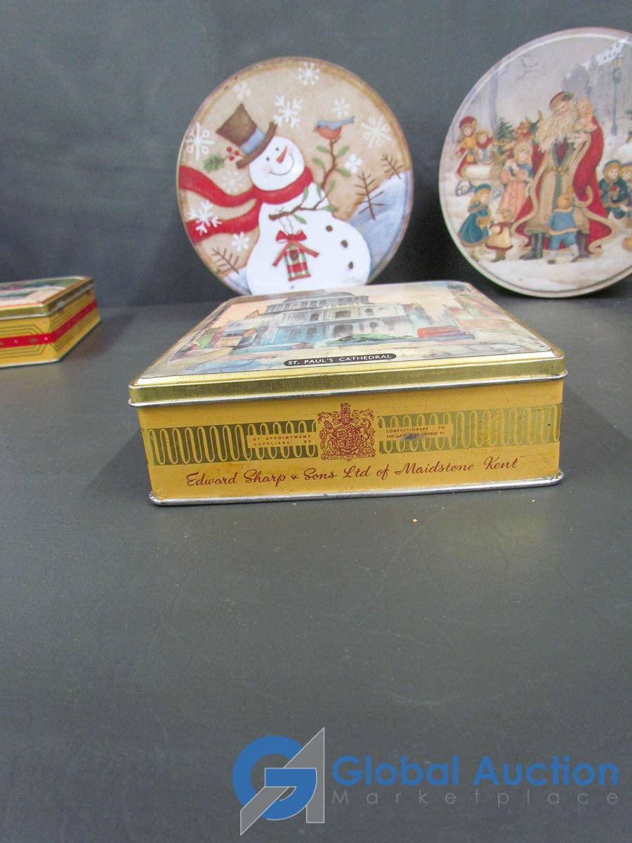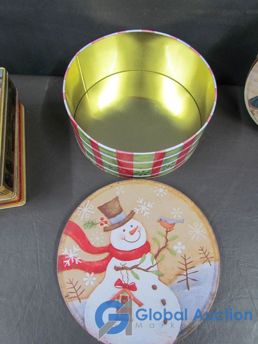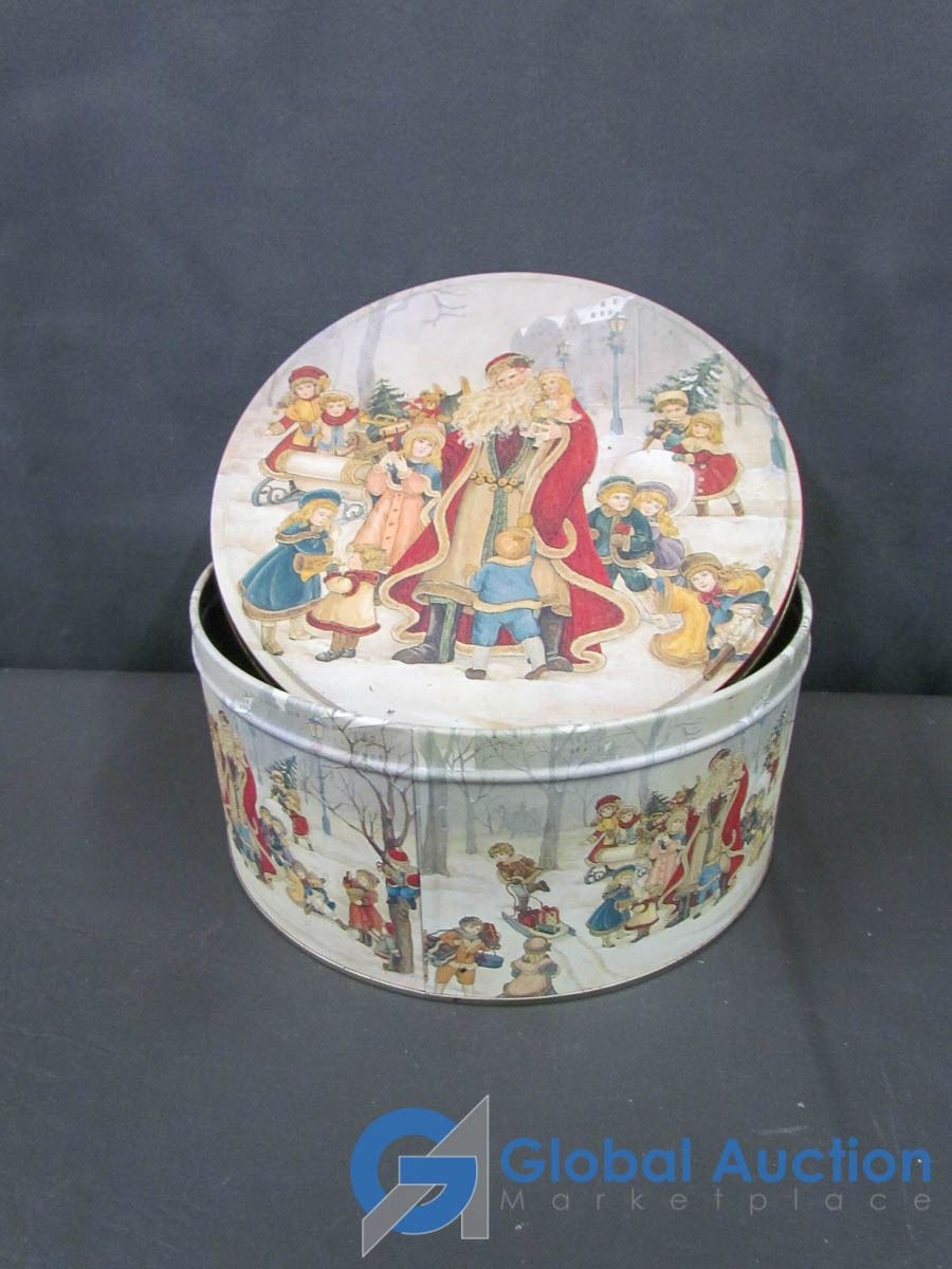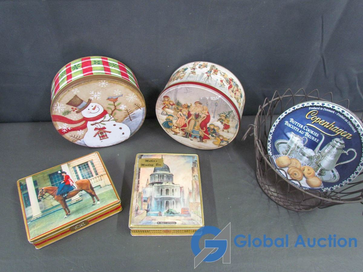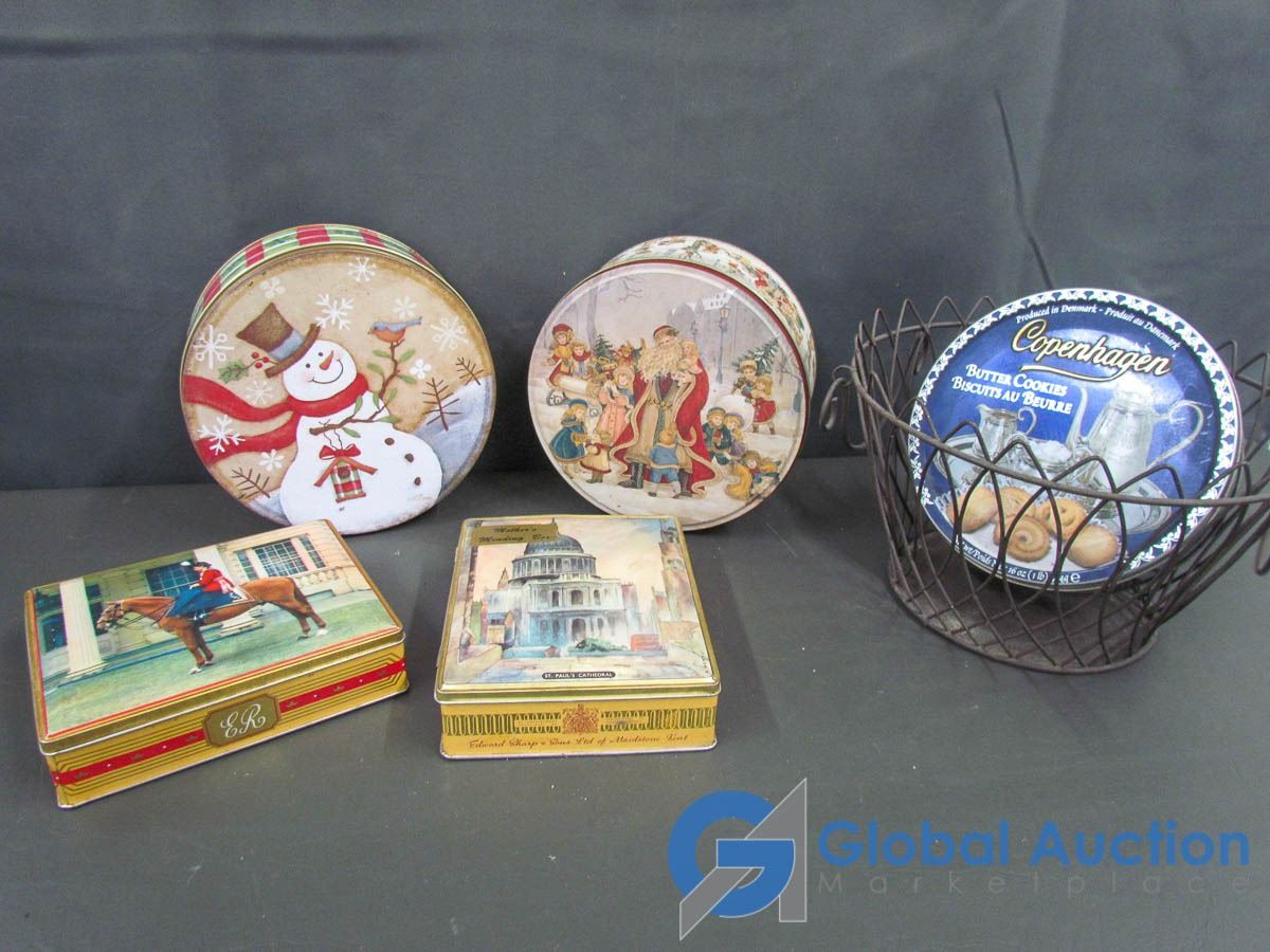 Assortment Of Decorative Box & Round Tins With Wire Basket
