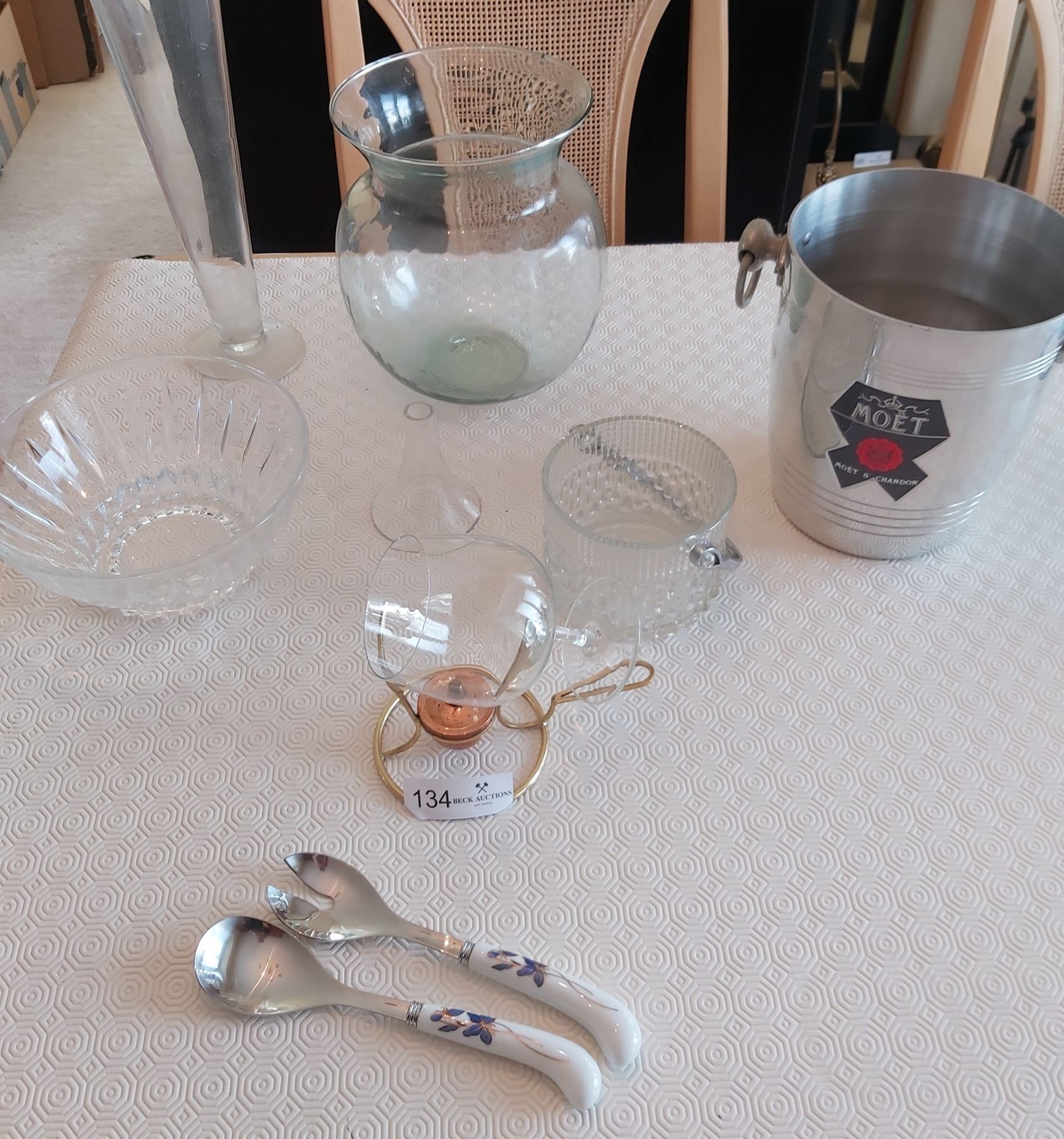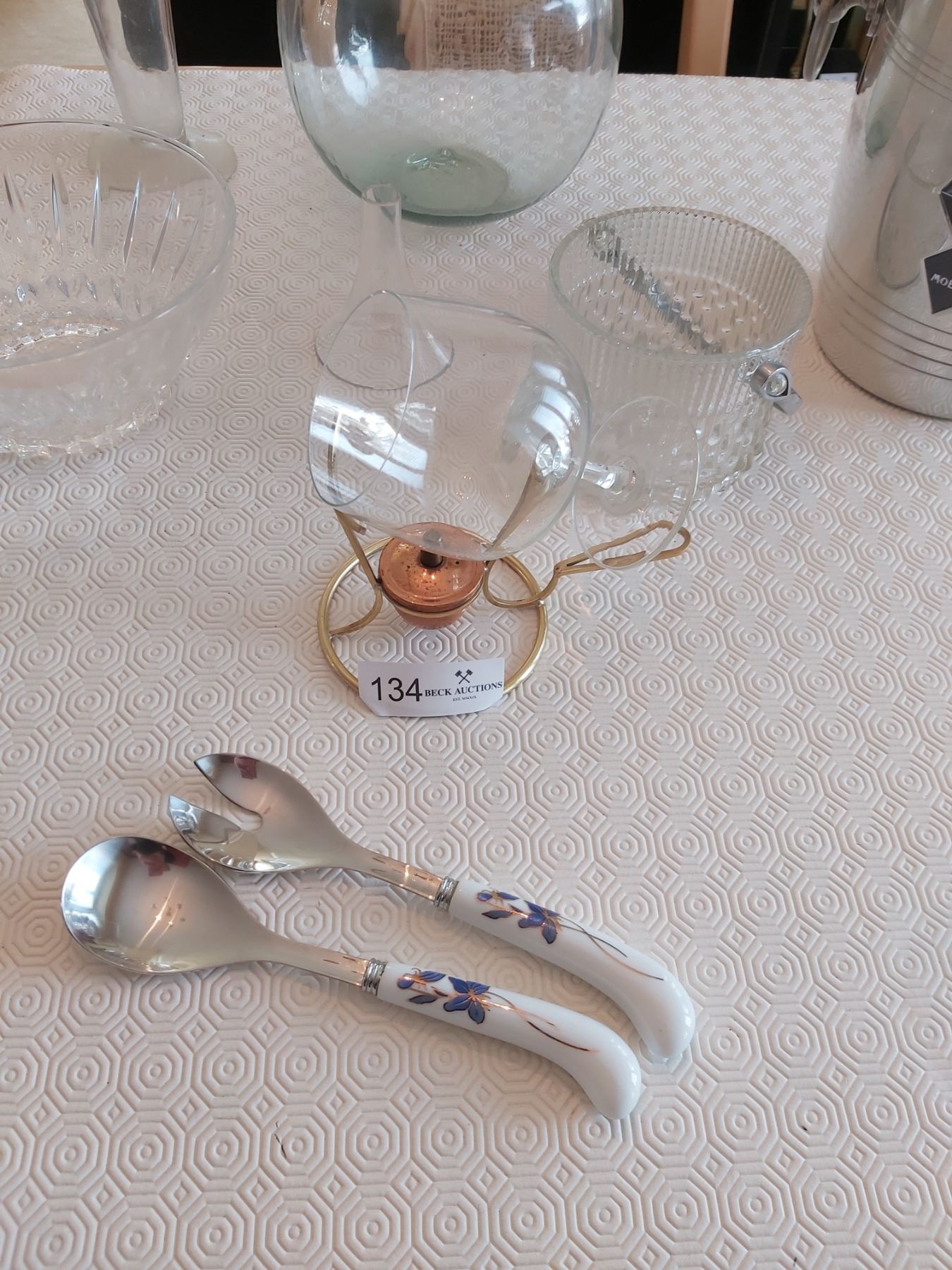 koniak warmer, glass bowl, Vase, Serving spoons, ice bucket, & more.