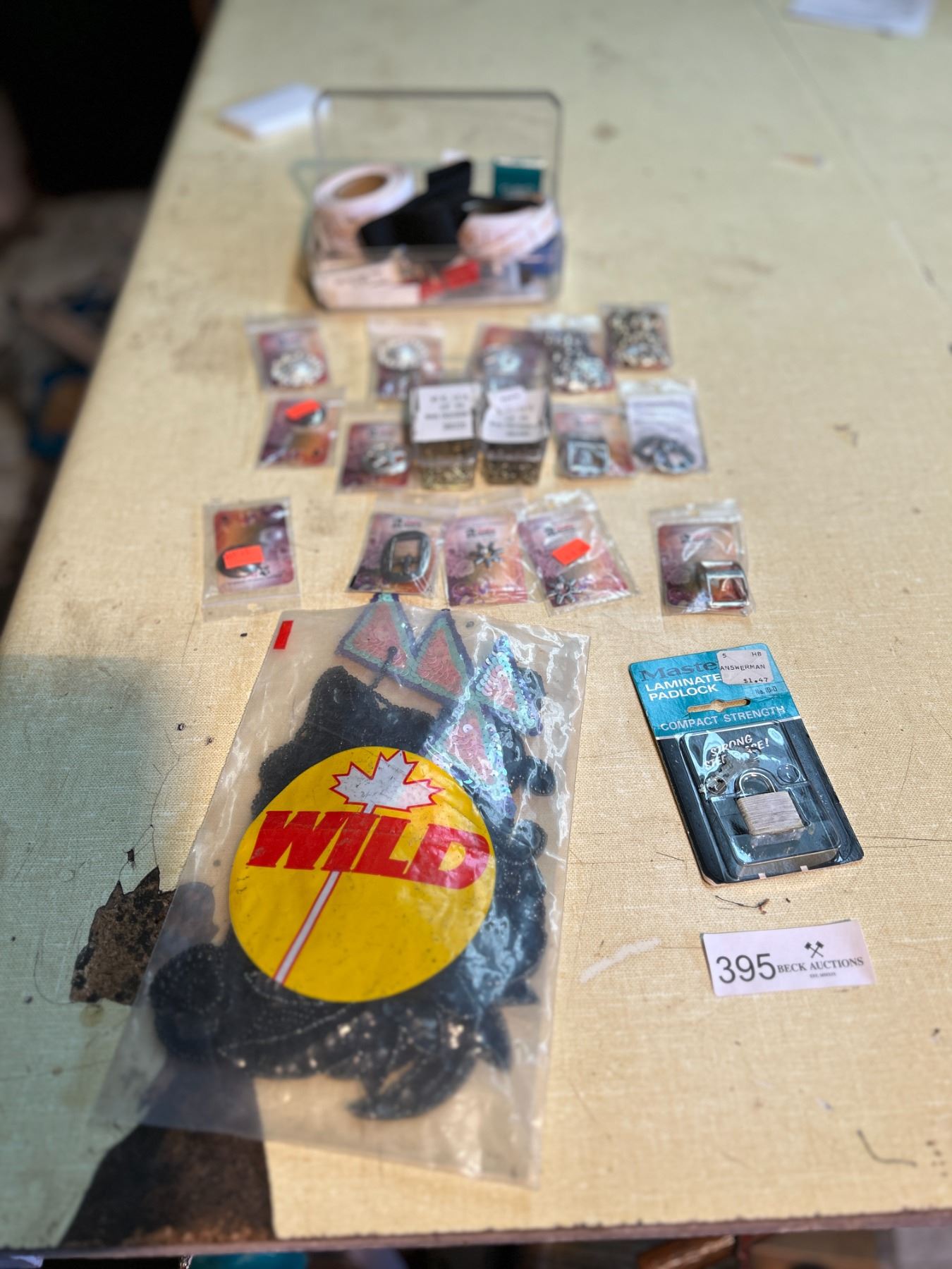 Assortment Of Metal Pins And Buttons For Saddle Making With Sewing Supplies