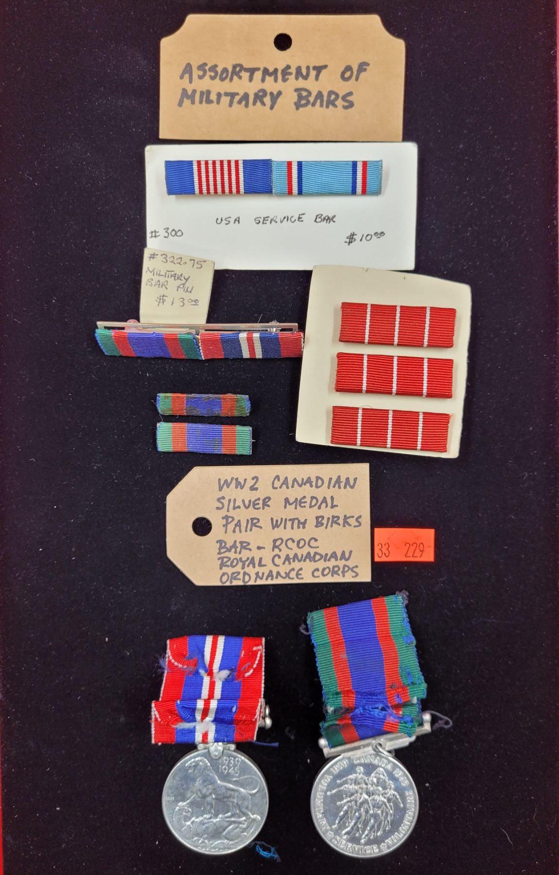 Assortment Of Military Bars & WW2 Canadian Silver Medal Pair w/ Birks, Bar - RCOC