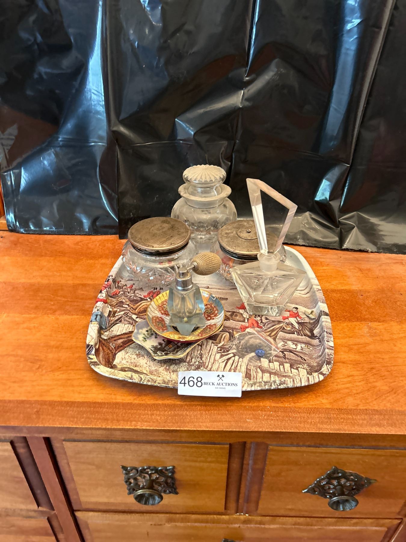 Assortment Of Vintage Perfume Bottles And Glass Jars Includes Tray