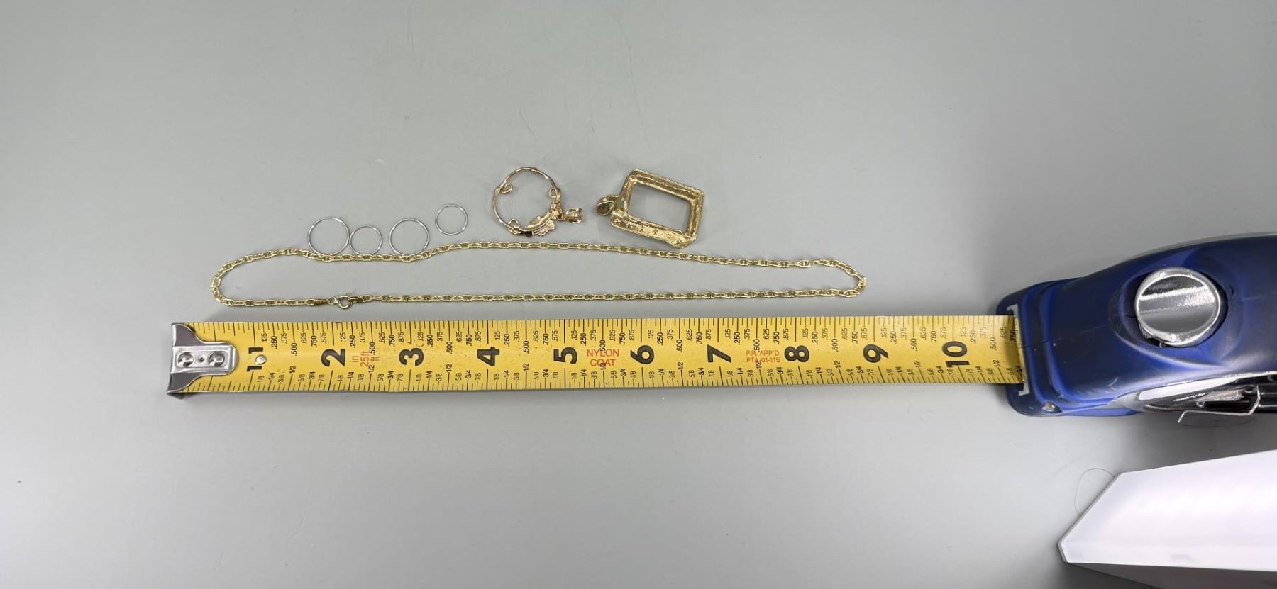 Including nice marine link chain necklace. 9" closed length. 15.23 grams. Lot requires non credit card payment only.