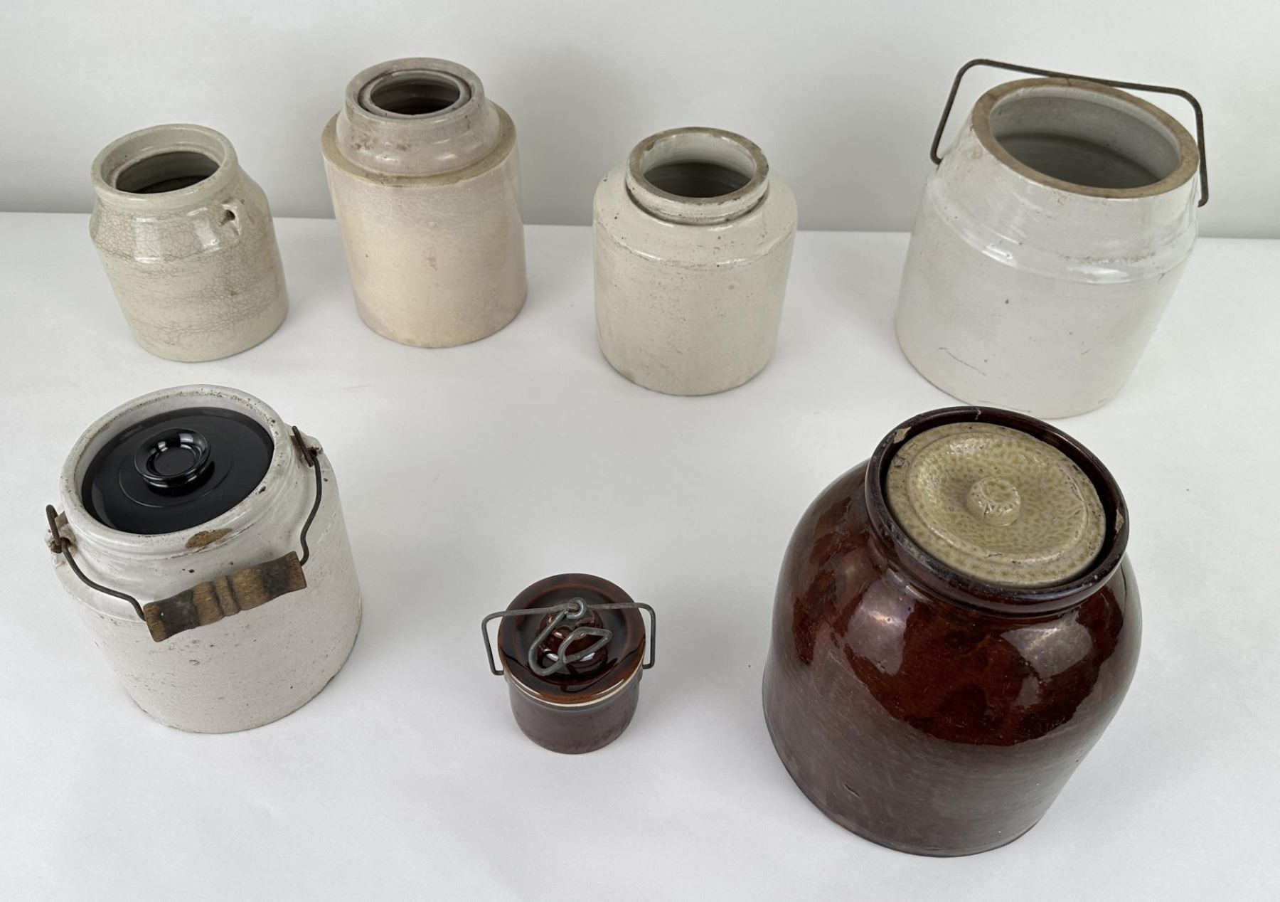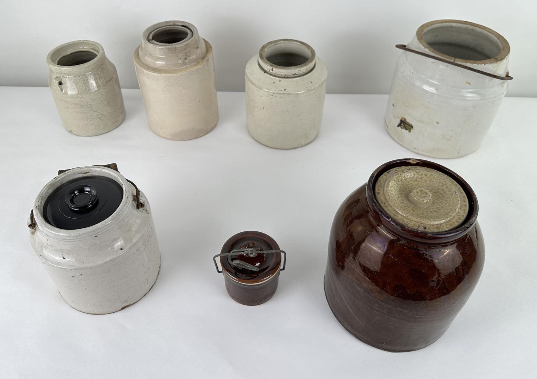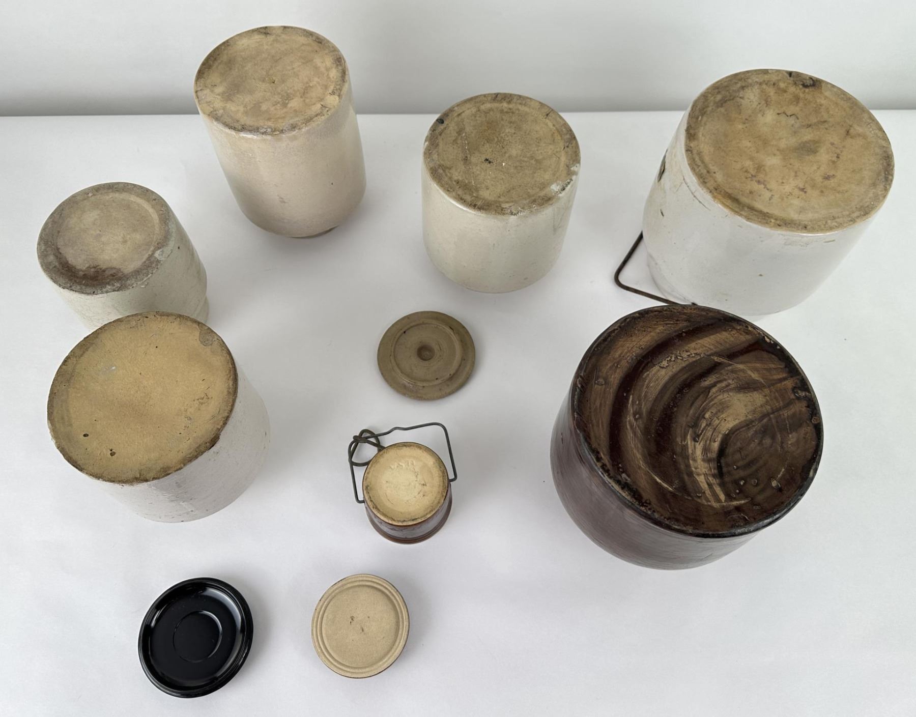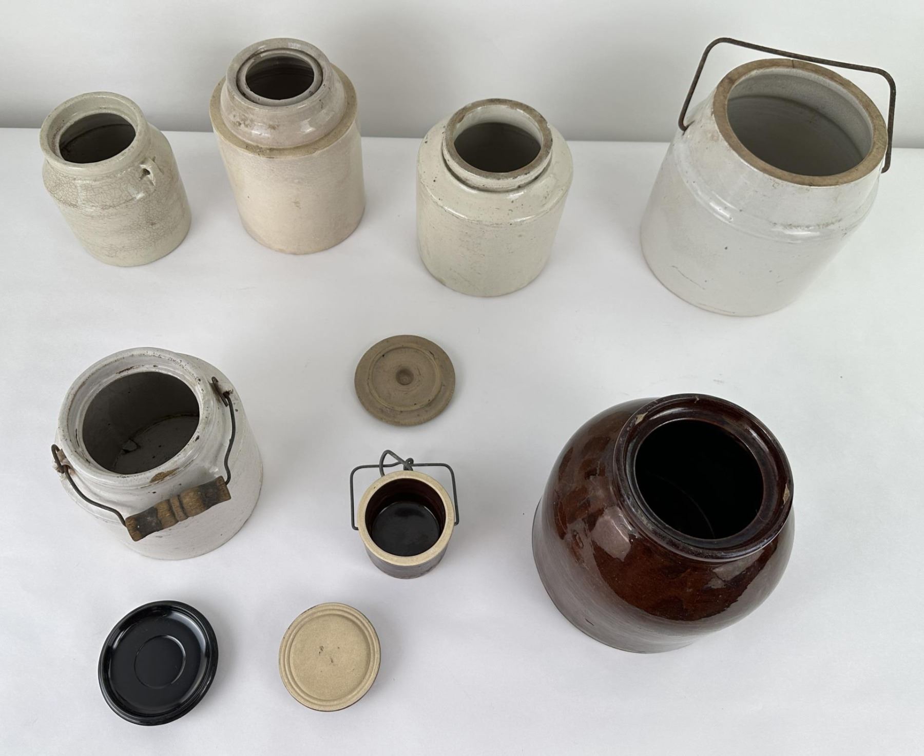 7 jars and 3 lids. Various sizes and makers.