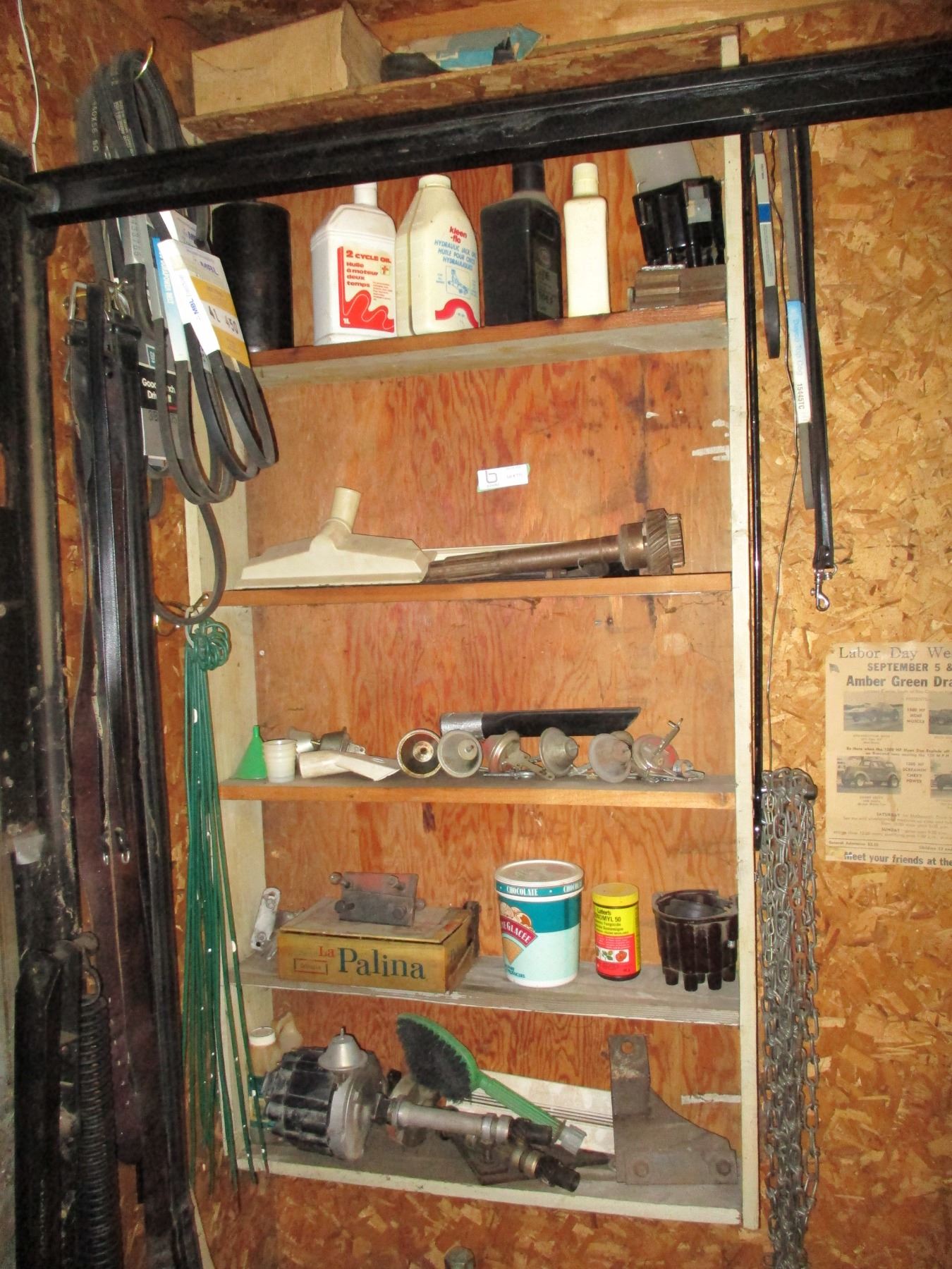 Assortment of Auto Parts, Fan Bels, Wooden Shelf (6 by 28 by 55") and etc.