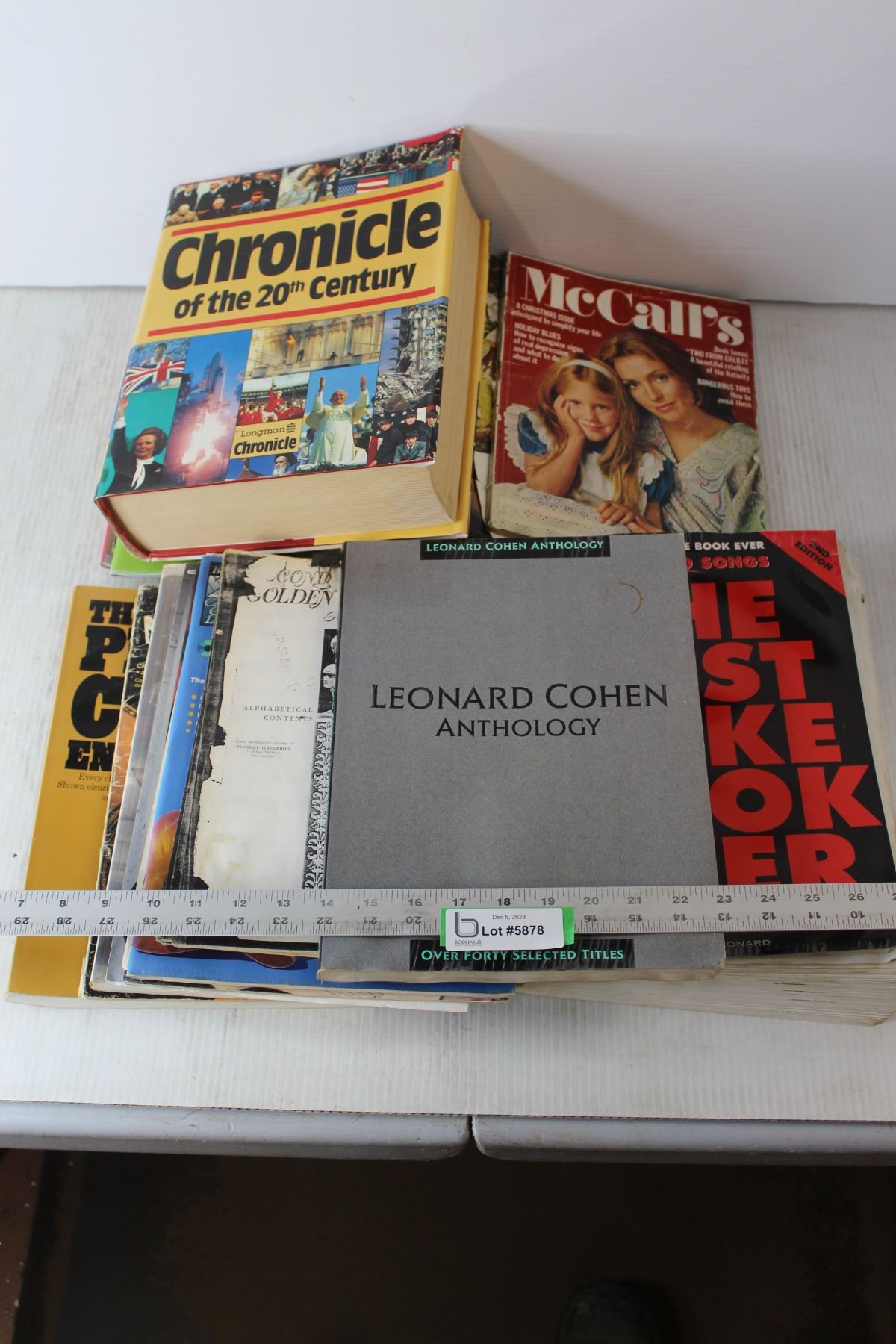 Assortment of Books (Chronicle of the 20th Century, Leonard Cohen, etc.), Assorted Magazines