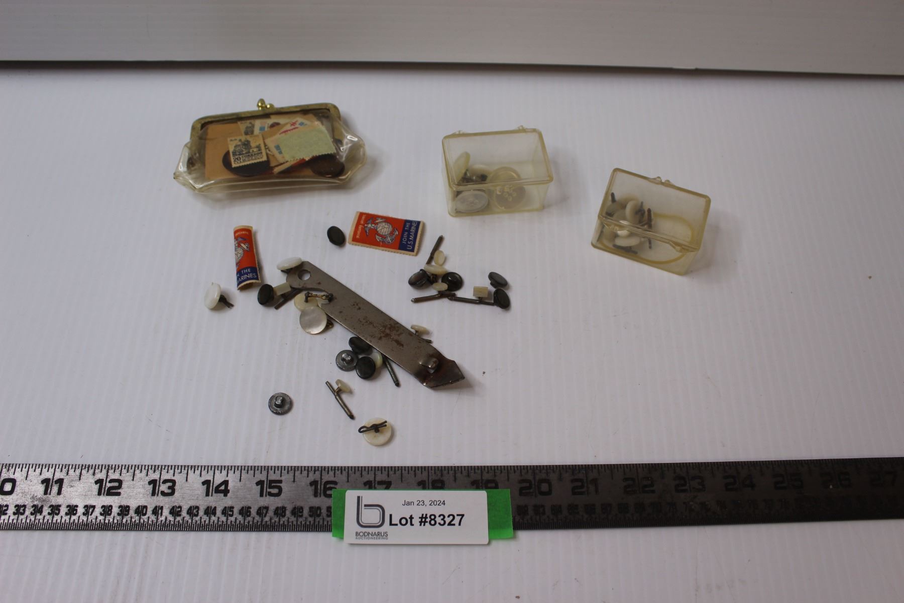 Assortment of Buttons, Stamps, Can/Bottle Opener, etc.