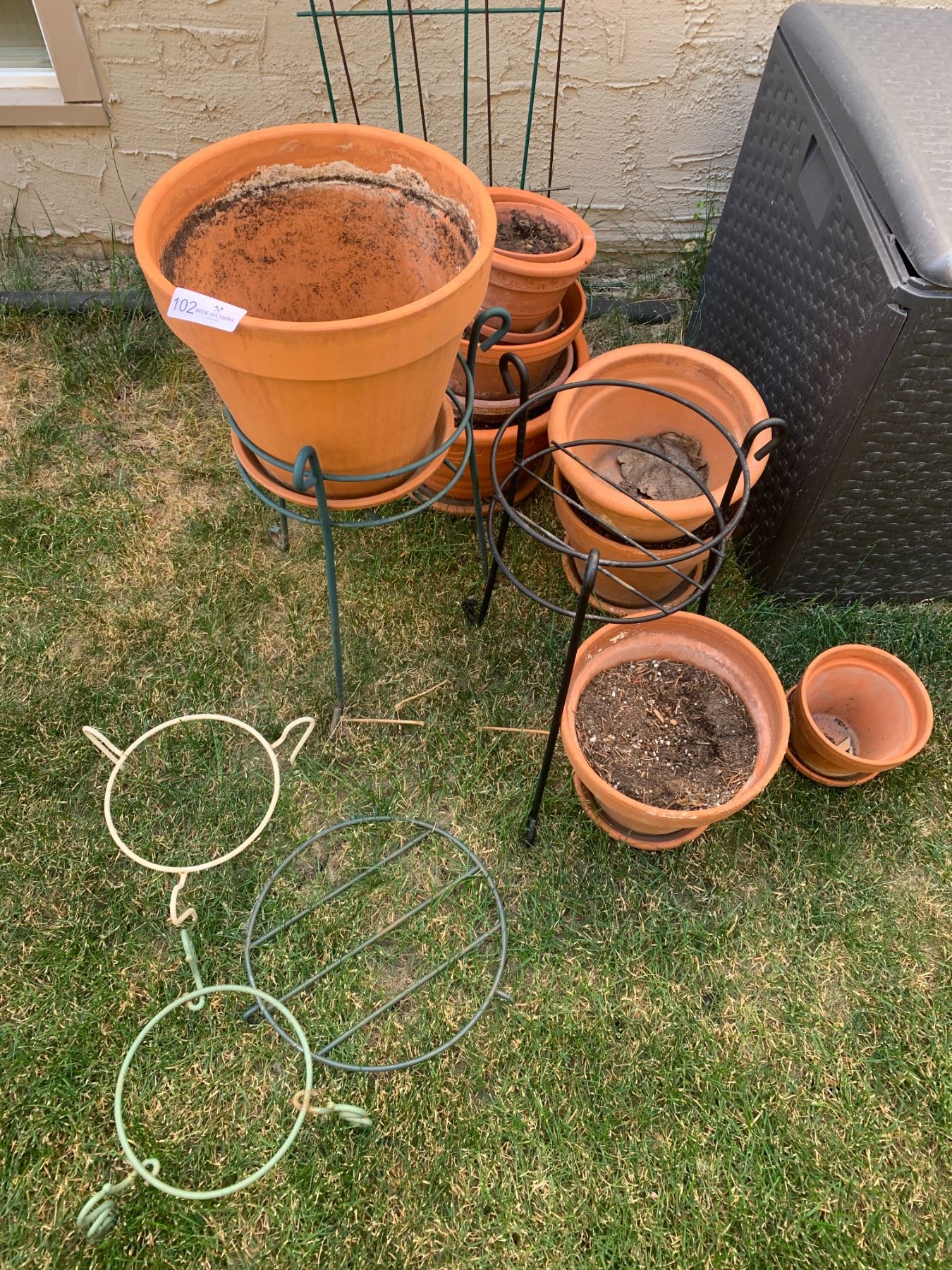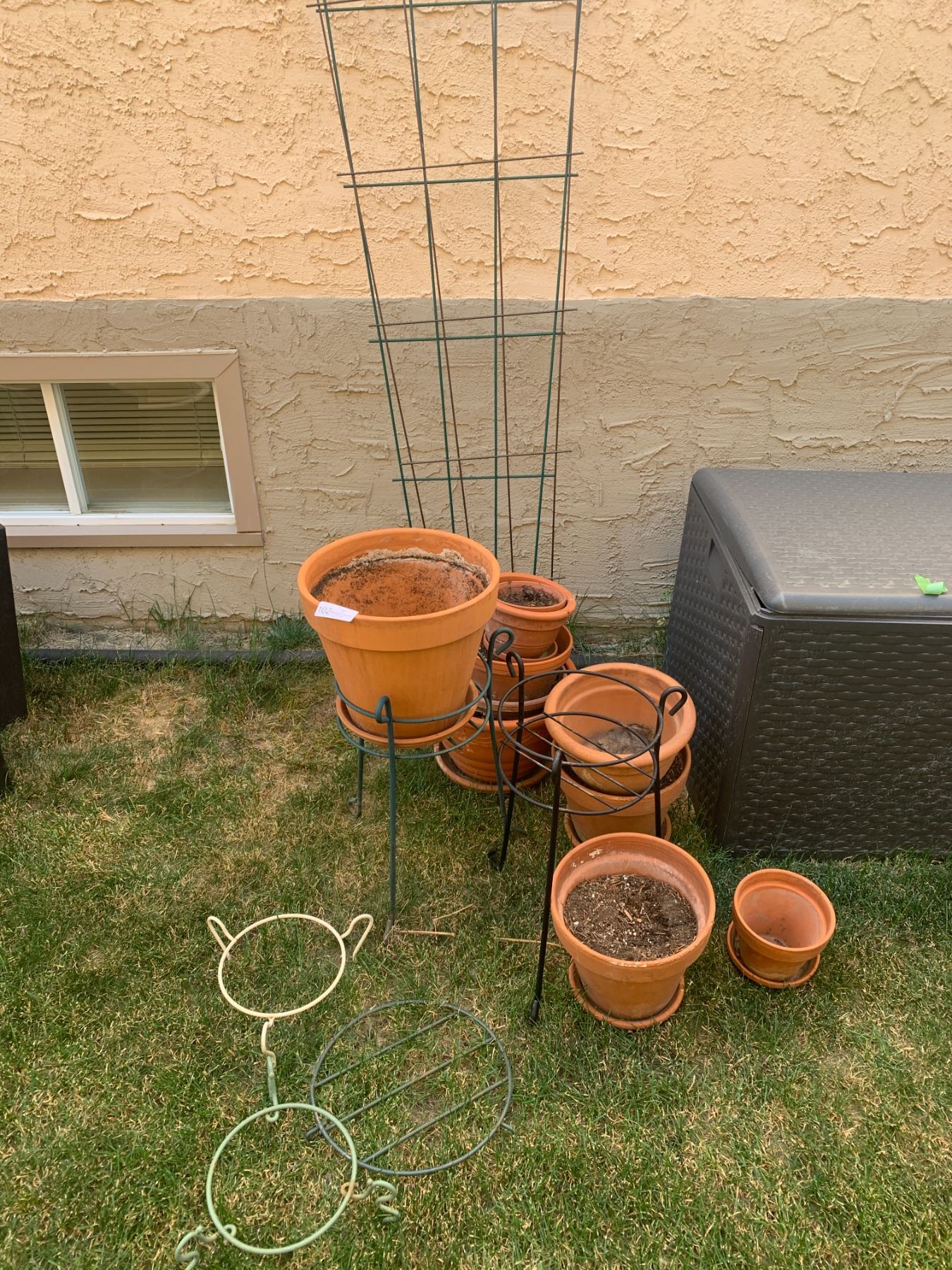 Includes 5 metal stands and 2 metal trellises