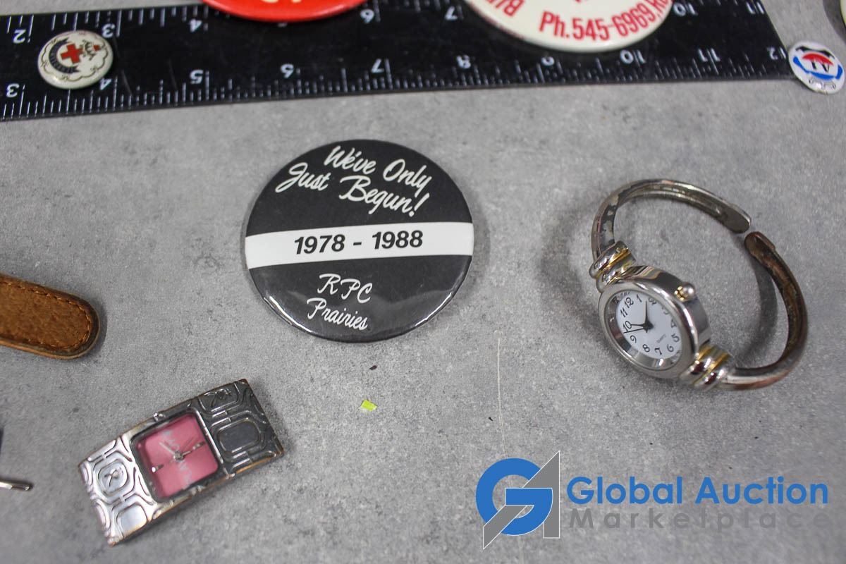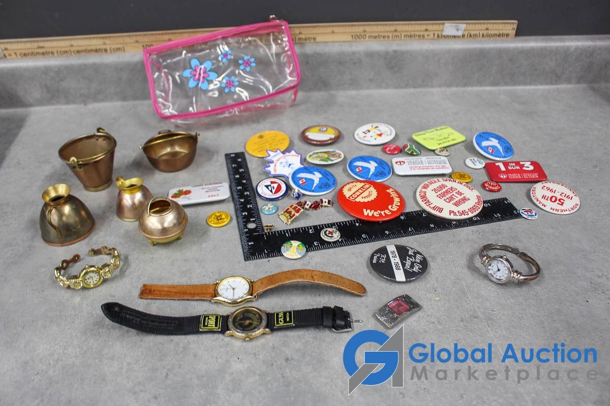 Assortment of Copper Miniatures; Pins & Watches