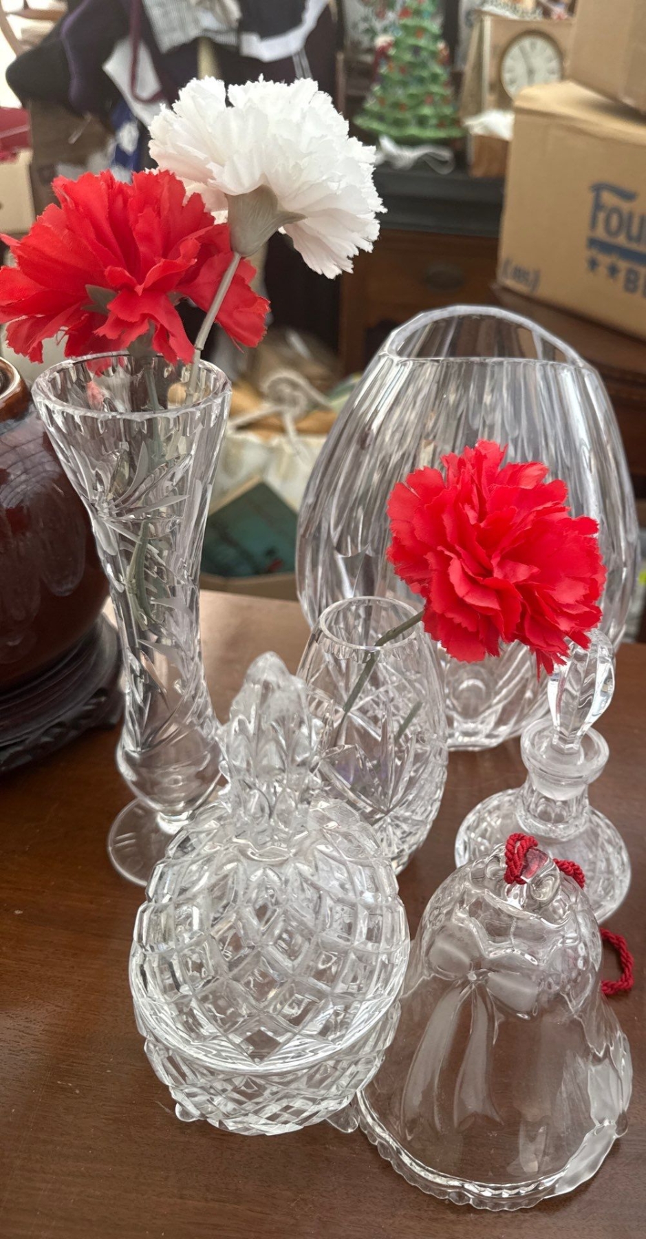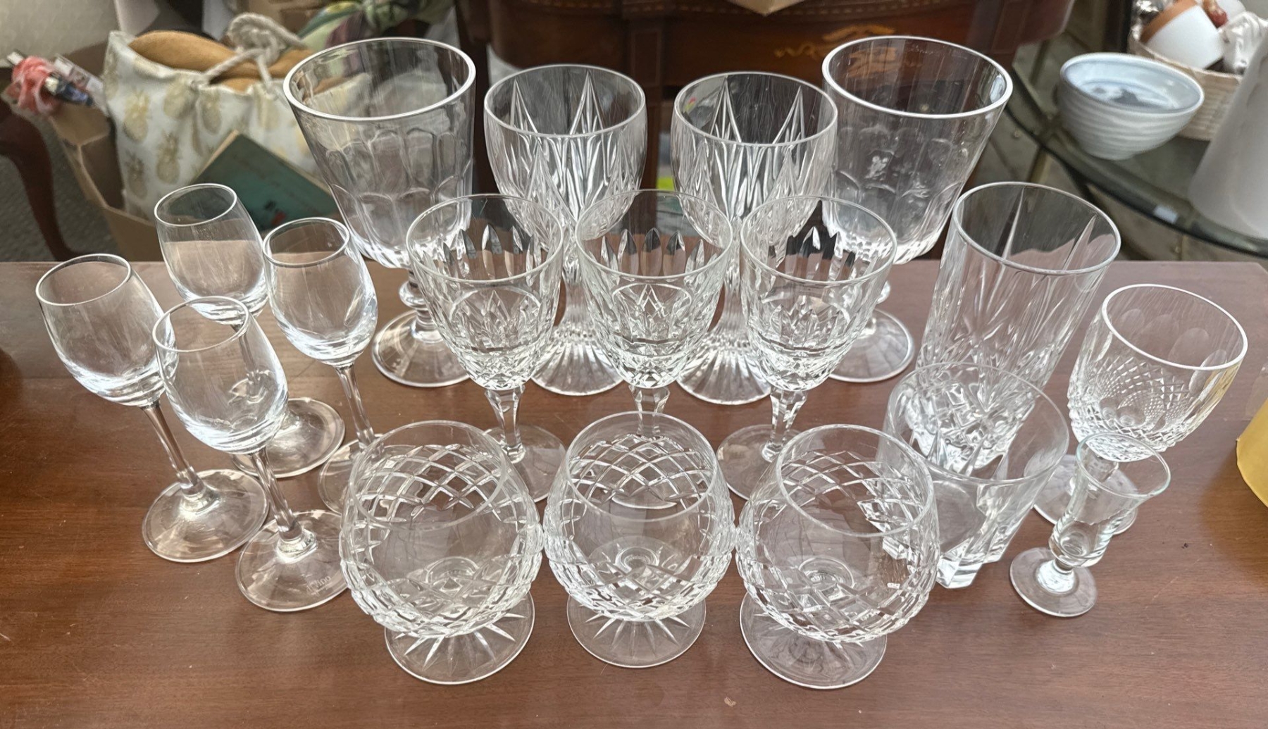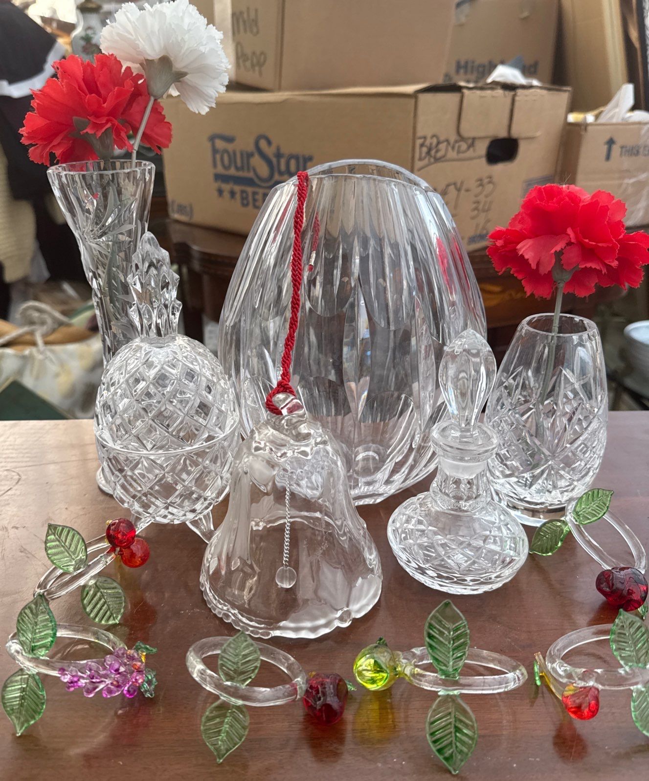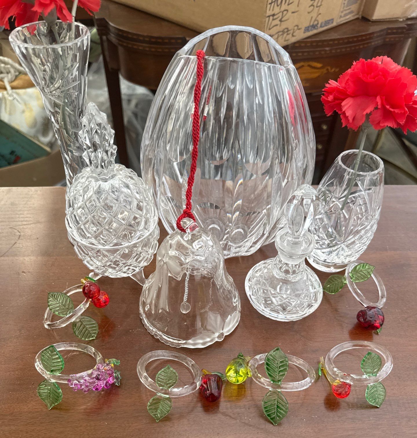 Assortment of Crystal & Clear Glassware w/ Fruity Napkin Holders
