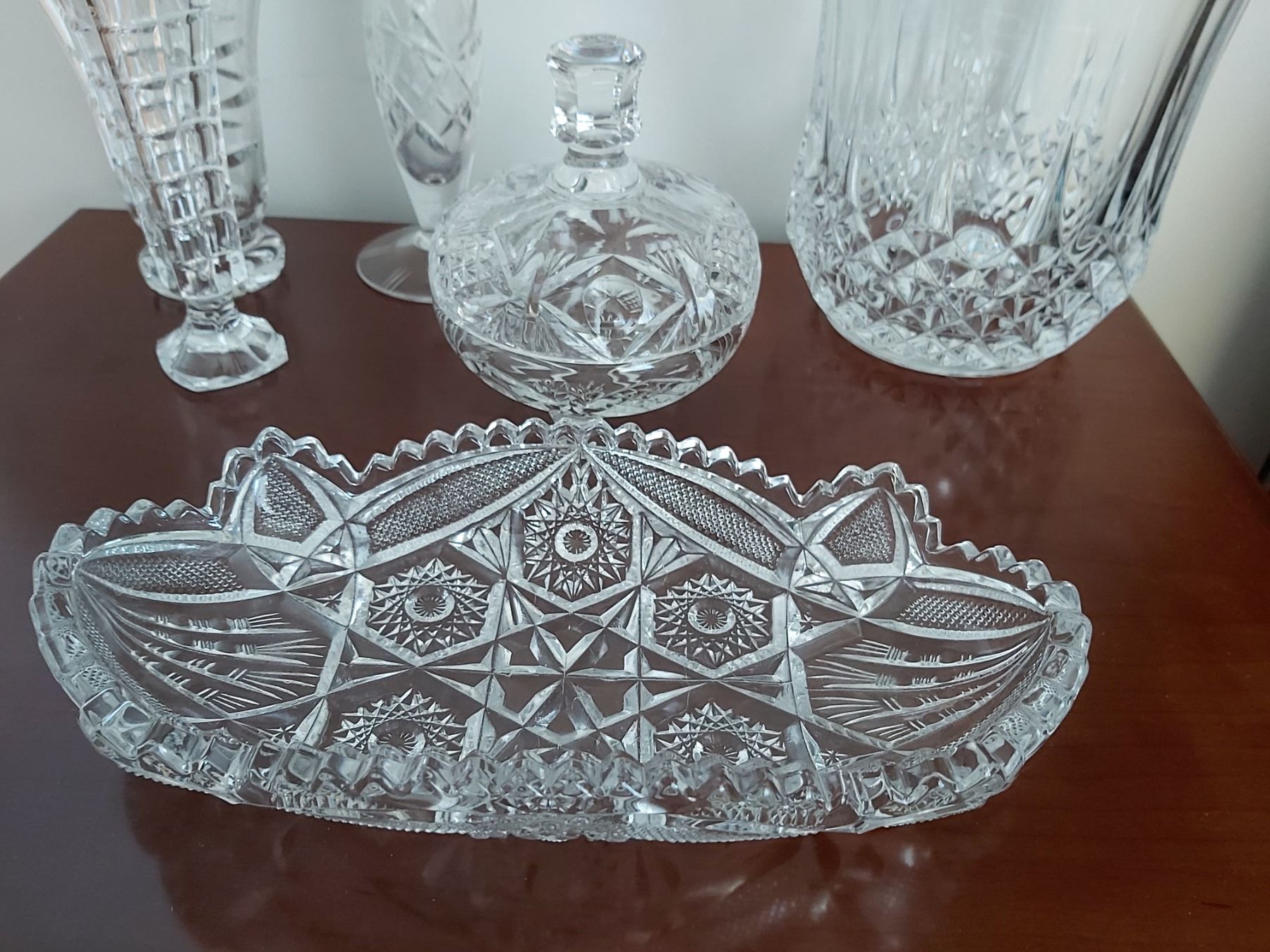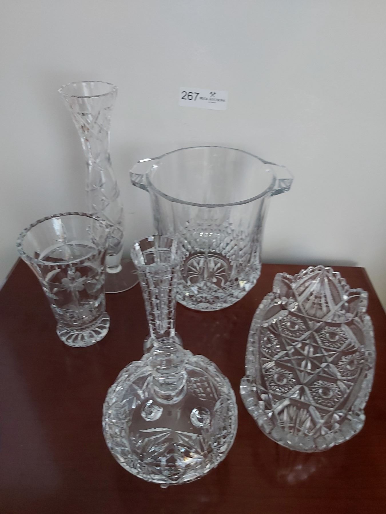 Assortment of Crystal Decor, Vases, Ice Bucket, Candy Dish & Serving Dish