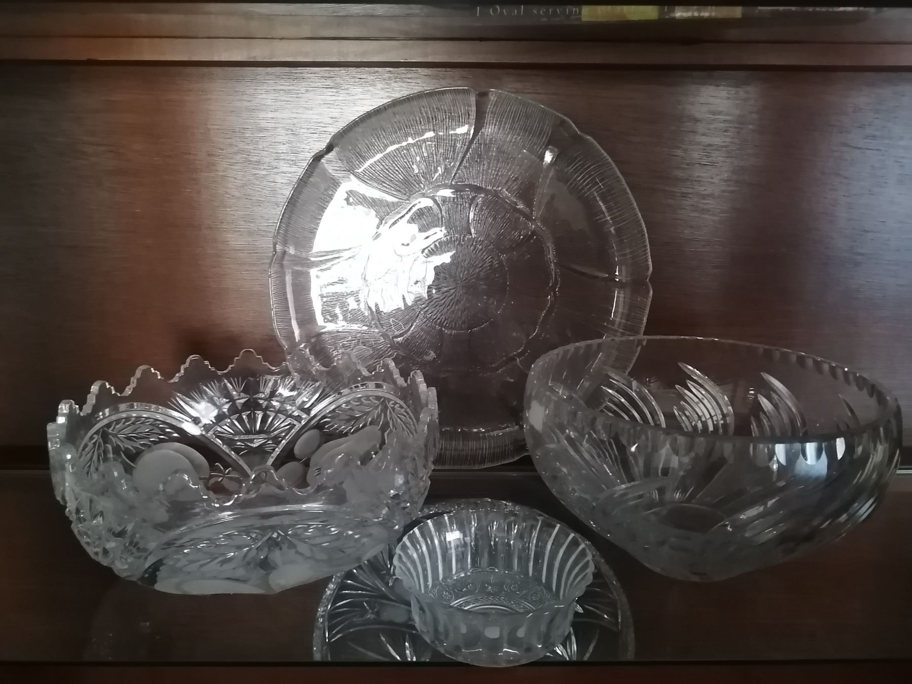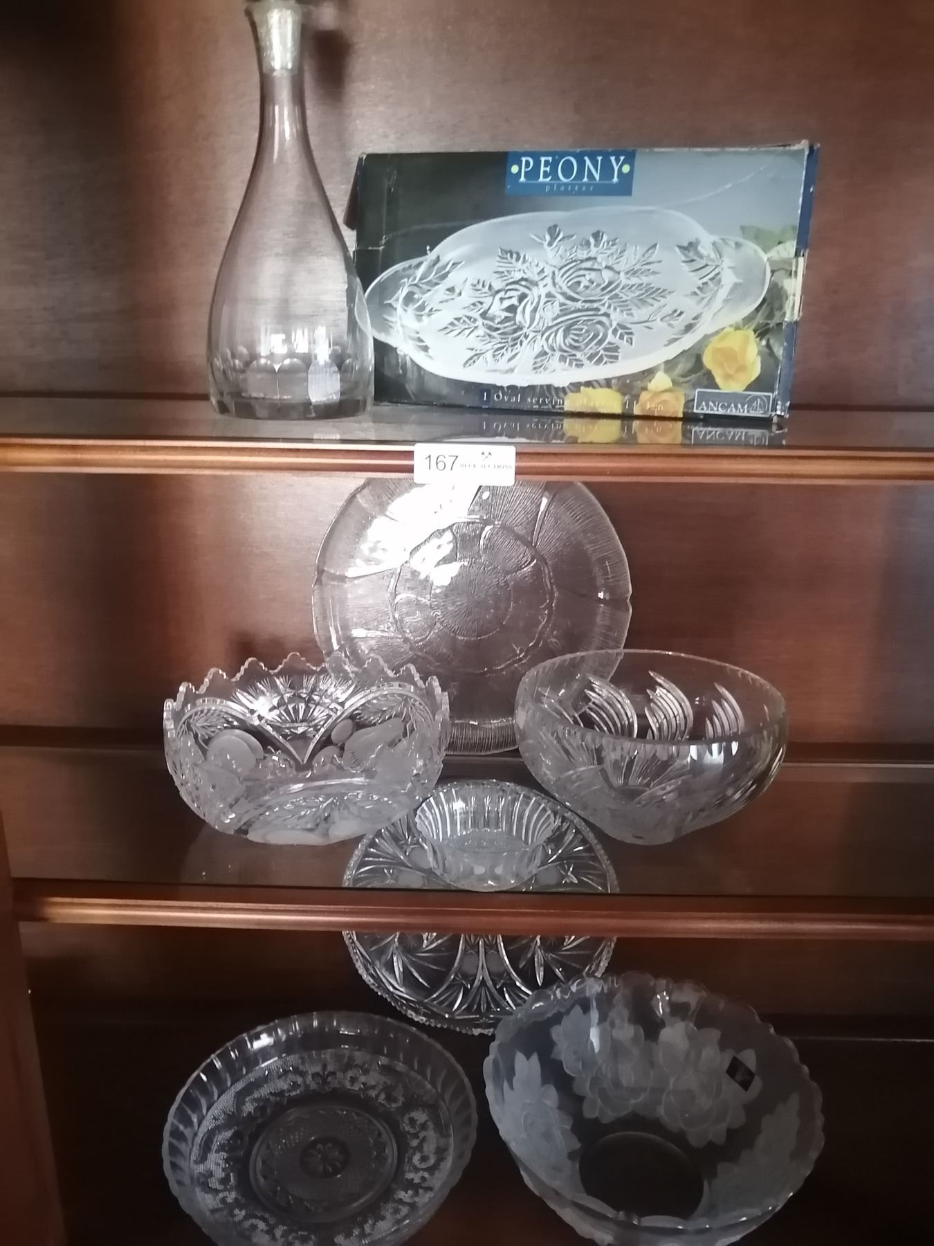 Assortment of Crystal/Glass Platters, Bowls, and Decanter