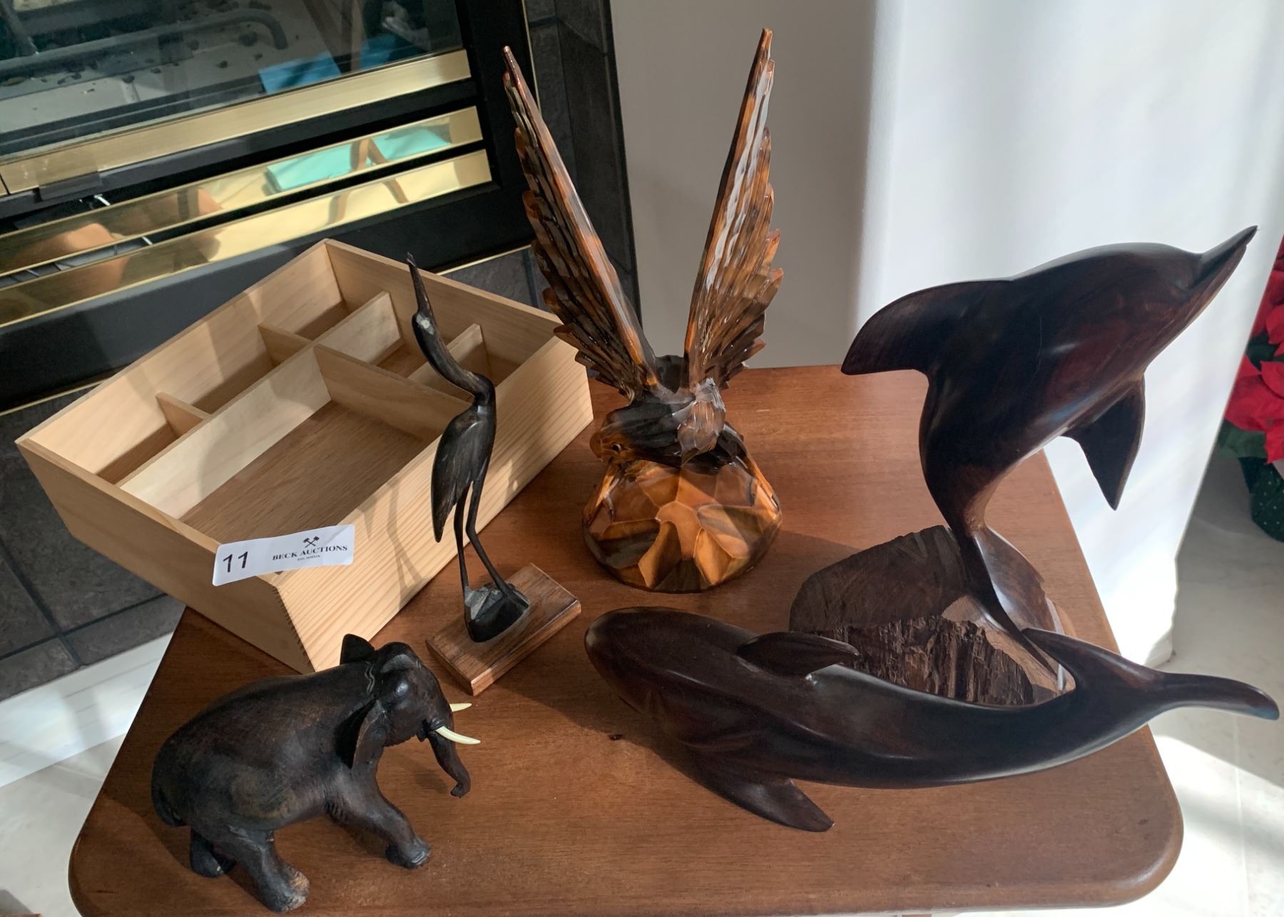 Assortment of Wooden Animal Carvings & Small Wooden Storage Box